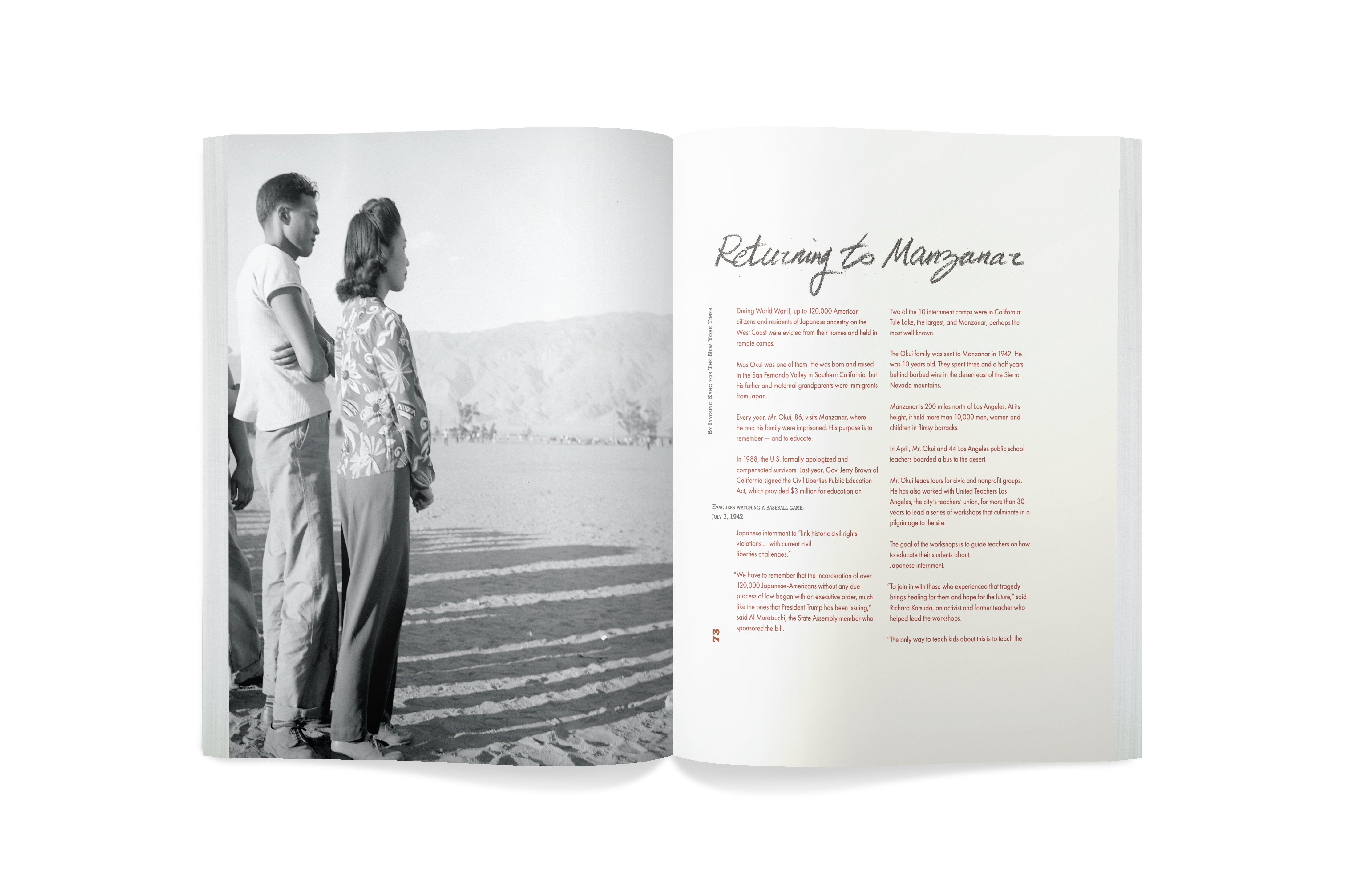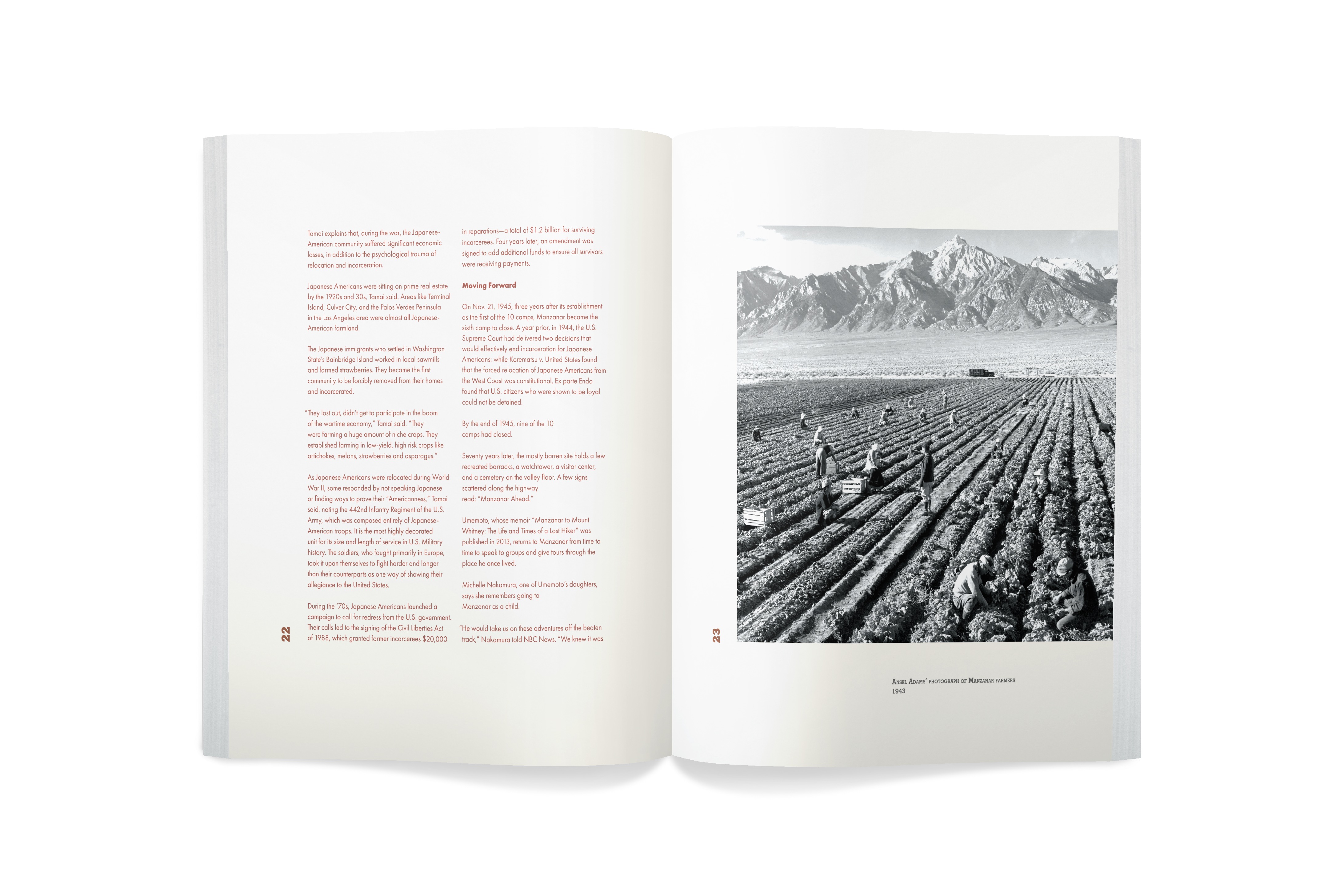 Students were to design a book based on an episode for the TV documentary series Lost LA. The artist's episode was based on the photography of Dorothea Lange, Ansel Adams, and Toyo Miyatake. Displayed are mockup spreads of the final book as well as an Instagram carousel for a book promotion. For more information on the Lost LA project, please see full presentation of work.