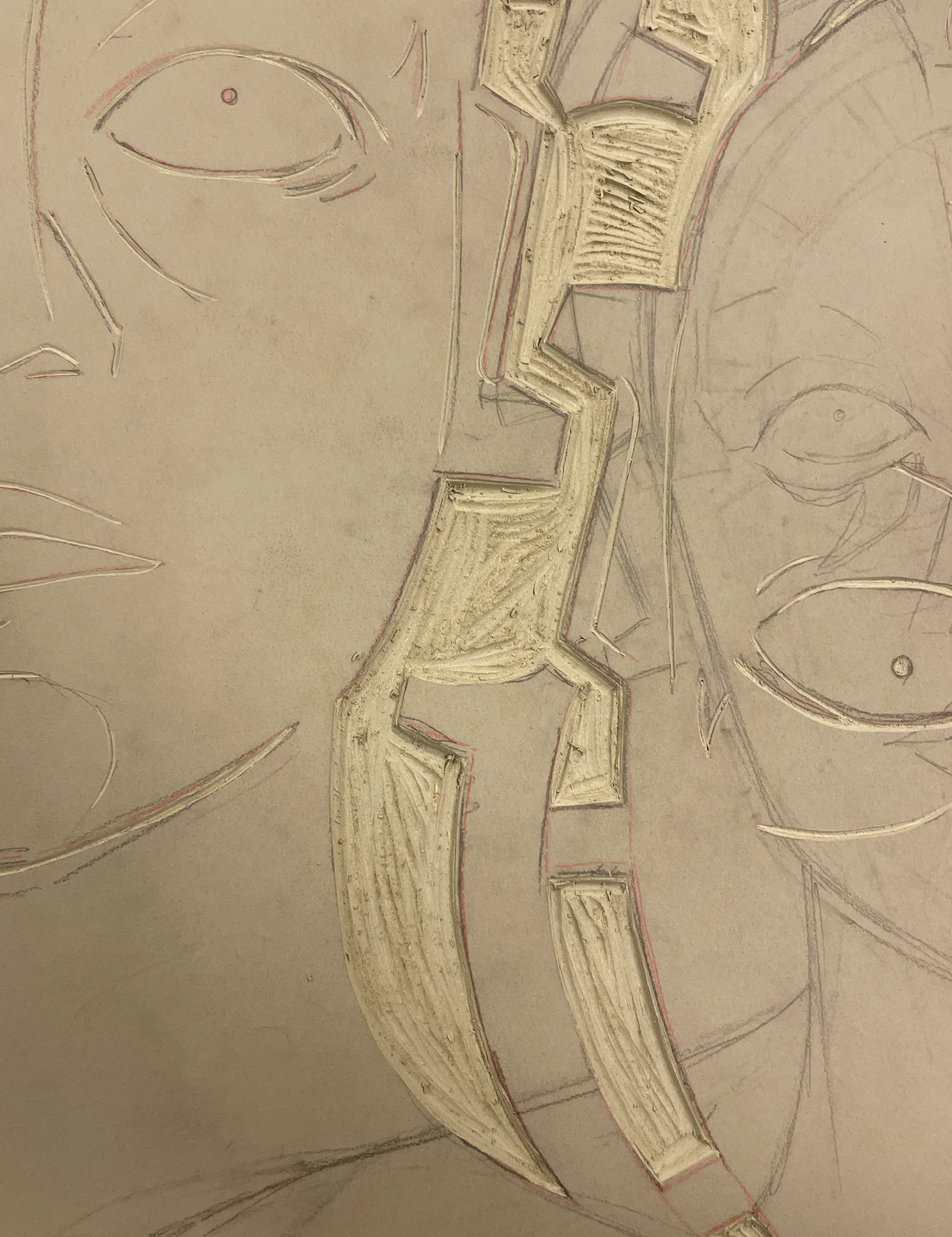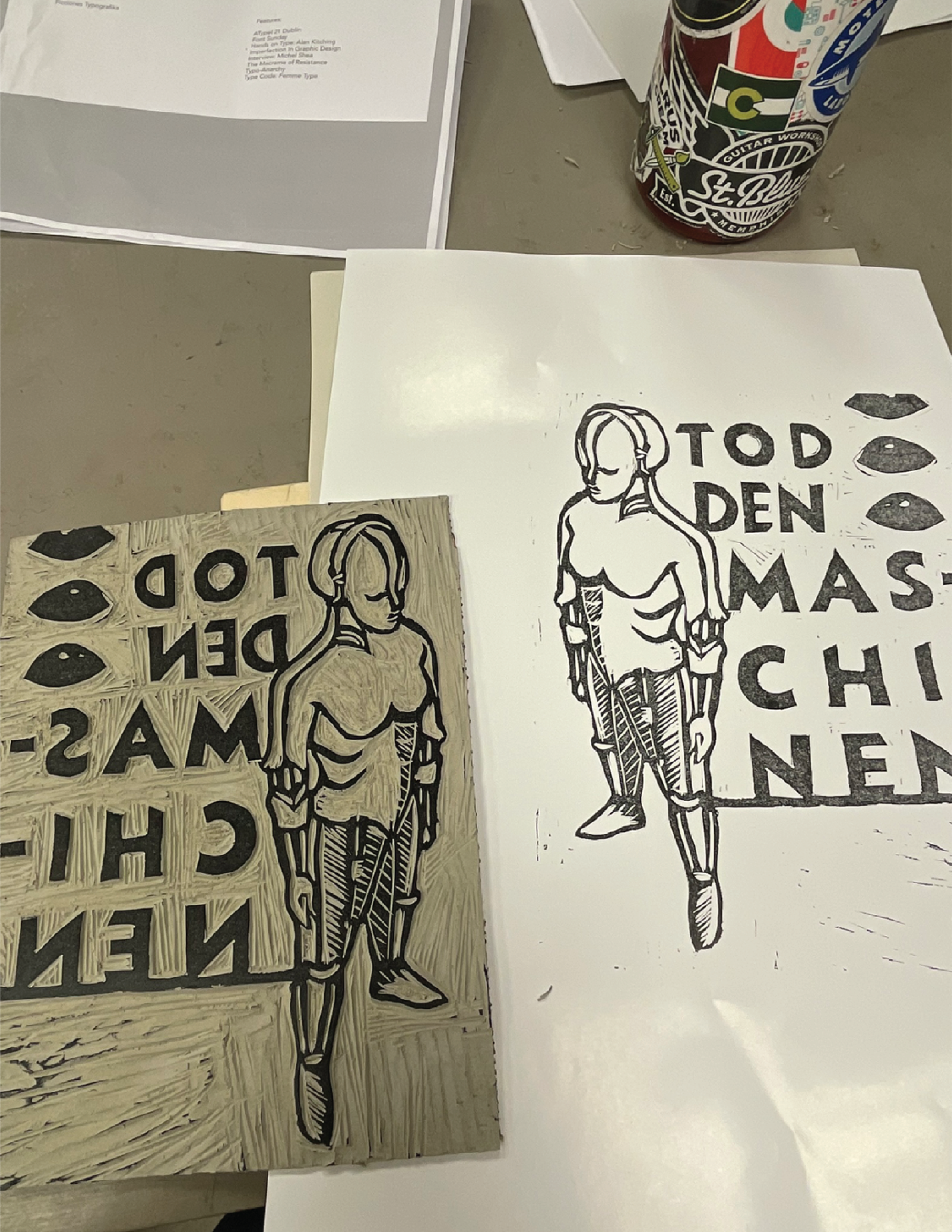 This project was my introduction to type setting, and there were many physical processes that I had to learn. Most importantly, I was reminded to not become too attached to one idea. Initially, I wanted to use a full body image of the robot. I found that this composition and my complex imagery did not lend itself well to this medium. When I shifted my focus, I produced an image that I was much happier with and I am excited to wrap up this project later this week!
