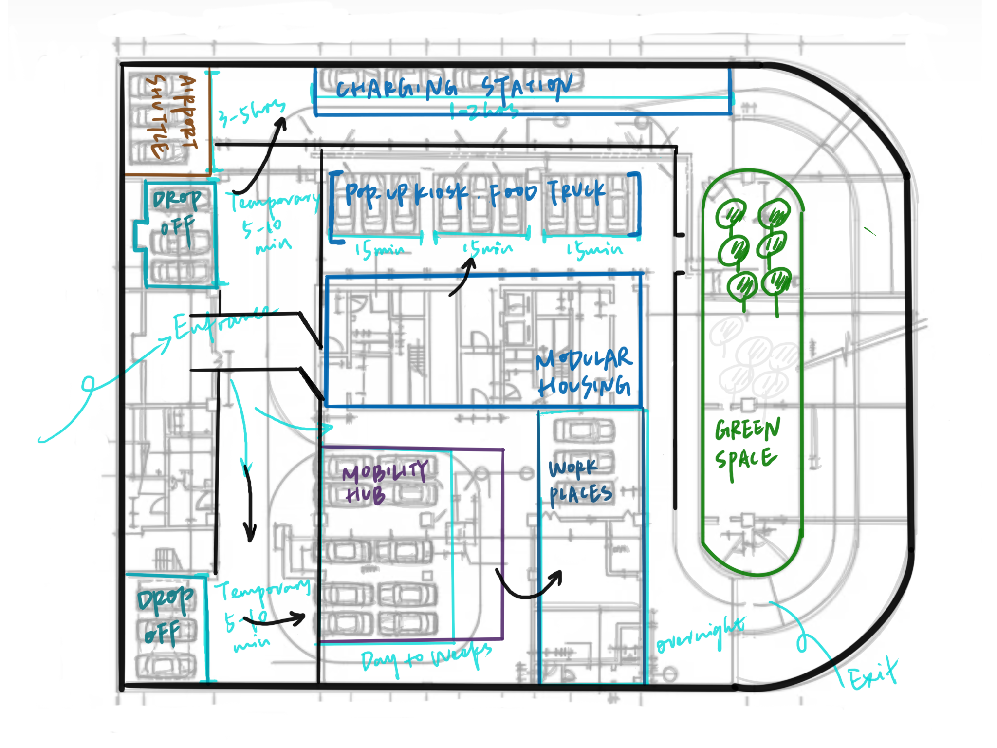 This project began with a question sparked by the rise of autonomous vehicles: what if all the vehicles become autonomous in the future, how is the city gonna look like? I imagined a future where the concept of parking becomes obsolete, where cities breathe and move — no longer bound by static infrastructures but animated by a fluid, ever-shifting web of self-organizing mobility. The project explores the future of mobility, parking space, and the new urbanism.