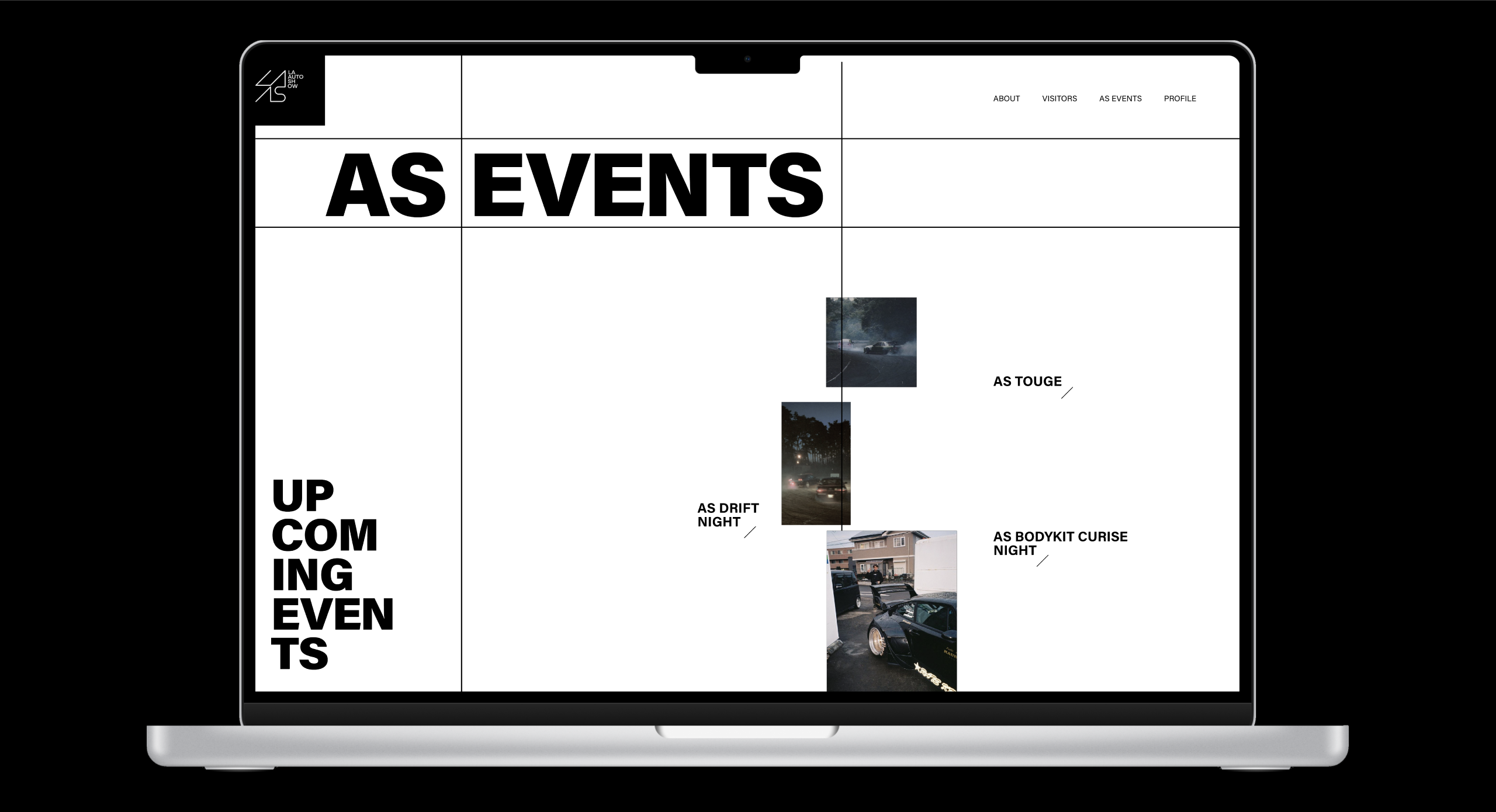 Captures the look of urban street and race track, using lines and dynamic type setting to create a system that included motorsport-focused sub-brand (AS Event) to deepen connections with the local car culture.