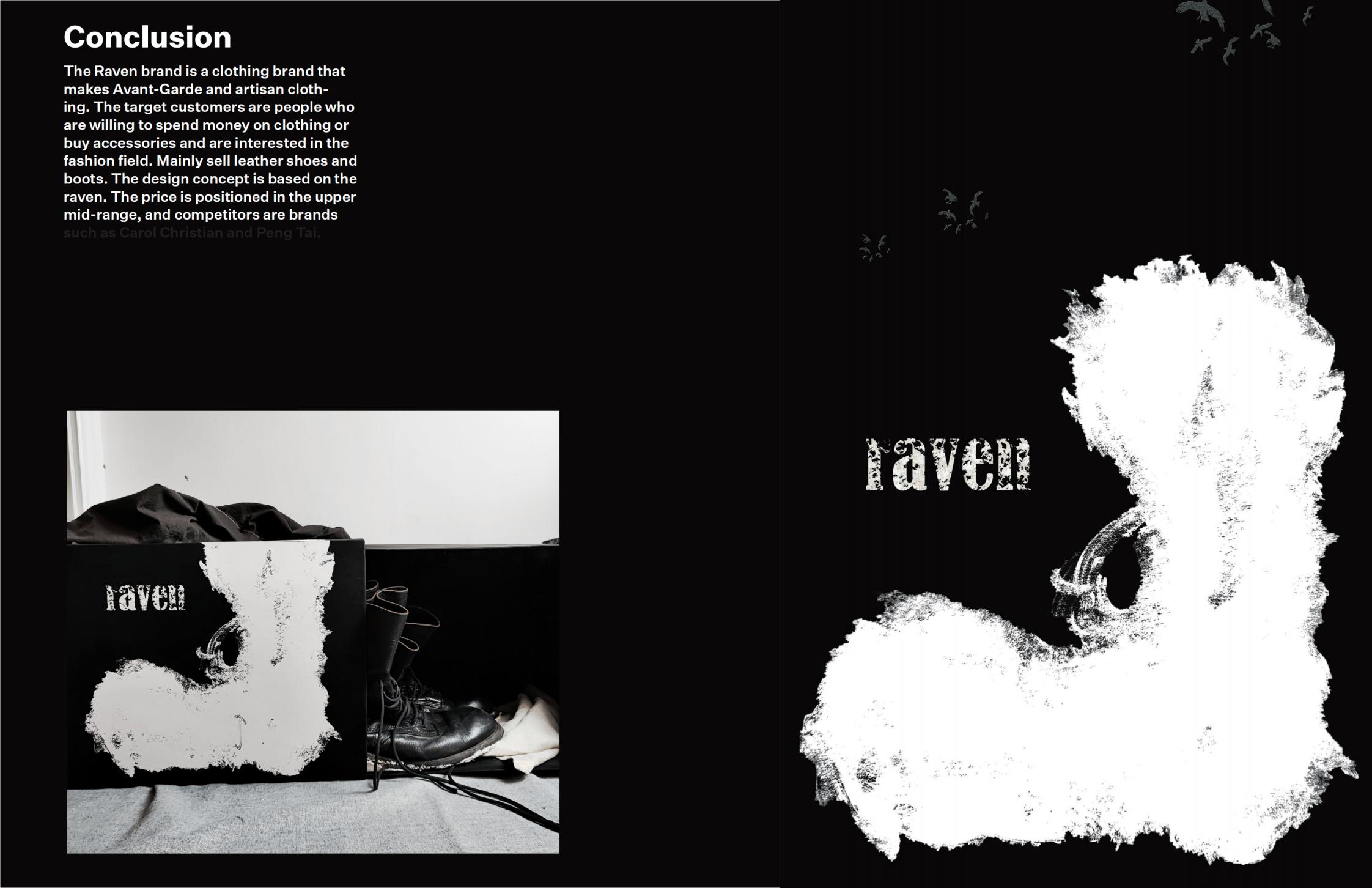 This is my first attempt to make a packaging design. I created a fictional avant-garde clothing brand and designed the shoe box packaging for this brand. The shoe box serves leather boots. My overall design concept is Raven, and the name of the brand is also called Raven. Designed with reference to the characteristics and colors of the raven, and used different materials for matching, such as linen and leather. At the same time, I also made shoe polish packaging and brush packaging.