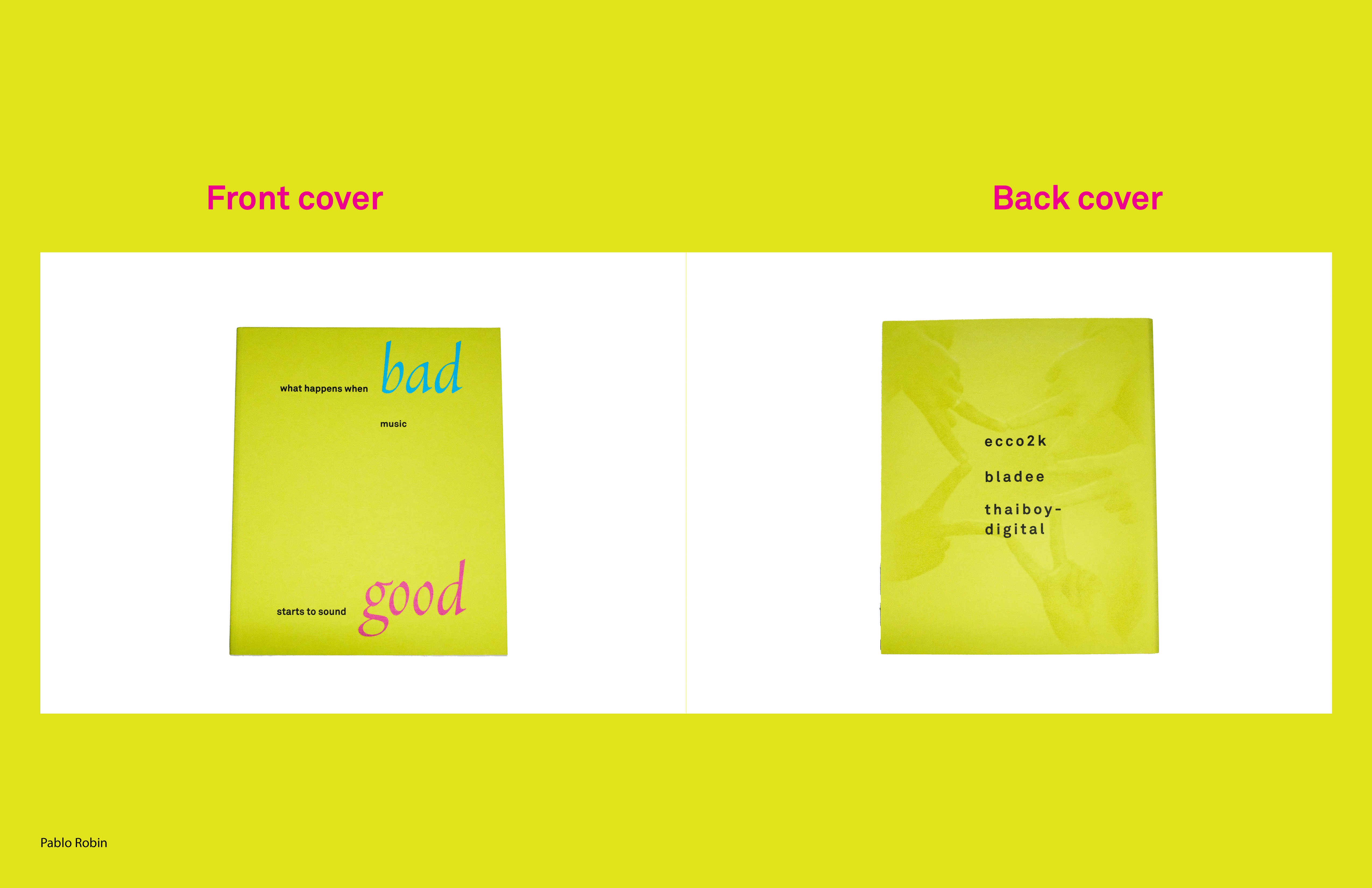 In this project I learned how to make a brand from book design. I used a CMYK color palette because it represents the base of expression and I see it used a lot in their album artwork. I used a storybook like display font called Vatican that reflexed the groups playfulness. It was a challenge in itself to create something that is 160 pages long and cohesive.