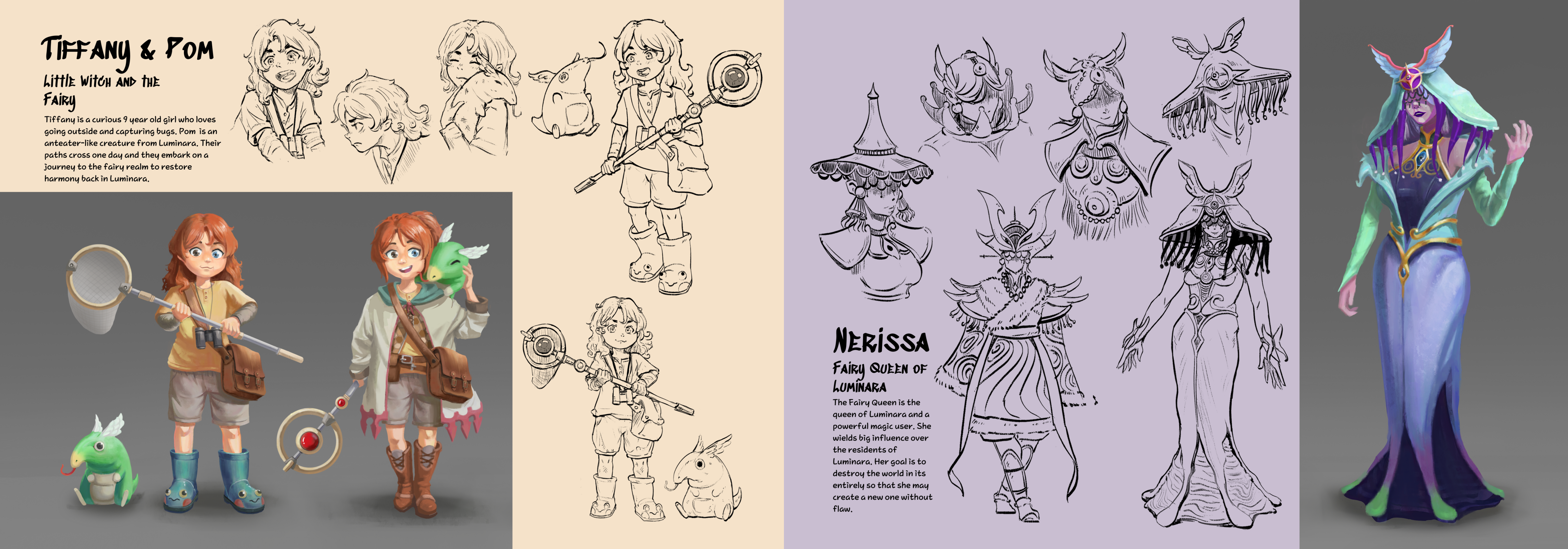 Little Witch follows a little girl named Tiffany and an anteater-like creature named Pom and their journey through the fairy realm, Luminara.
