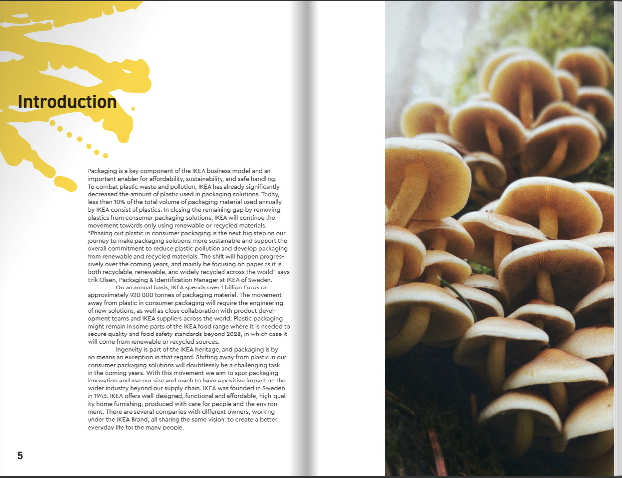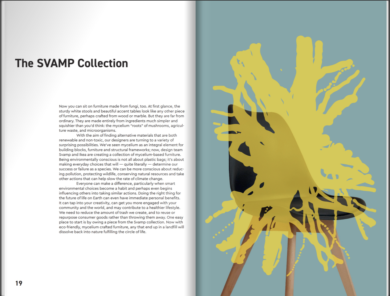 This was a branding project to create a collaboration between two companies. The chosen brands were Ikea and through the instruction of my teacher, I needed to make my own company from scratch. I created a brand called Svamp which is a mycelium materials consultancy company that would collaborate with Ikea to create sustainable packaging and furniture. (Linked below is the booklet for the project can be viewed online)