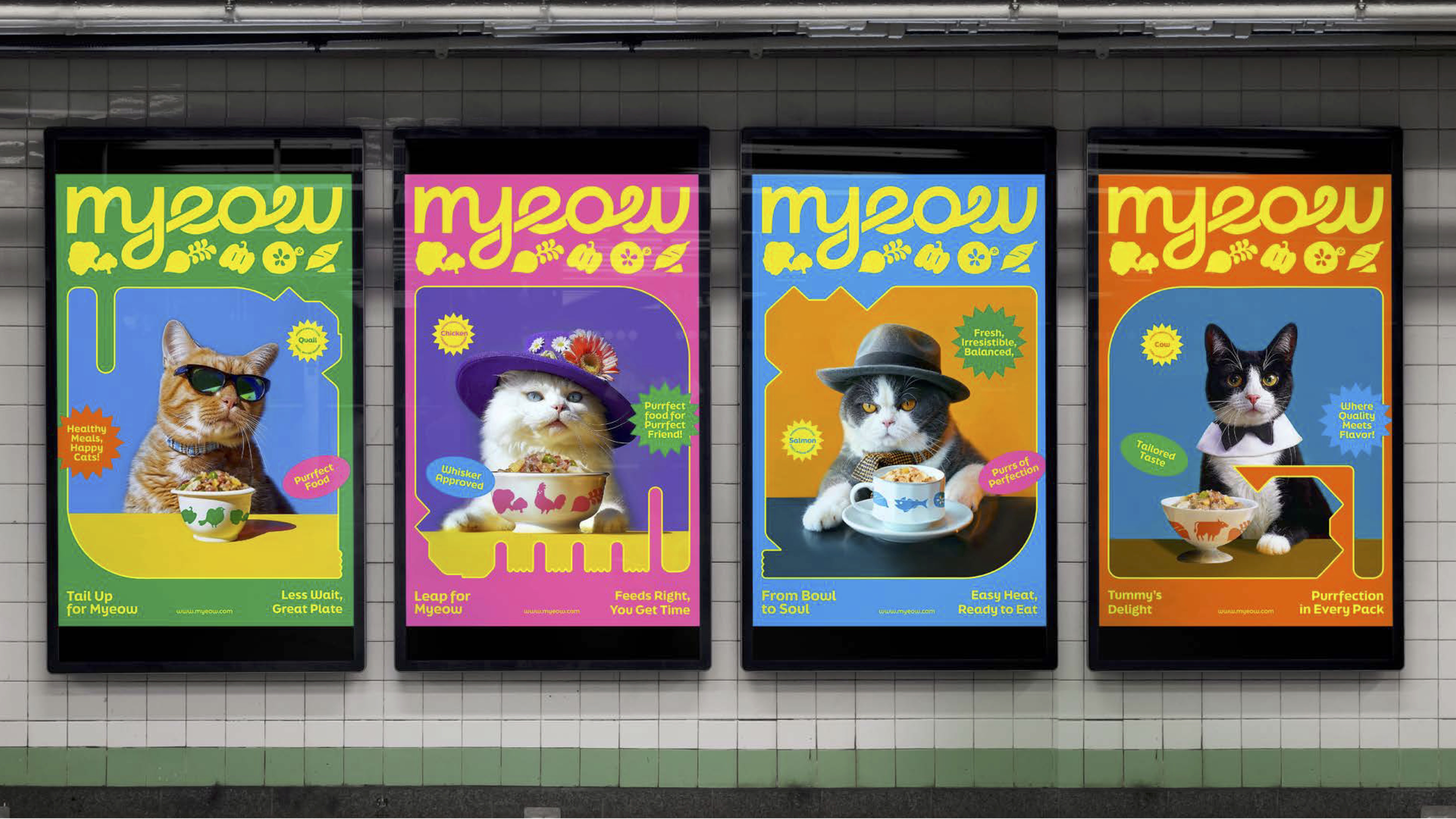 I designed four different flavors to cater to the diverse tastes of picky cats. I crafted, stylized, and photographed each meal to ensure a visually appealing presentation.