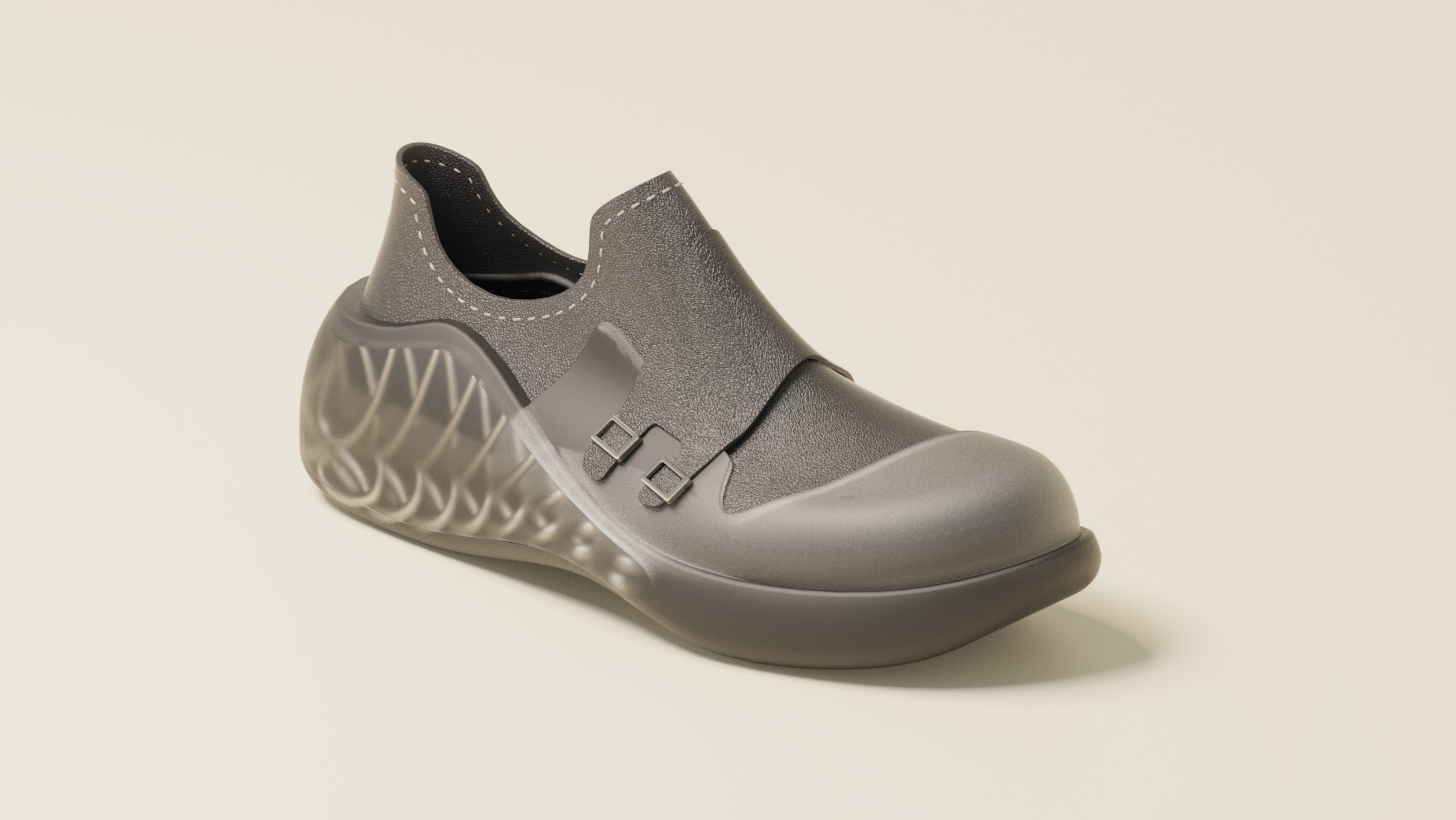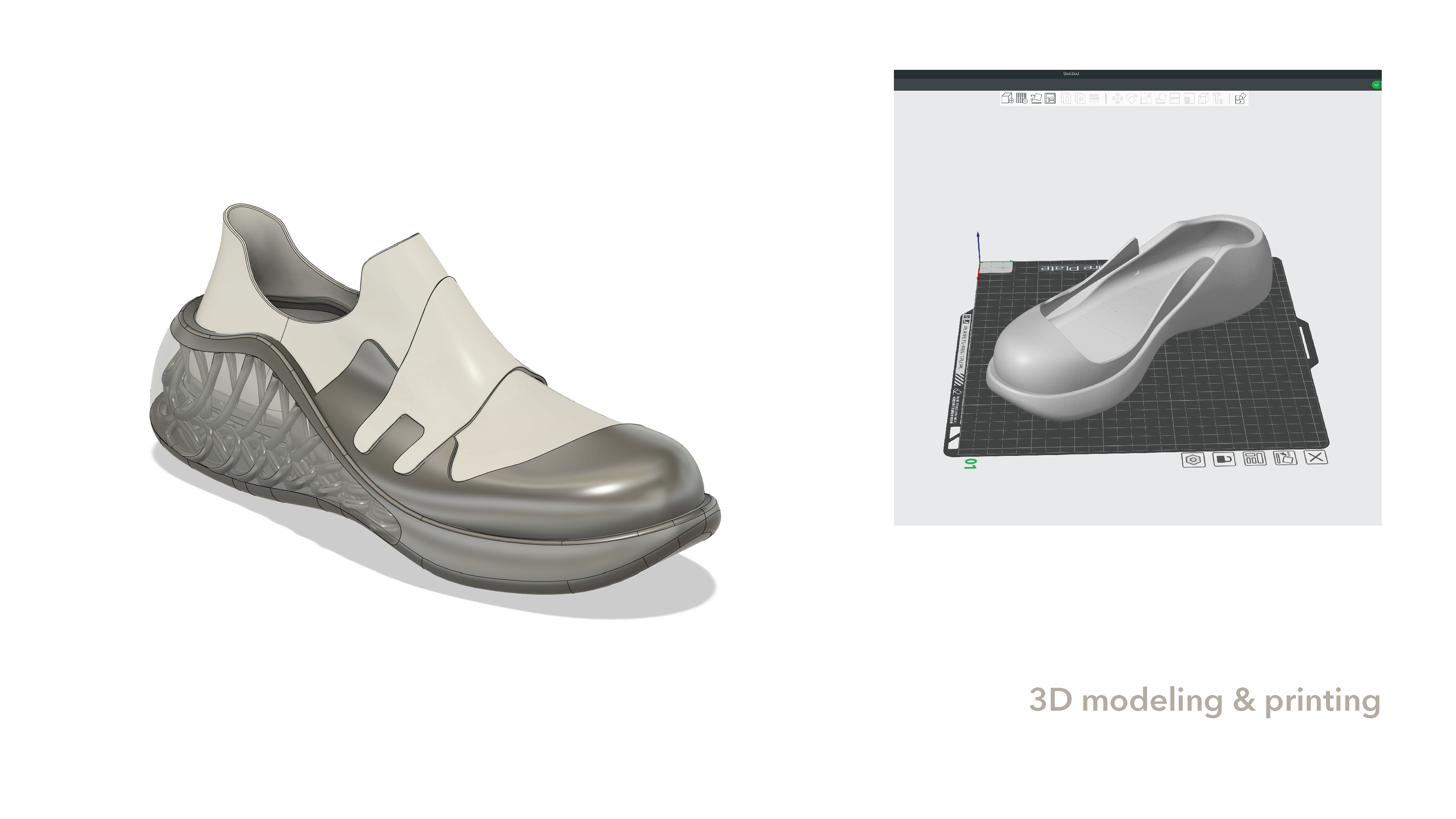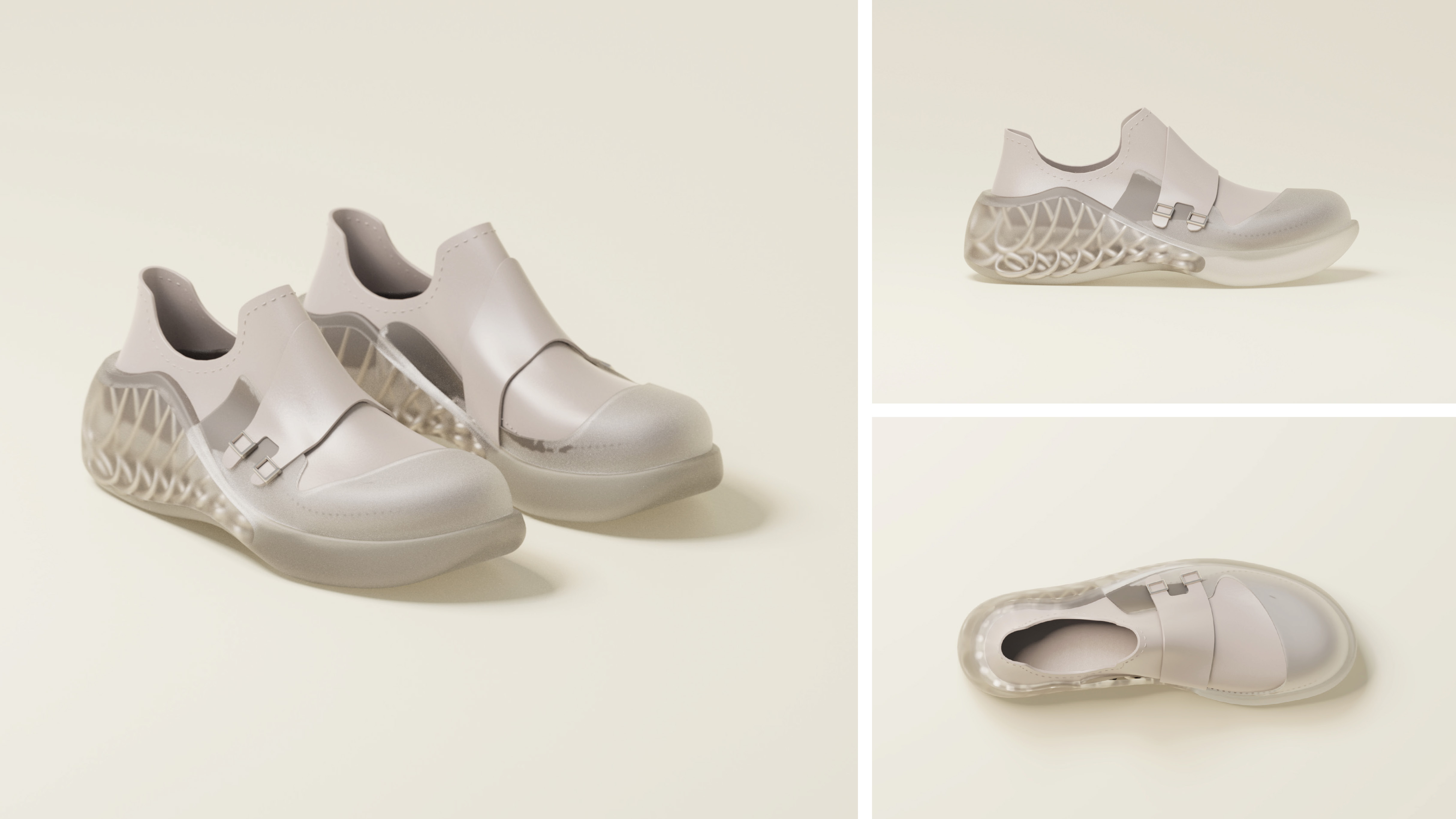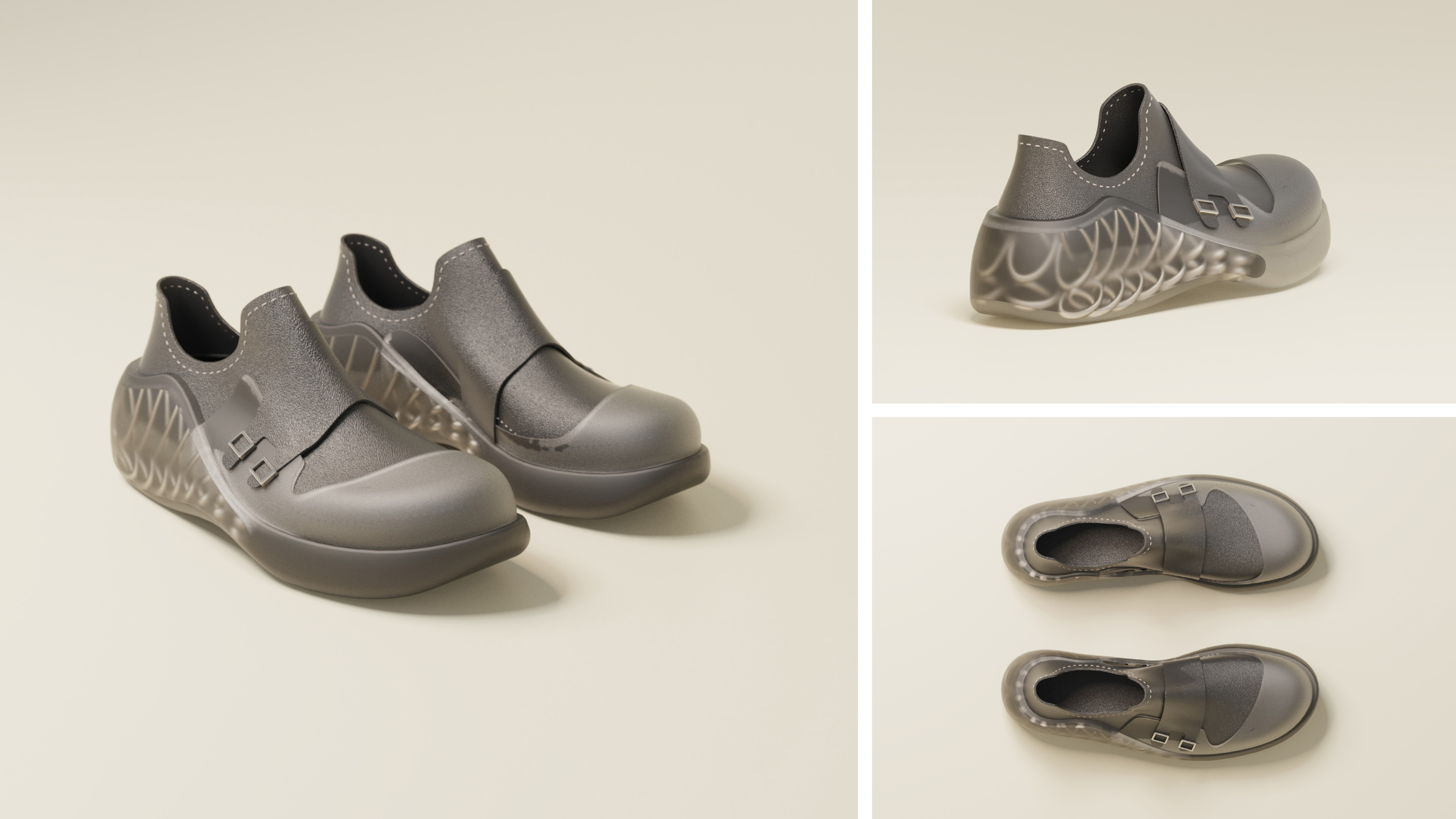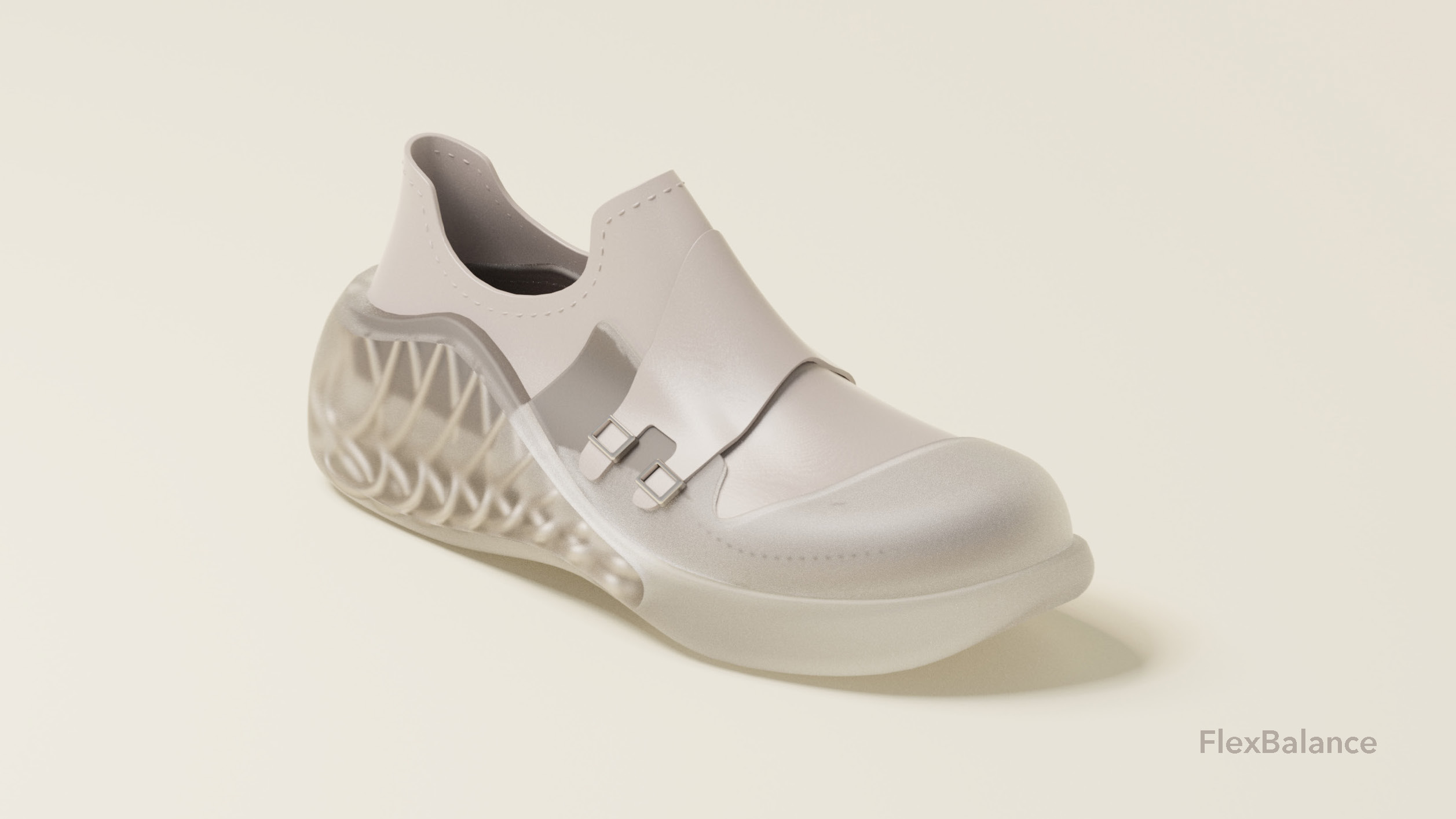 FlexBalance is a customized footwear service for elderly people. Firstly, seniors can scan their foot with their phone and send the data to us. Then we can start creating the two parts of the shoes for them. Vamp uses Desmopan® TPU synthetic leather. And the sole uses parametric design and TPU 3D print to create customized support for users.