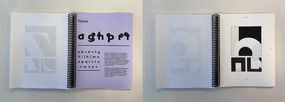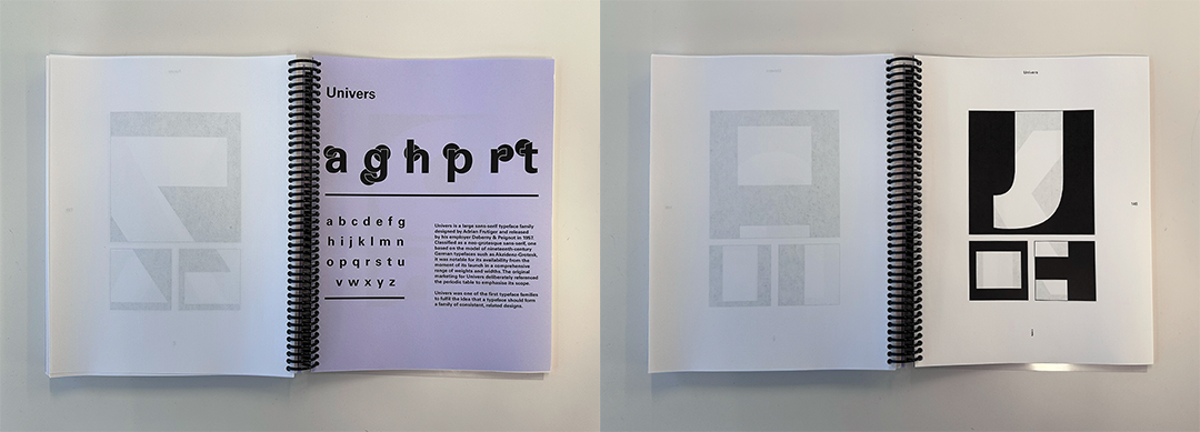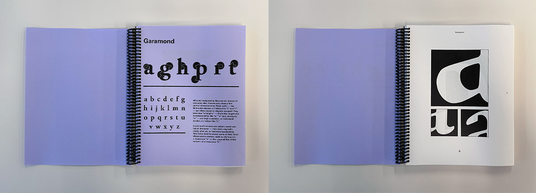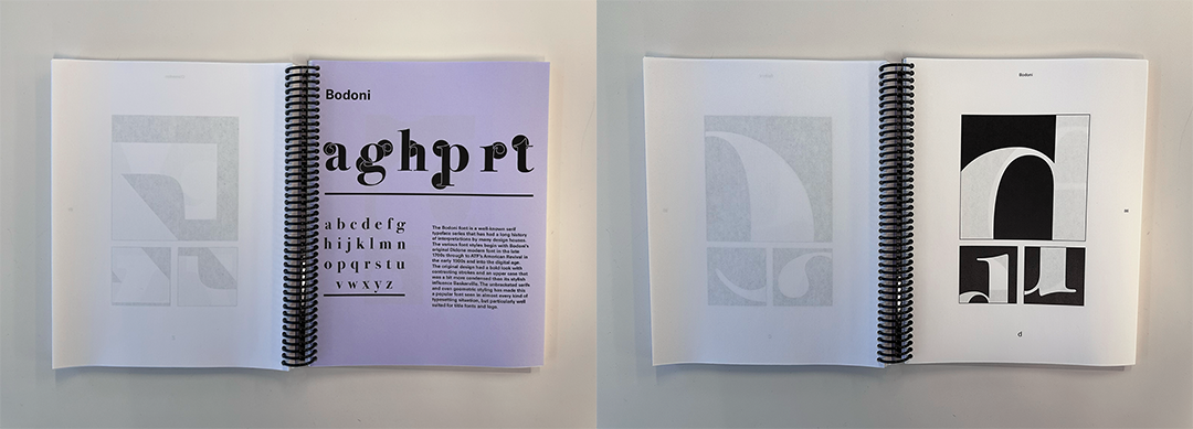 You are asked to look at each letter in the alphabet and isolate different traits of each. Look for similarities as well as differences. In addition, we need to compare how formal traits are distinguished differently from style to style of typefaces. Once your exploration has concluded, you will need to edit and compile your illustrations into a cohesive book.