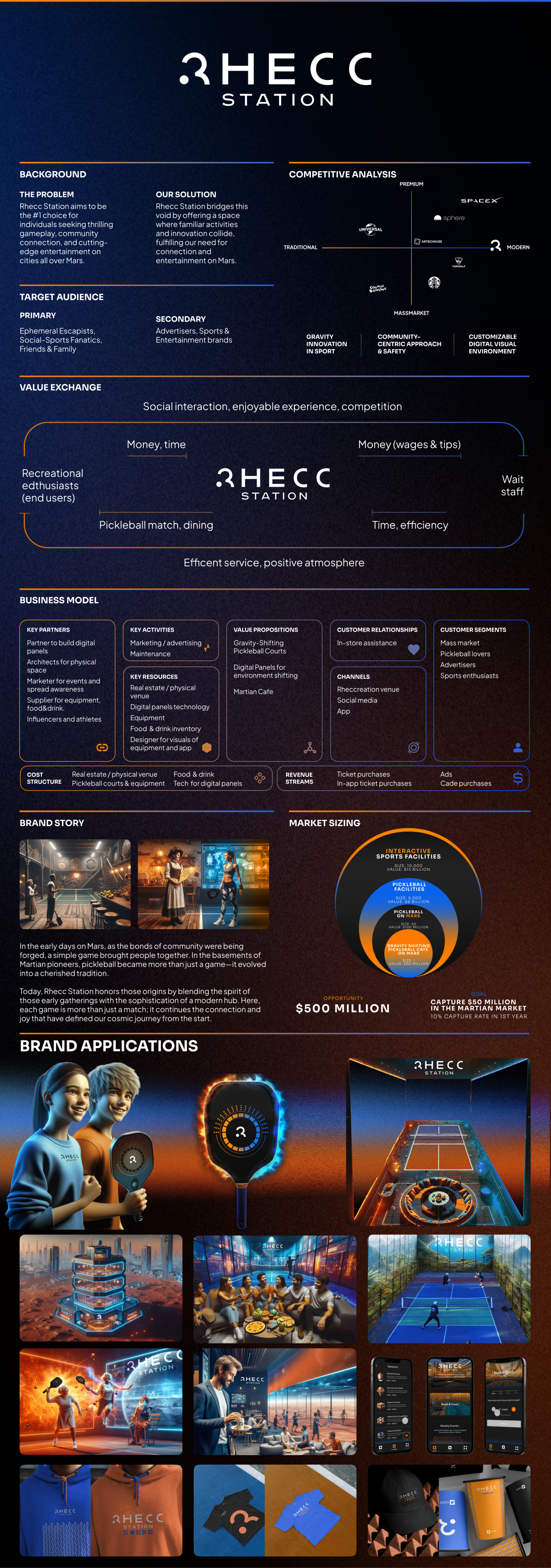 Showcasing "Rhecc Station" a collaborative endeavor with two classmates in our MDes program at ArtCenter. We explore our visionary recreational concept, its importance, core brand values, competitor analysis, operational details, and the diverse Martian community it caters to. The video was written, and fully created by me. This project encapsulates our journey from individual ideas to a synergistic creation, reimagining Martian leisure with cutting-edge technology and sociability.