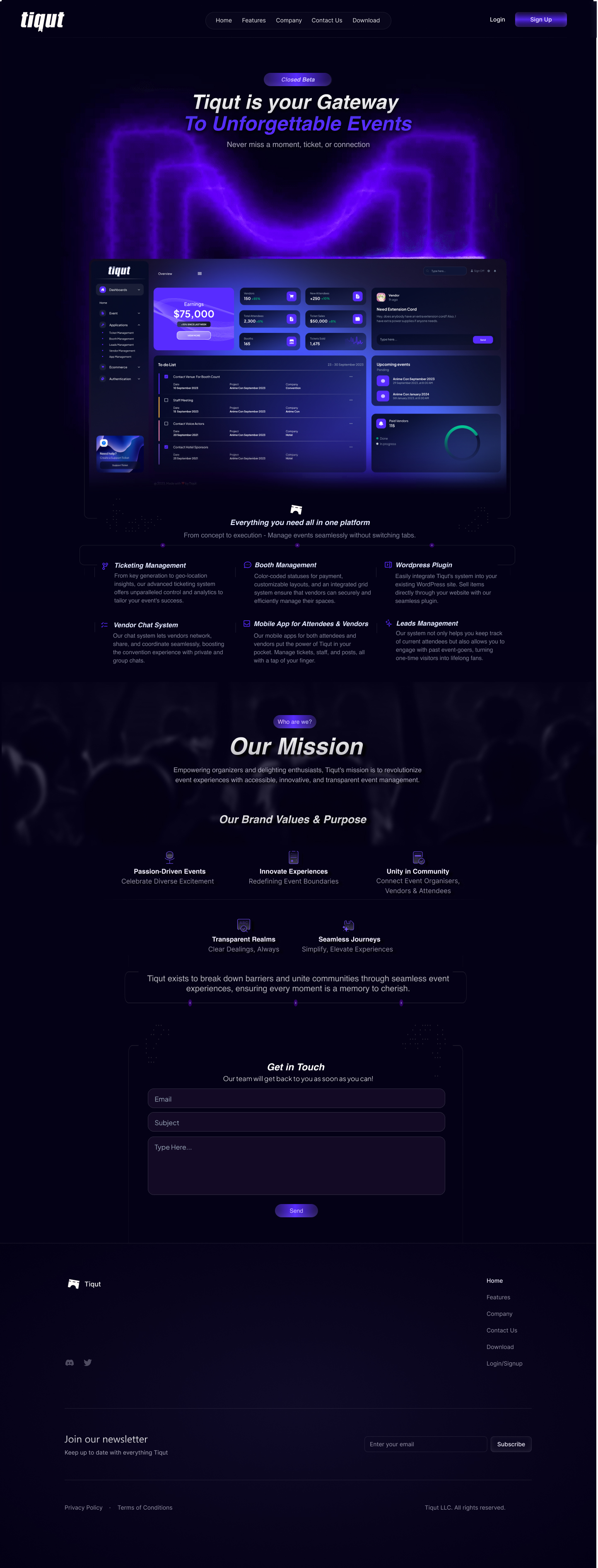 Tiqut is your gateway to seamless event management, specializing in conventions. With innovative features like intuitive ticketing, vendor management, and attendee interaction, Tiqut streamlines the entire event process. The platform fosters community engagement, ensuring unforgettable experiences for organizers and attendees alike. Take a look at our UI and website design.