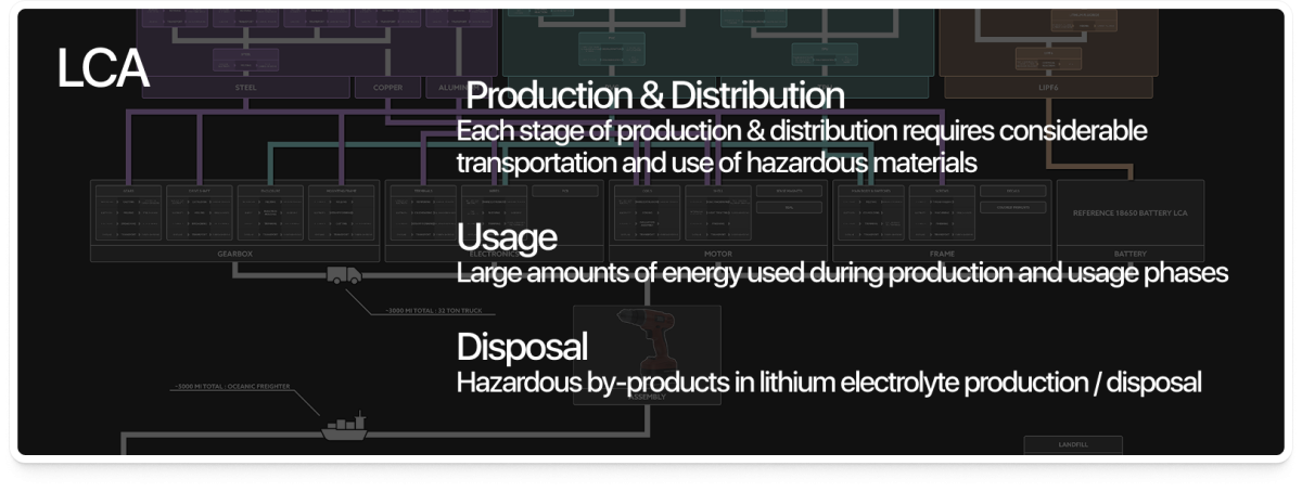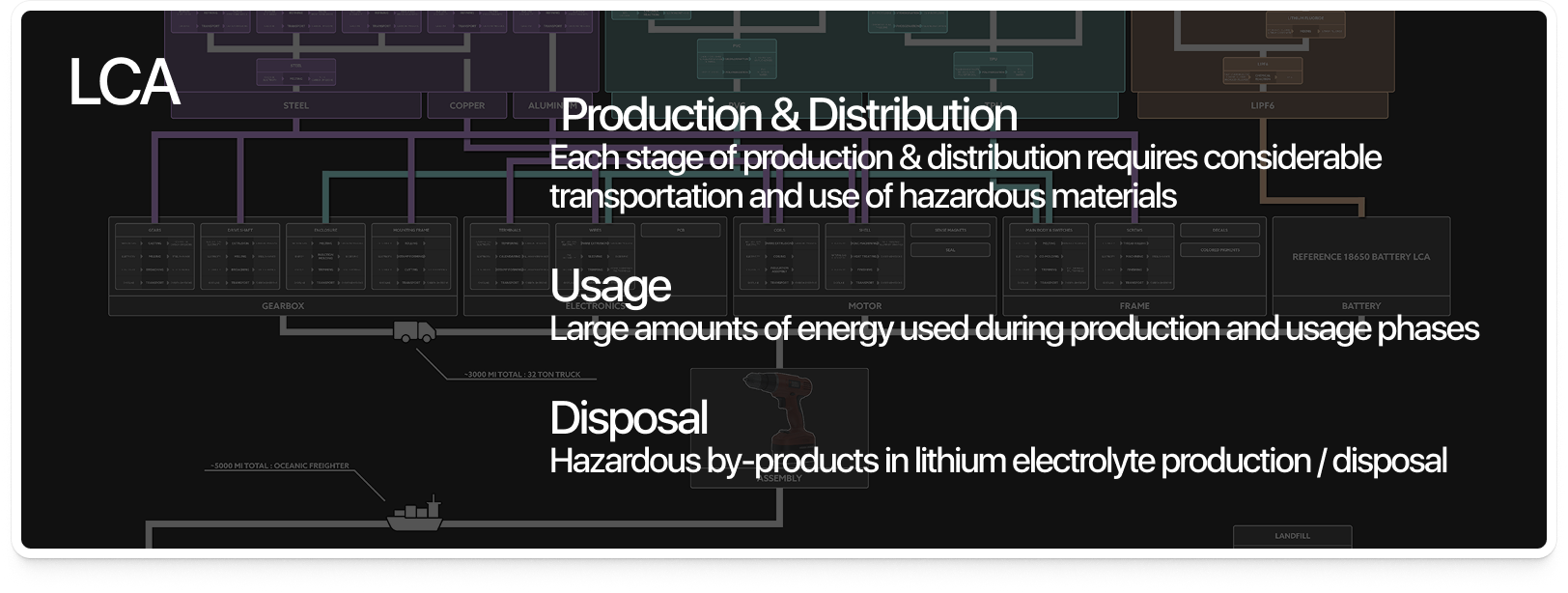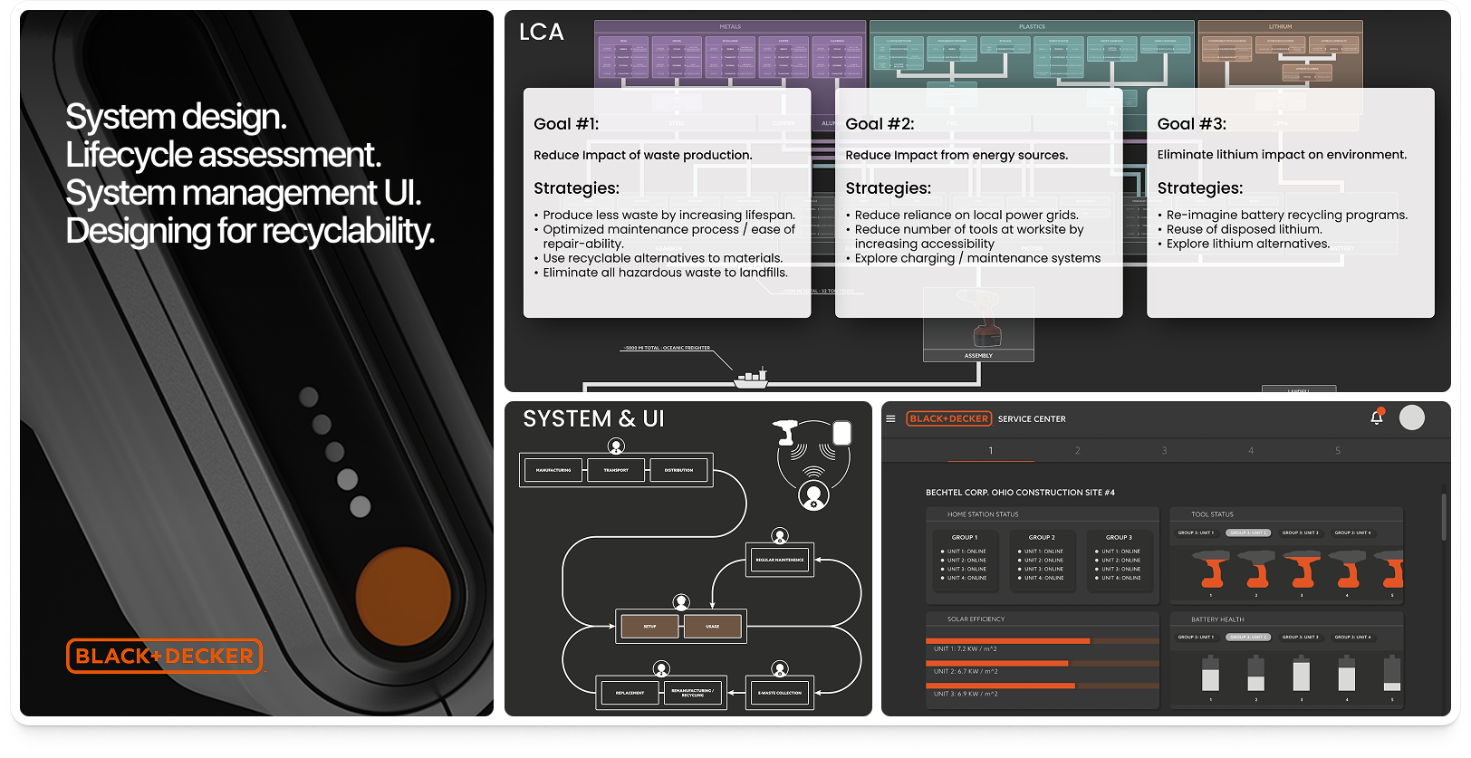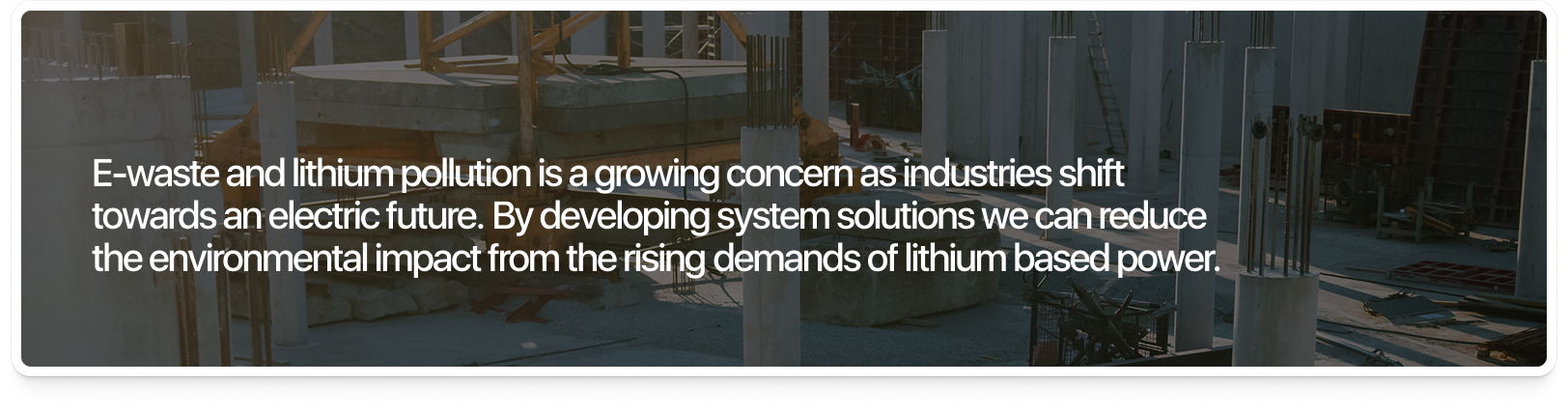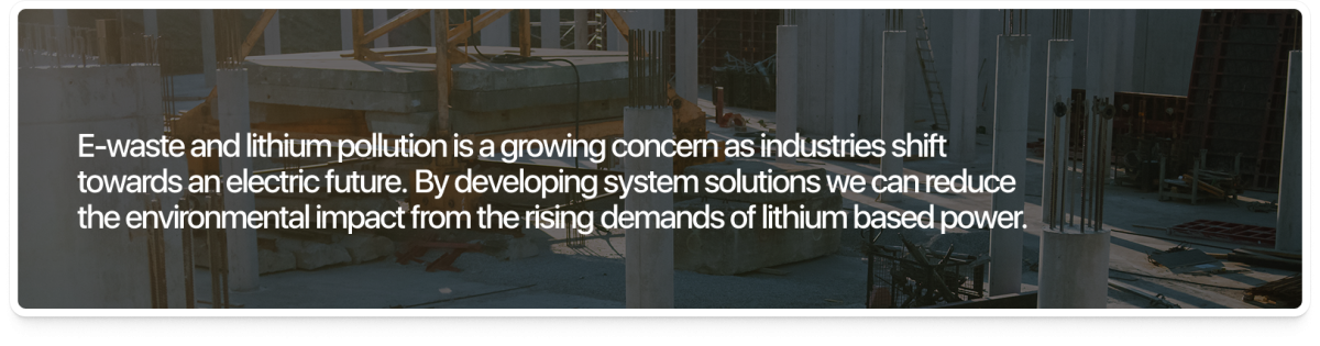 Sustainability based product and system design centered around the production and lifecycle of lithium based power tools used in commercial construction applications.