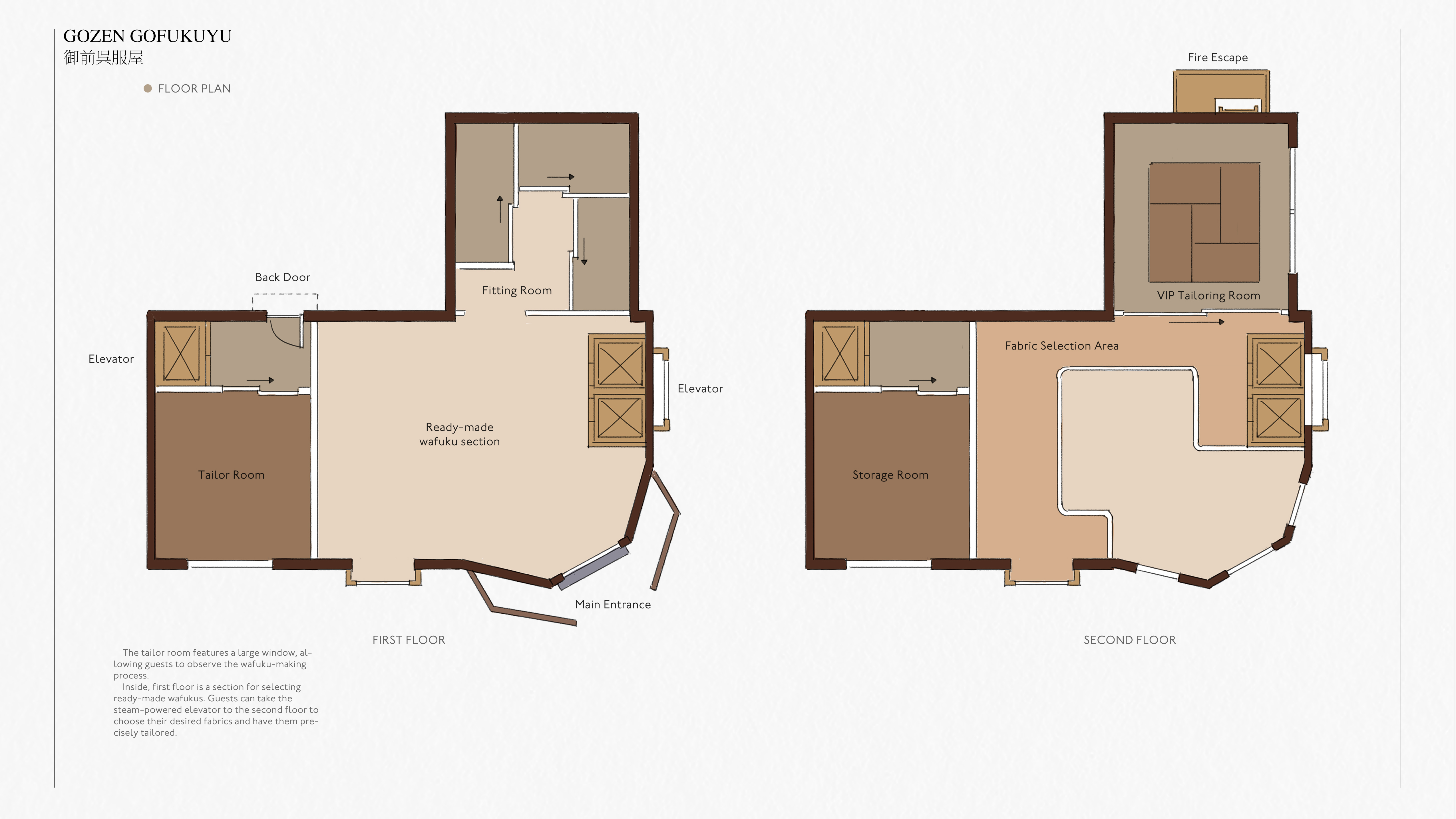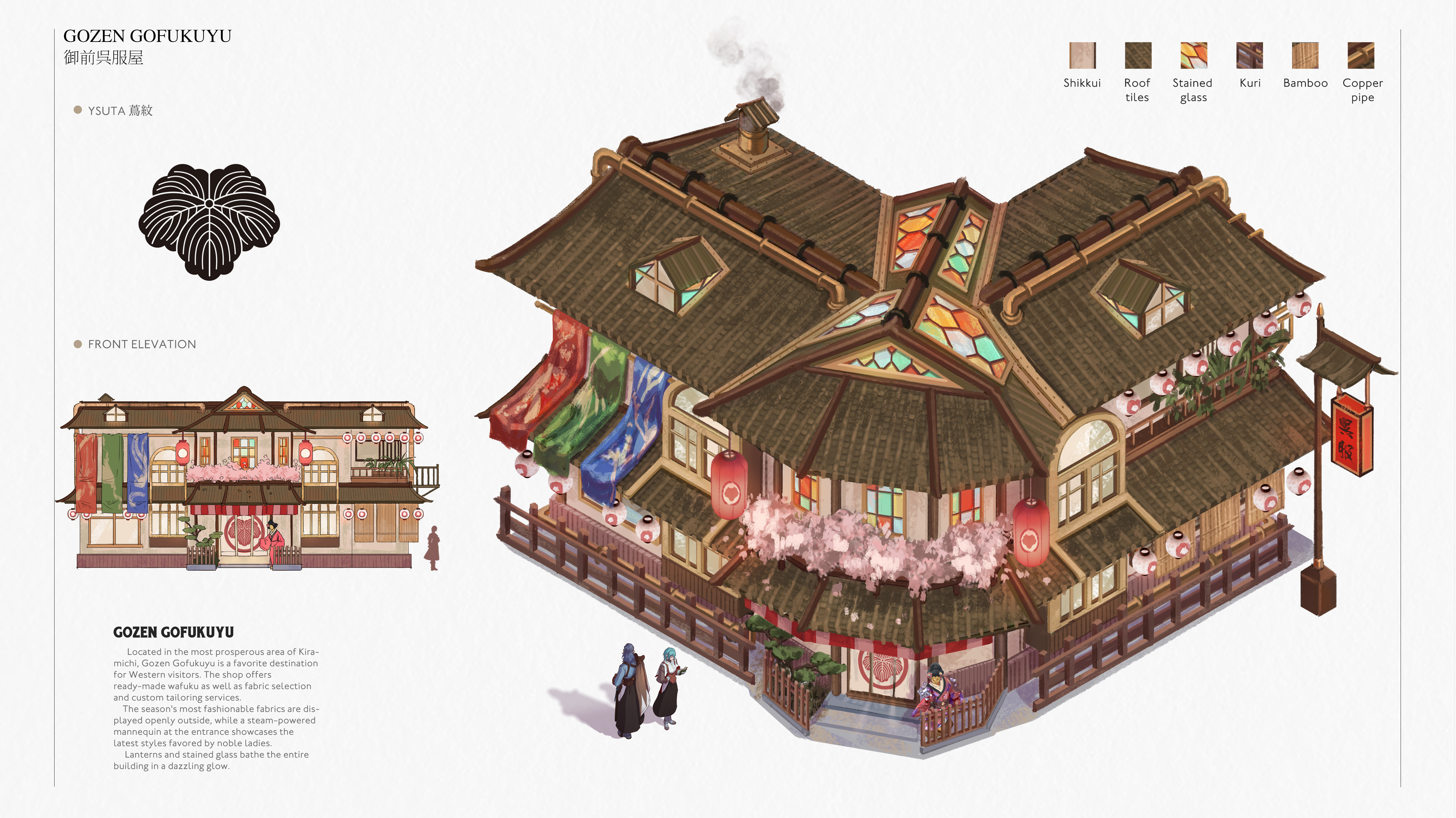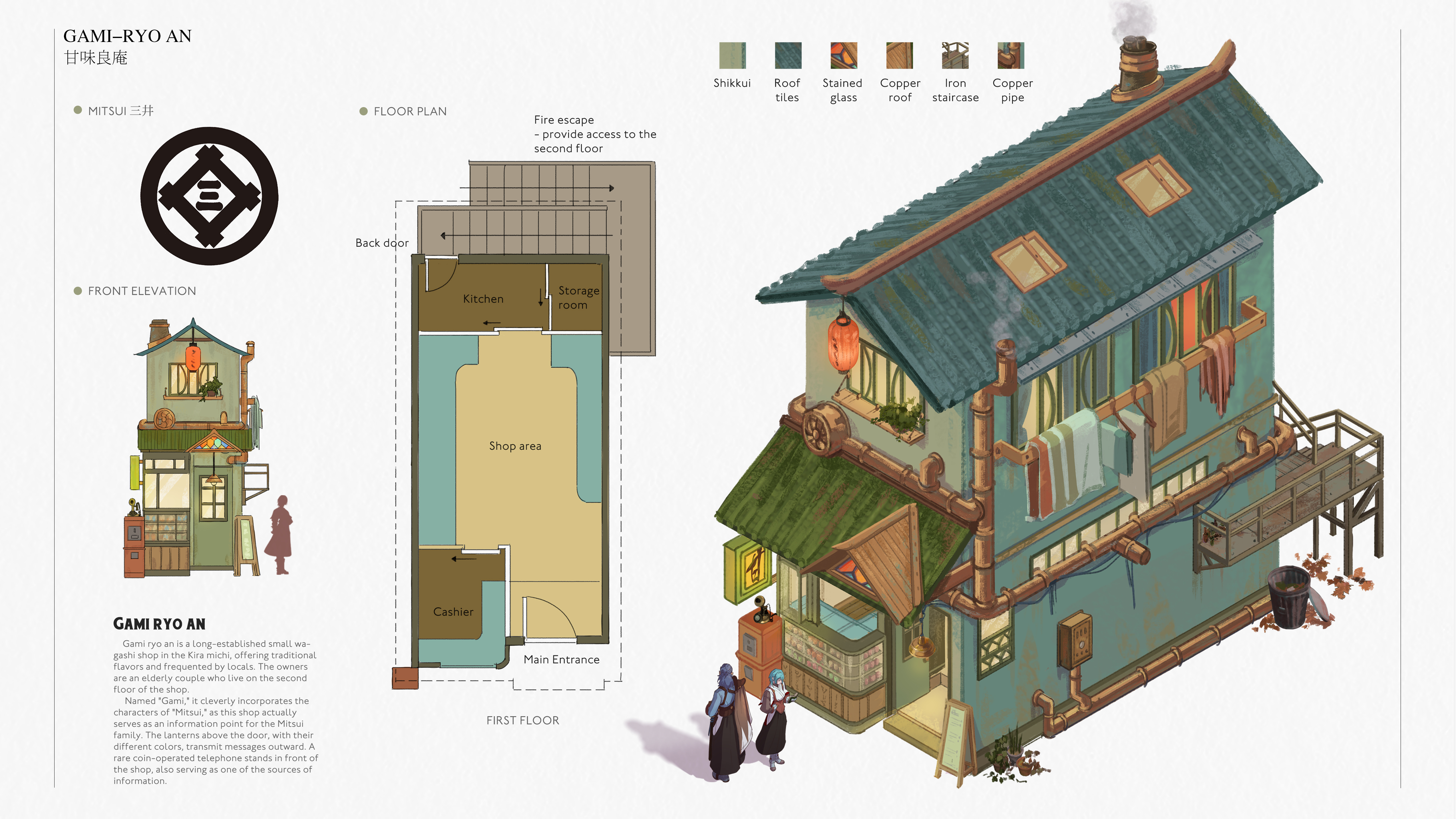 GOZEN GOFUKUYU - Located in the most prosperous area of Kiramichi, GOZEN GOFUKUYU offers ready-made wafuku as well as fabric selection and custom tailoring services. GAMI-RYO AN - Gami ryo an is a long-established small wagashi shop in the Kira michi, offering traditional flavors and frequented by locals. Named "Gami," it cleverly incorporates the characters of "Mitsui," as this shop actually serves as an information point for the Mitsui family.