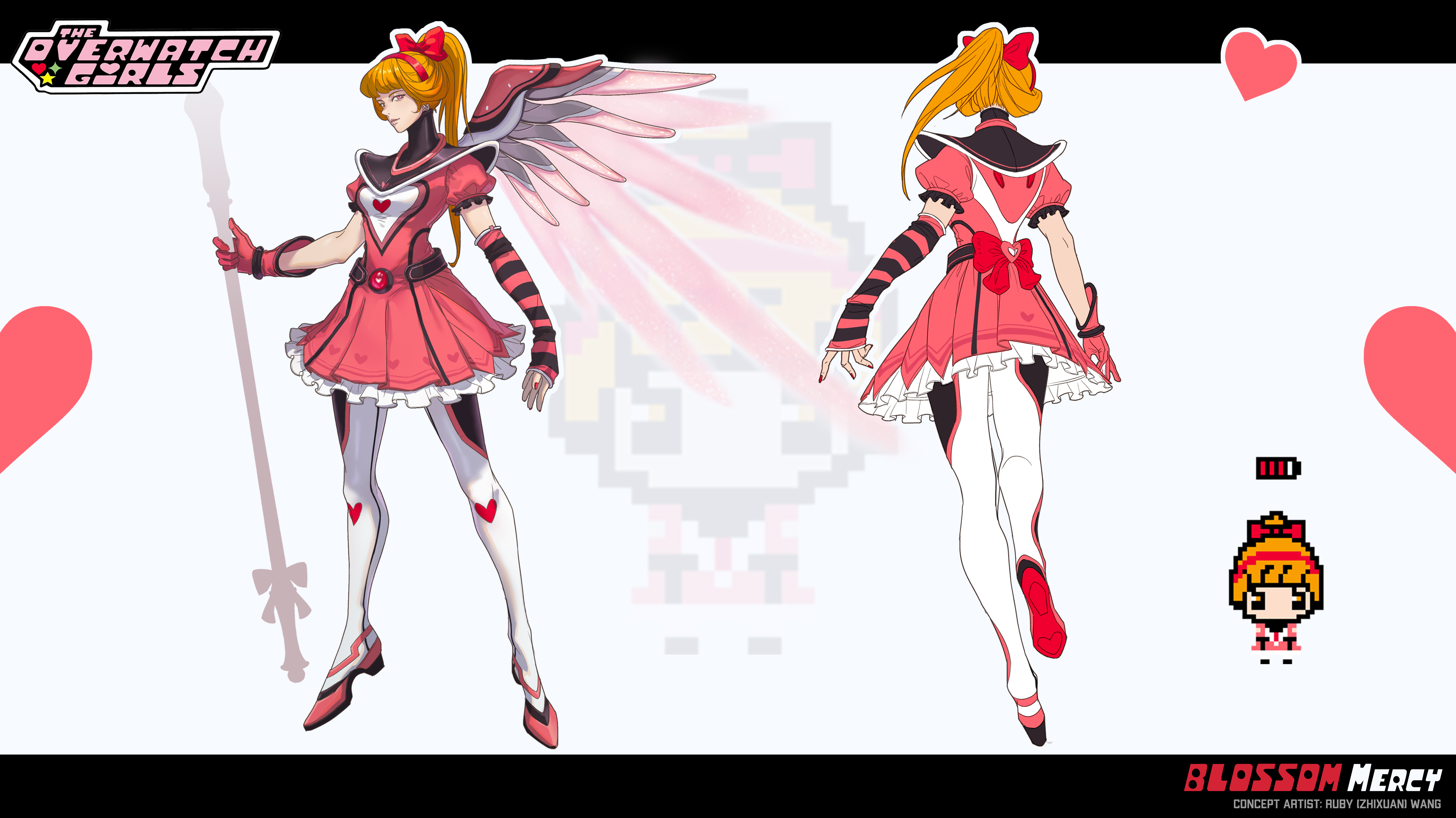 This is fan art for Overwatch 2 x The Powerpuff Girls collab. Inspired by Y2k fashion and the Magical Girls team.