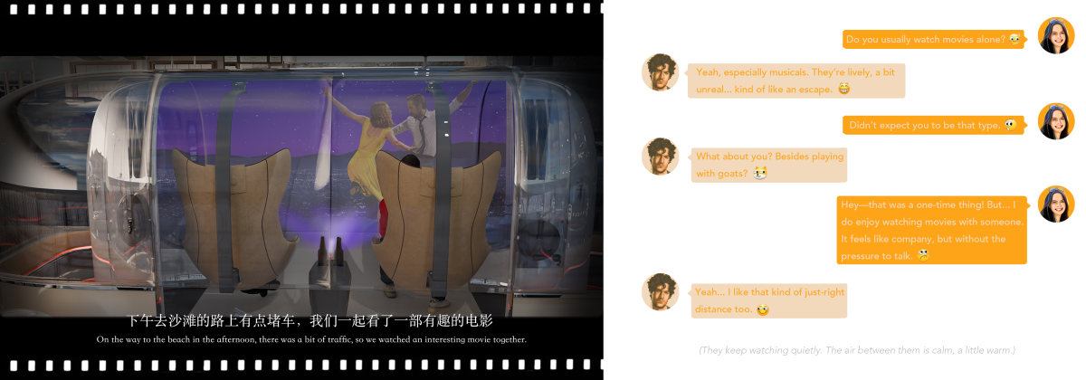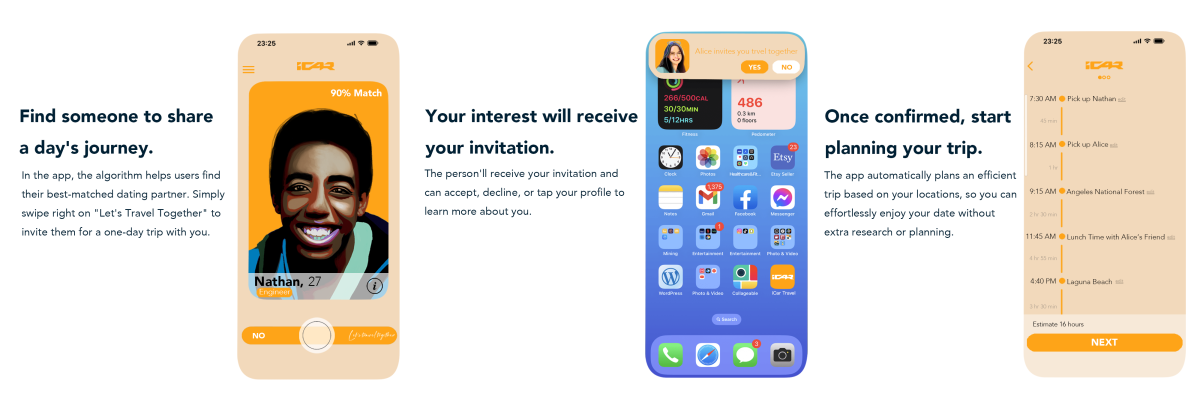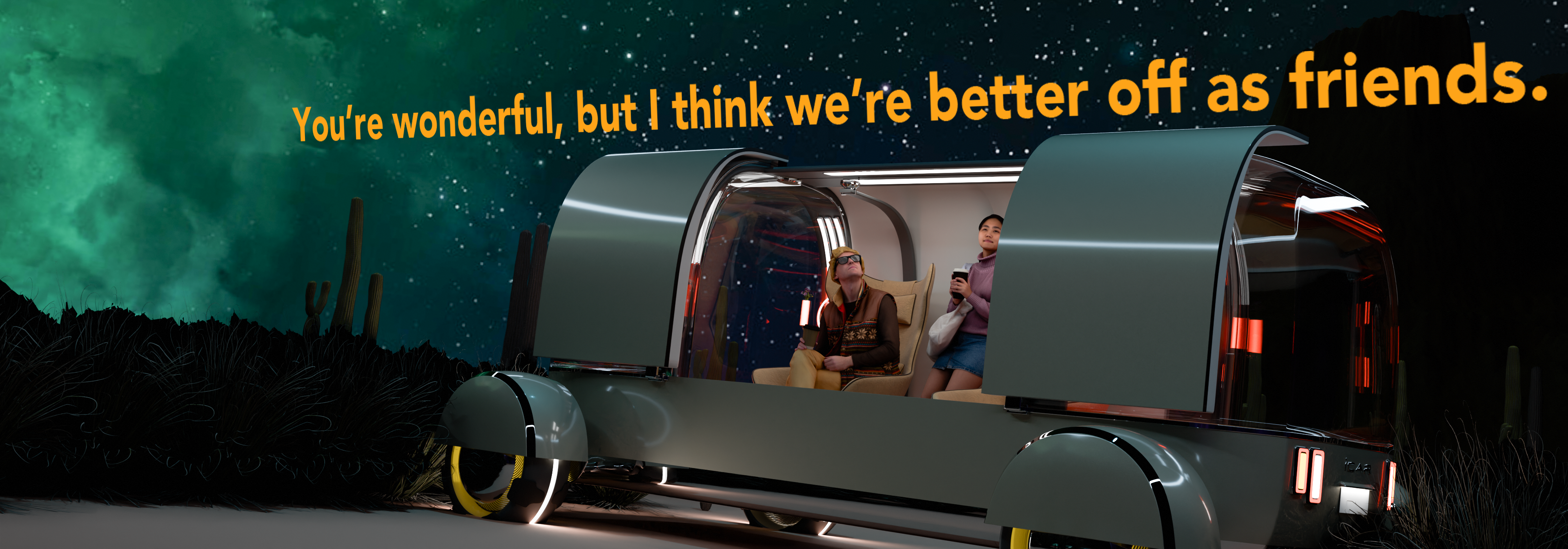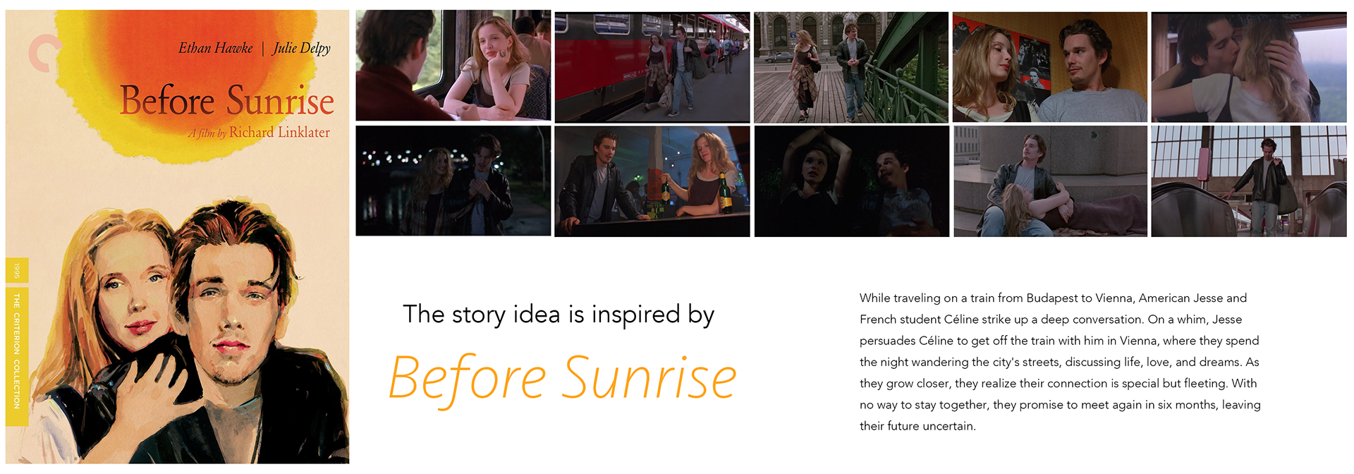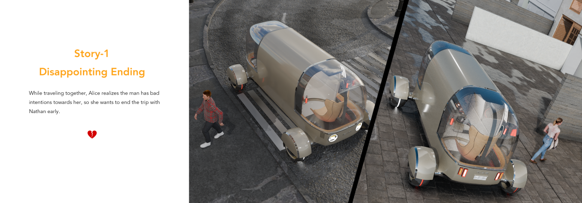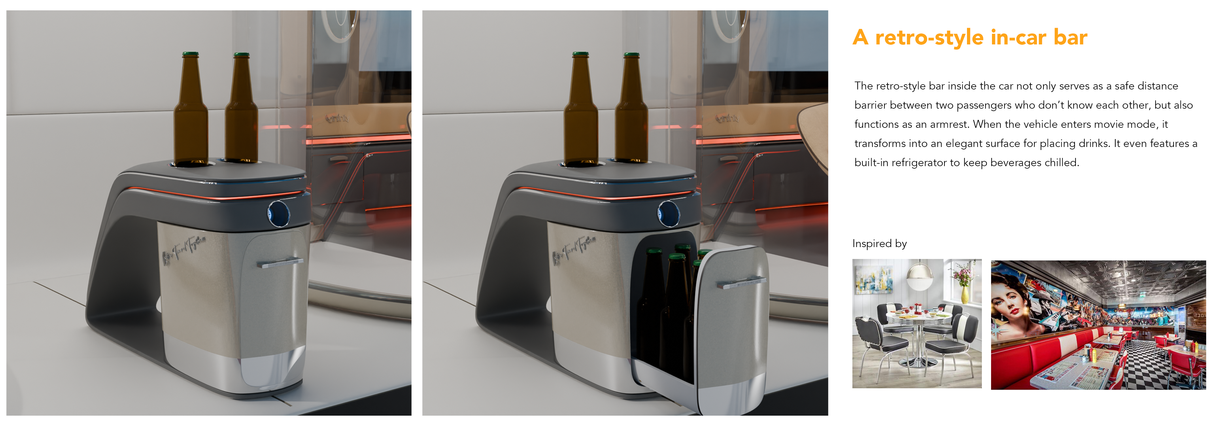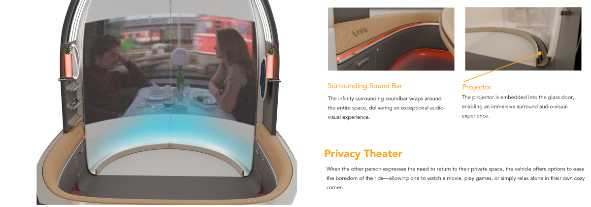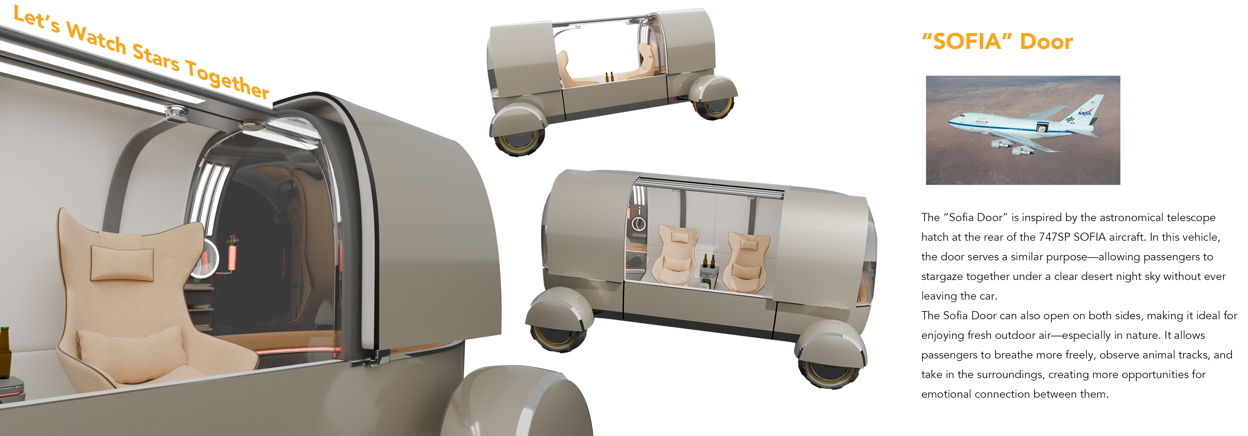 Inspired by the film Before Sunrise, this concept envisions an autonomous vehicle designed specifically for a one-day shared journey between two strangers. Through a thoughtfully arranged itinerary, the service creates opportunities for them to discover each other’s personalities, interests, and stories in a natural, unforced way. They may find that similar interests don’t necessarily lead to mutual attraction; they may simply enjoy the day as companions, become friends, or even develop a romantic connection. All of these outcomes are possible within the unique environment of this one-day travel experience.