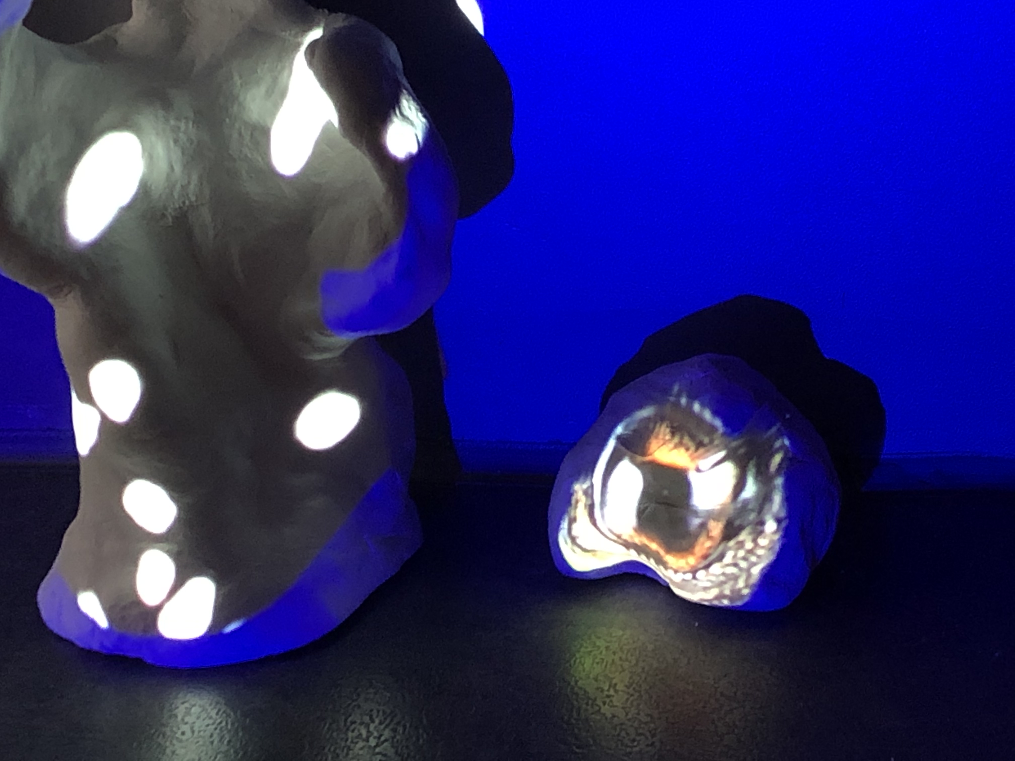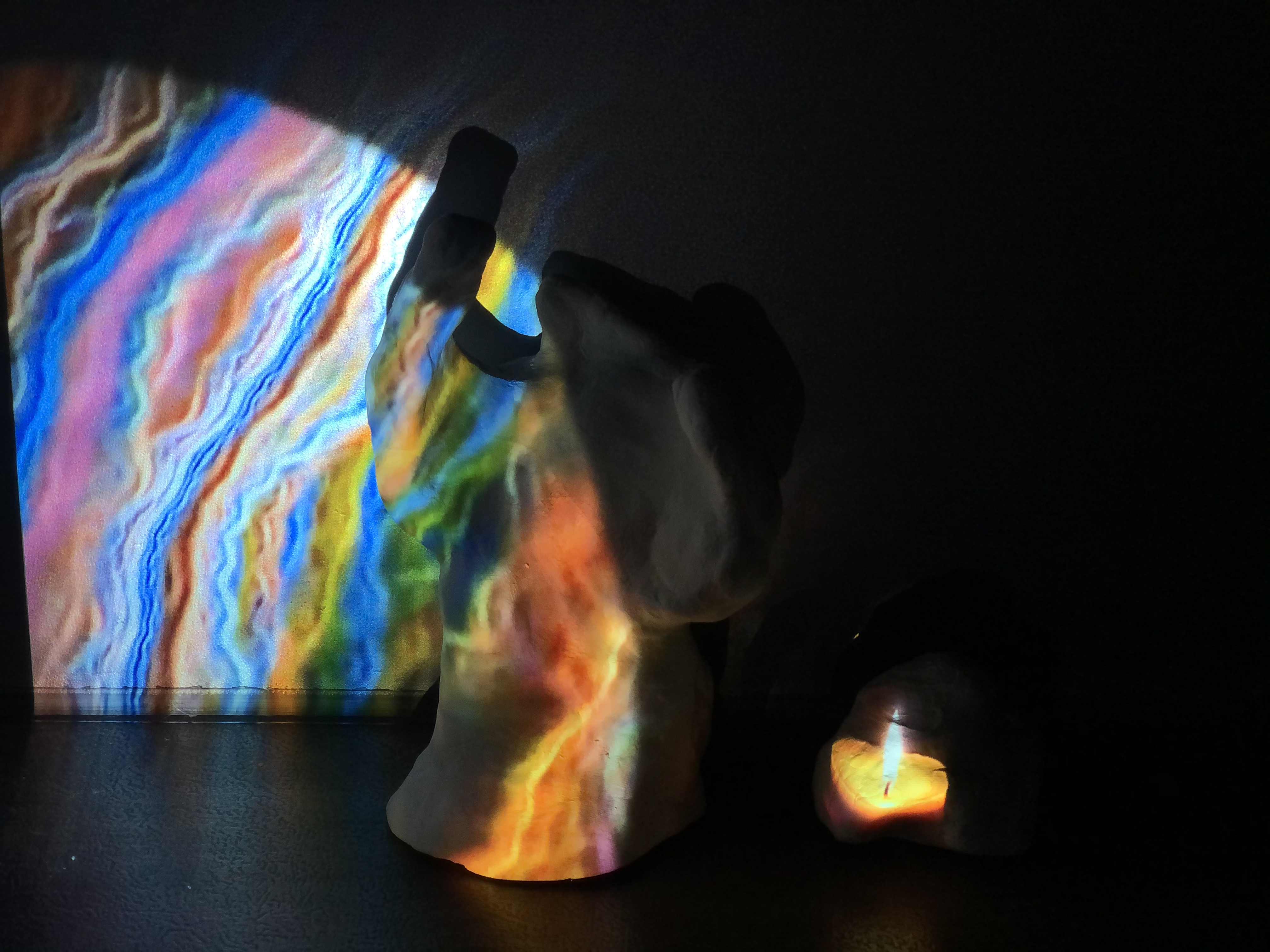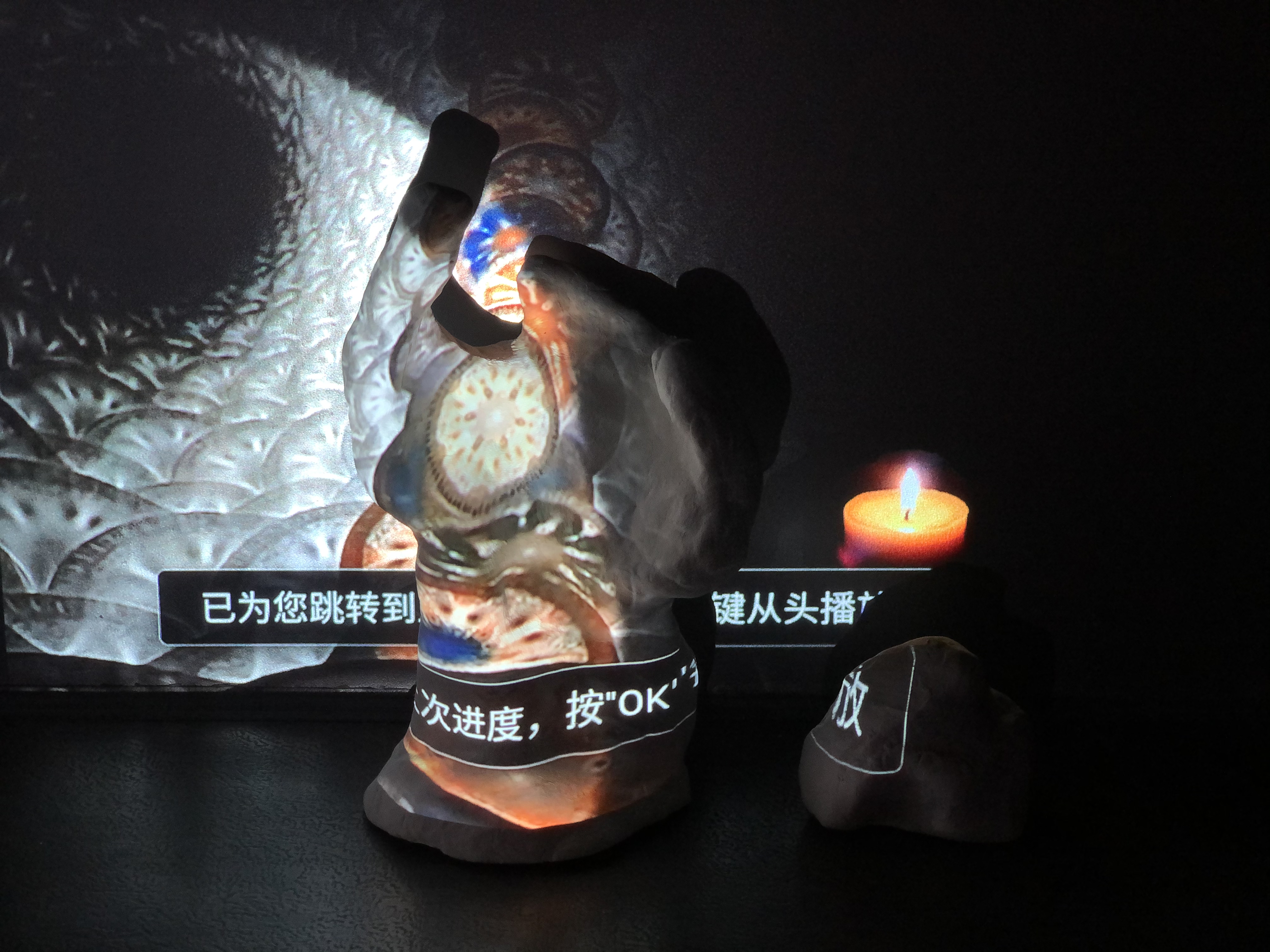 Nowadays, life is too dull and uneventful, and a game called room escape can make people escape from the routine for a short time. In this installation, I want to convey to the viewer my repressed fear in the secret room and the excitement caused by stimulation through the gloomy background sound, the sound of wood burning and the abstract patterns. This is also the interaction between sound, light and people, which affects the viewer's inner feelings through vision and hearing.