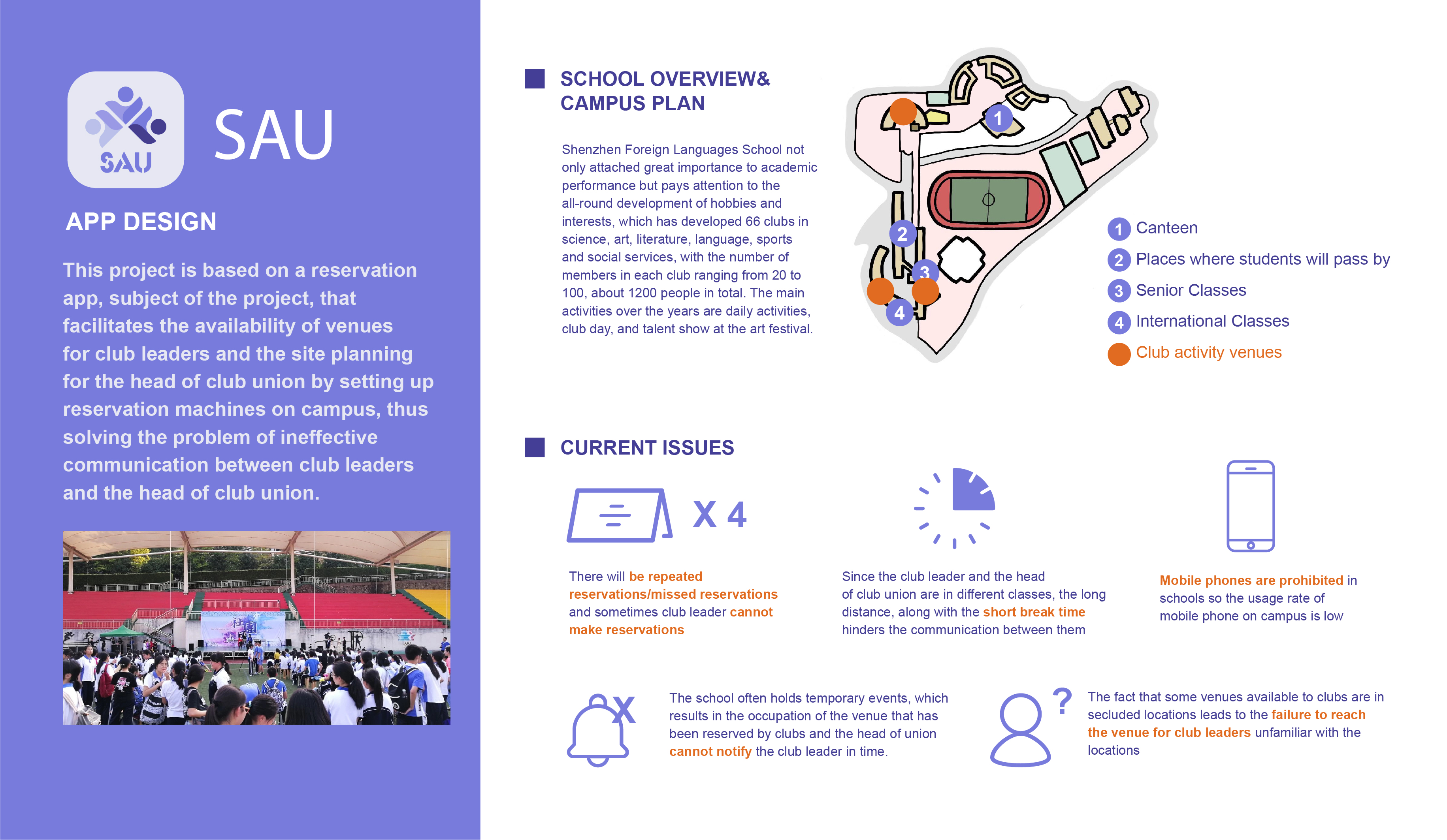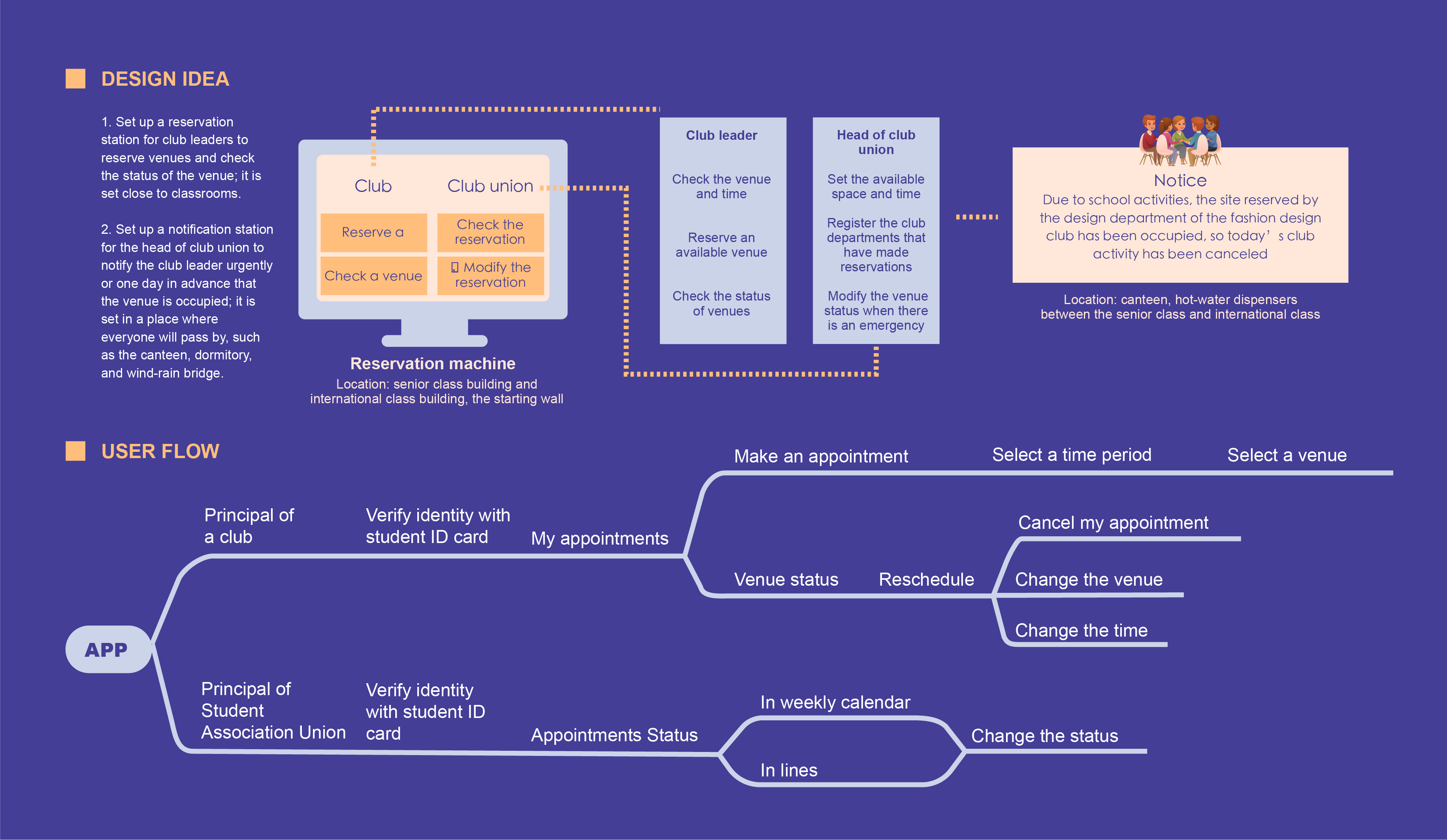 \This project is based on a reservation app, subject of the project, that facilitates the availability of venues for club leaders and the site planning for the head of the school club union by setting up reservation machines on campus, thus solving the problem of ineffective communication between club leaders and the head of the club union.
