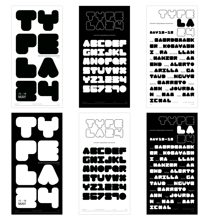 Designed a font with a consistent grid style for the Typography Conference in Los Angeles. This font is used prominently in the conference's logo, posters, and various items like badges and t-shirts. It's designed to catch people's eye and be memorable for attendees.