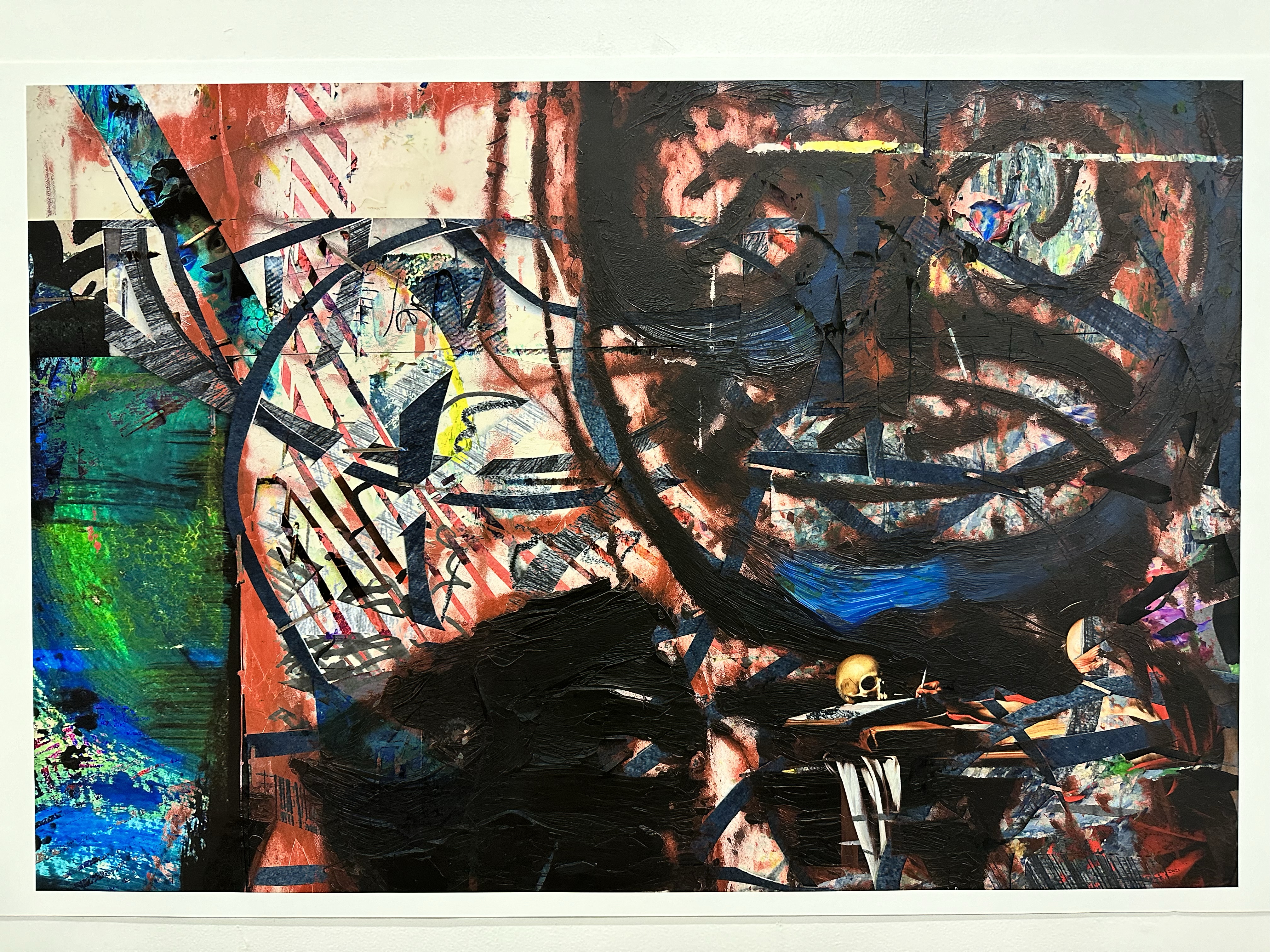 This is a digital collage printed on Matte Paper. It's 36 x 42 inches. It uses my method of digital manipulation and my brush library created through the use of machine learning engines.