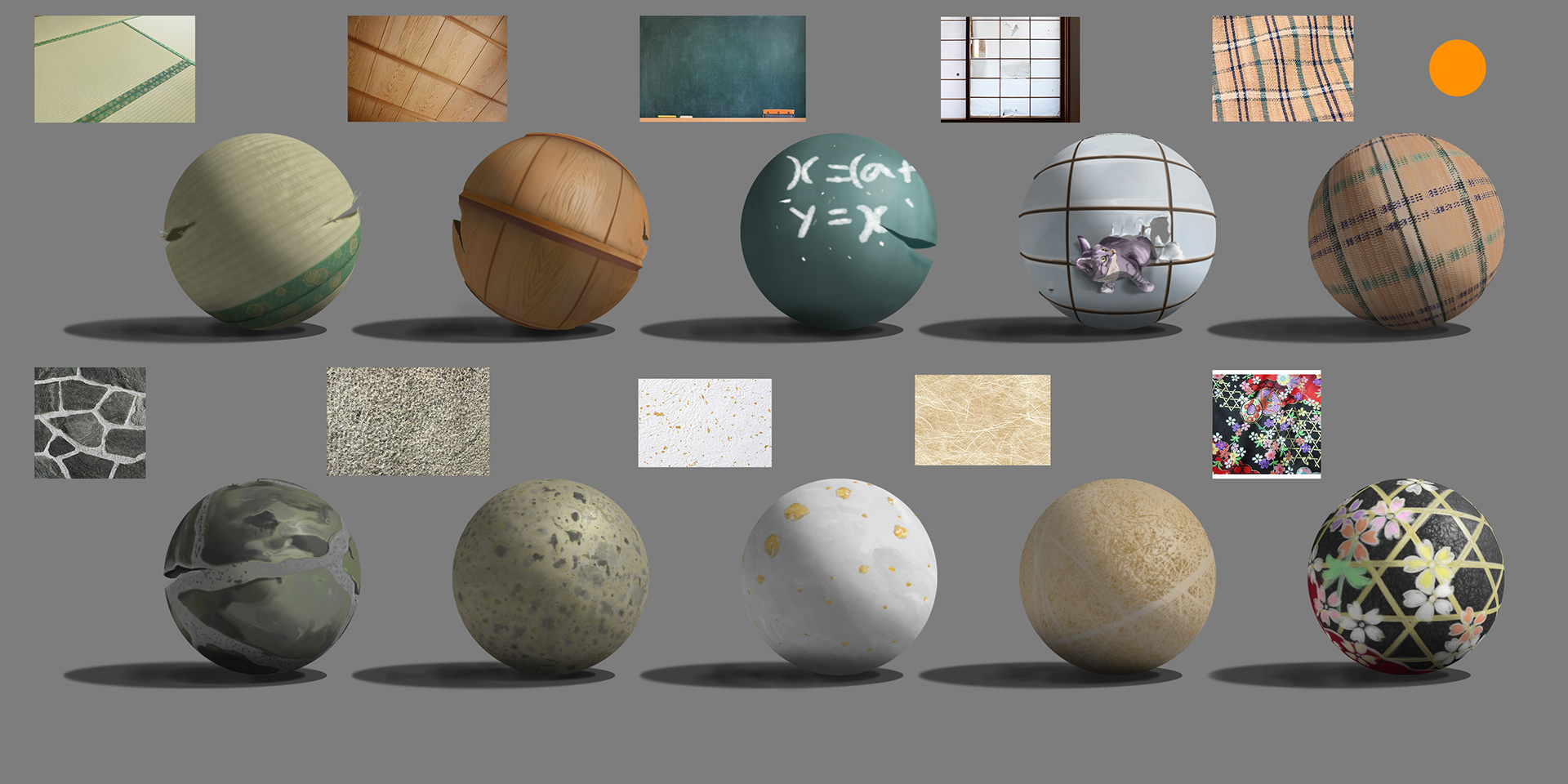 These are my rendered props and texture designs. I used photoshop to paint the essential essence of the objects. I love to think about what kind of textures create what kind of mood so that can tell a story.