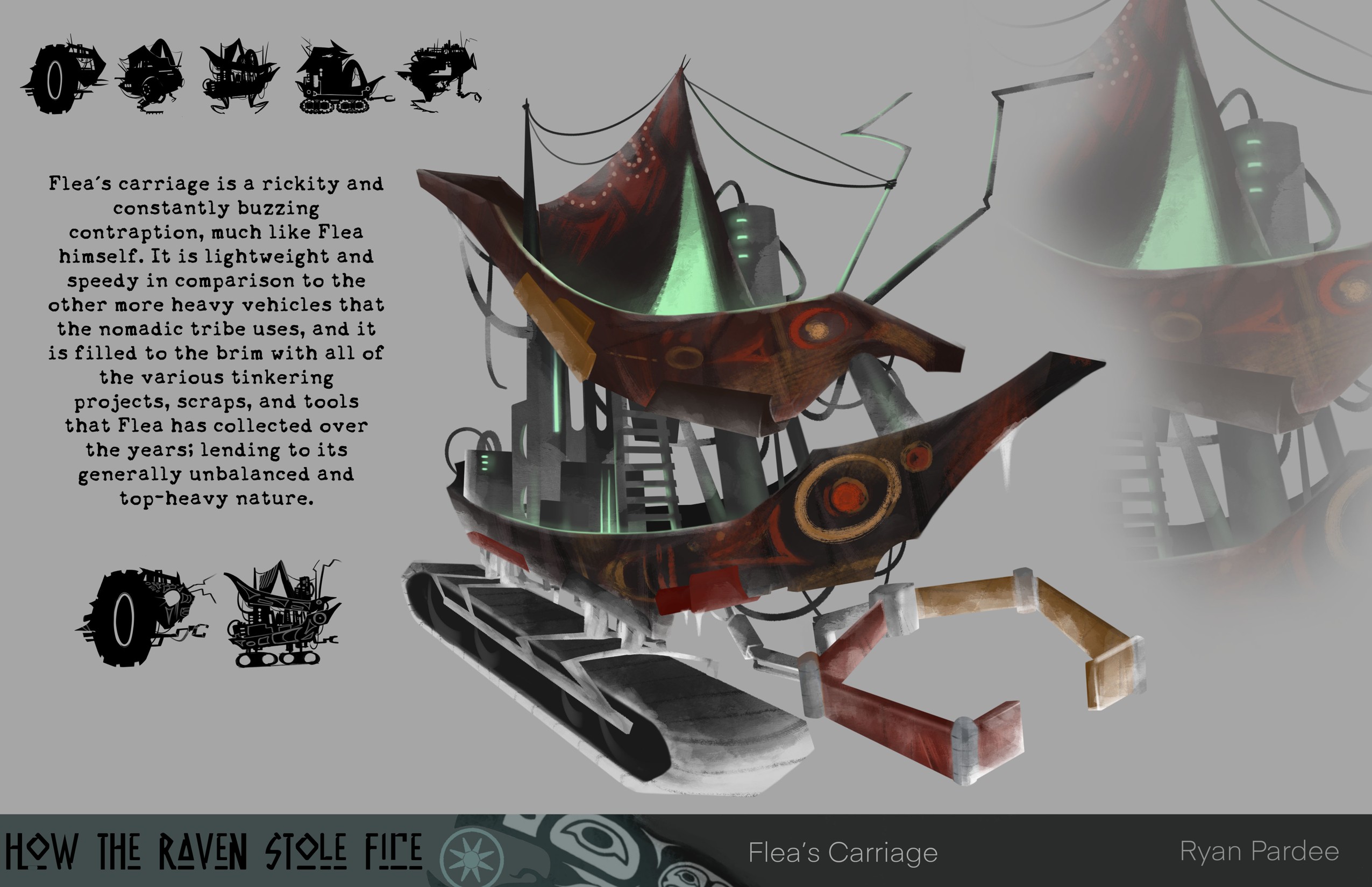The outline for this project was to develop a given folktale from a specific culture into a full visual development project which would be pitched at the end of five weeks. Each team member was responsible for designing a character, a prop, a vehicle, and an environment; resulting in a final product that contained five of each category.