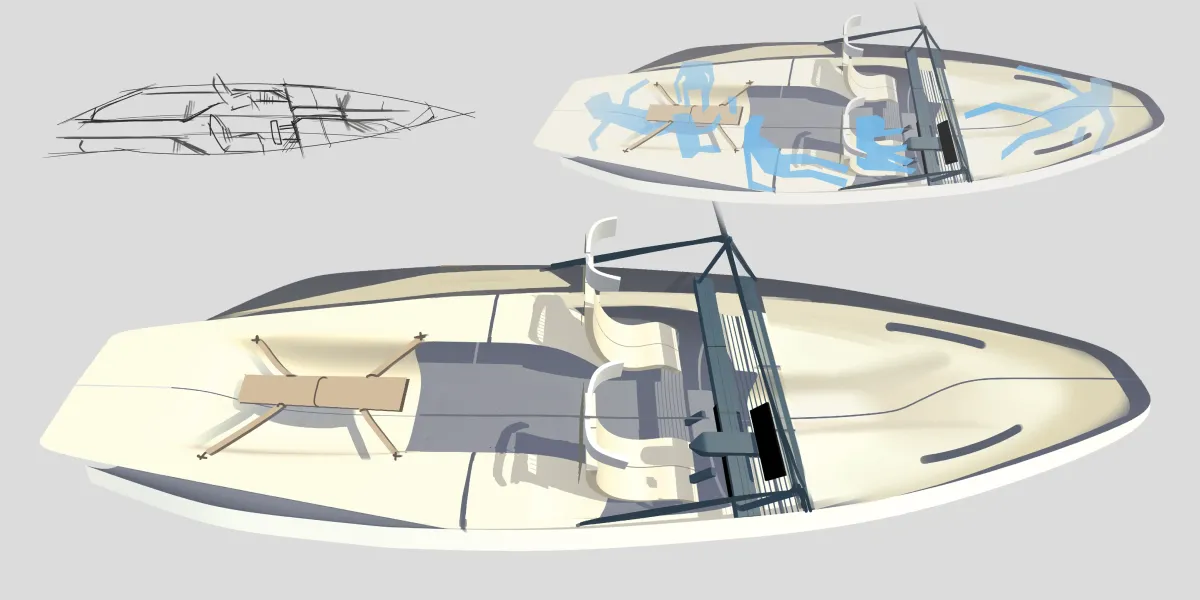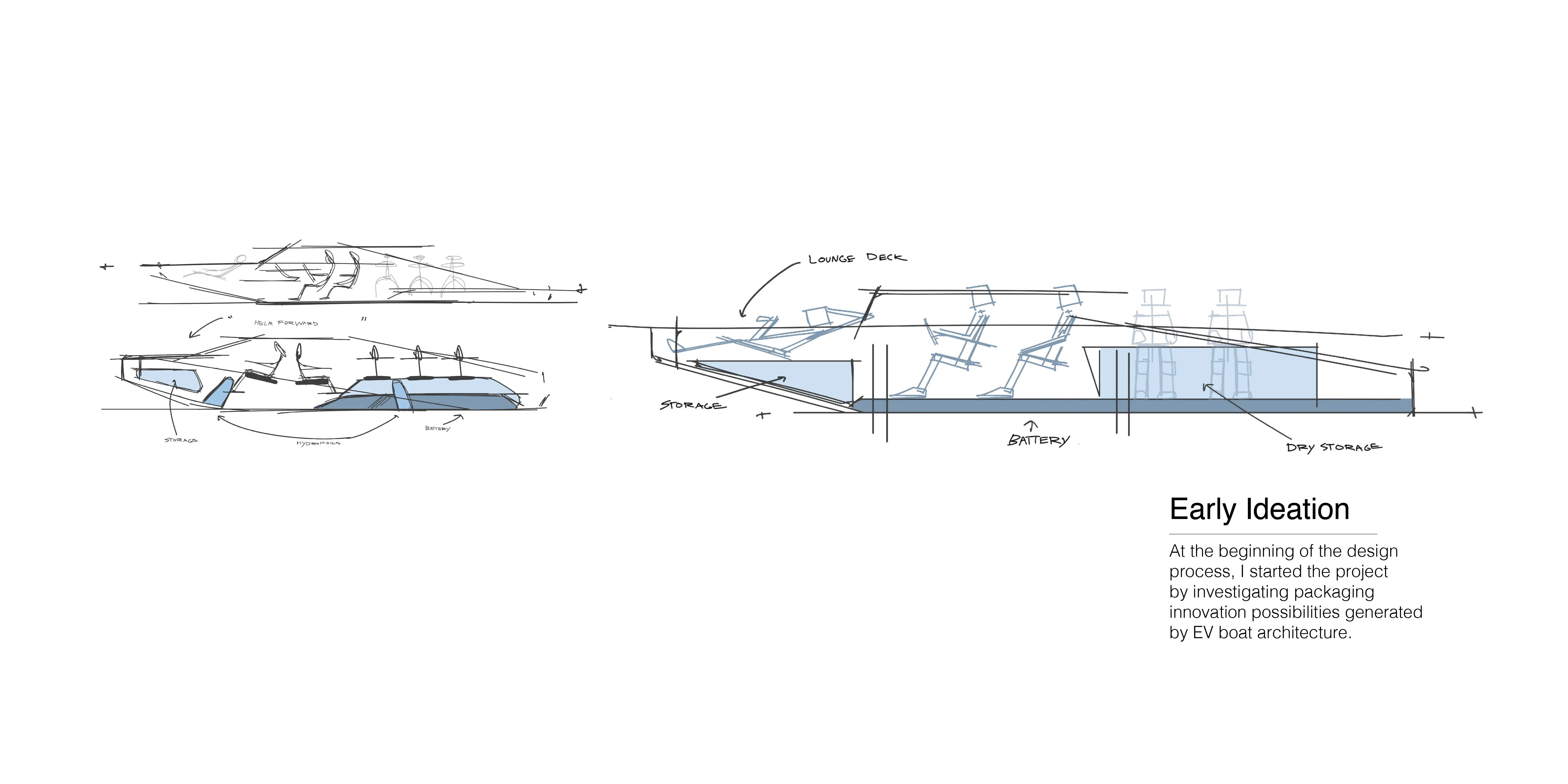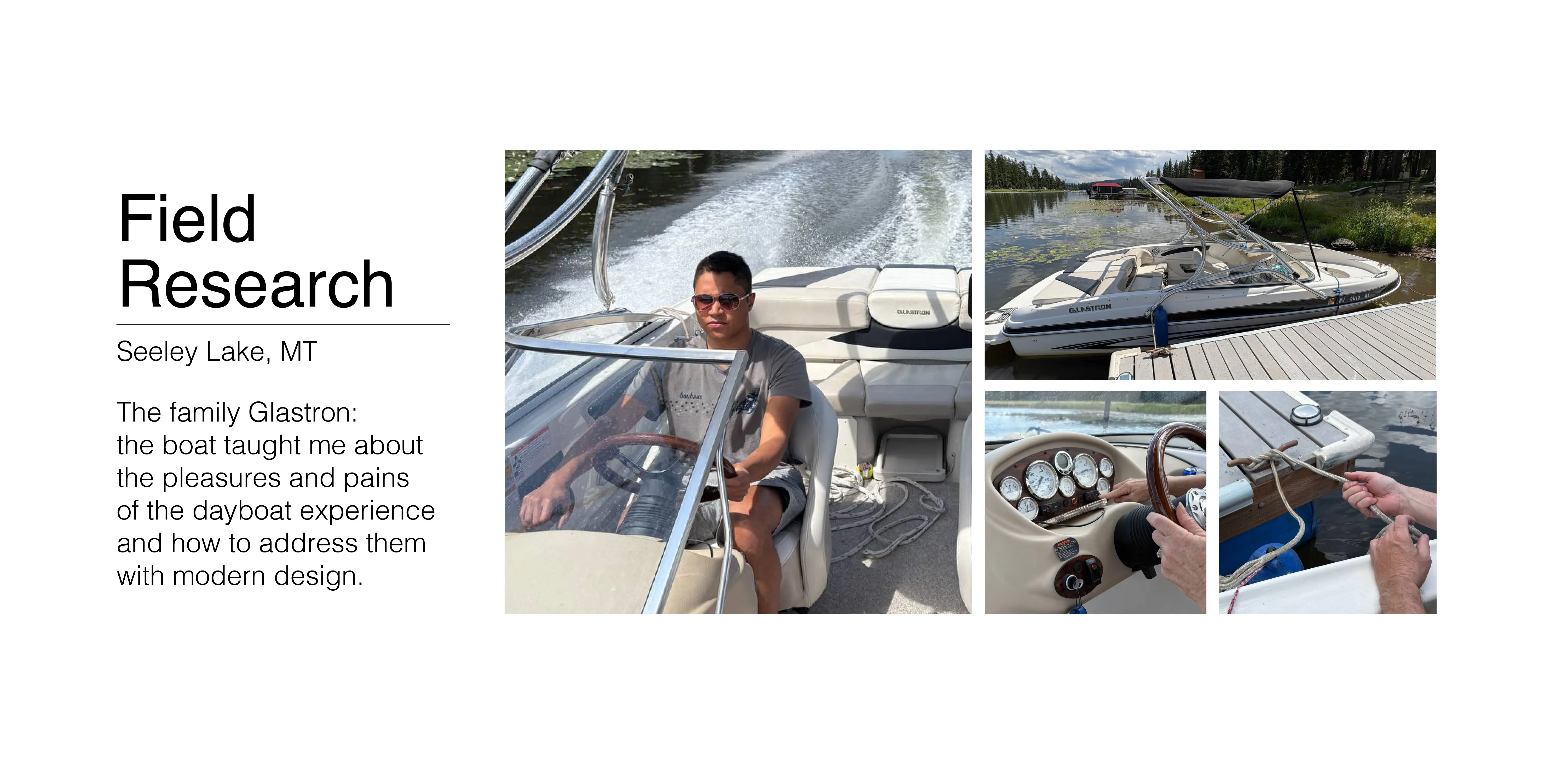 This project is inspired by my experiences boating in Montana. I wanted to create a product to improve the experiences that my family has with our bowrider. I did a VR scan of the deck to benchmark my capstone project. Then I went to pencil sketches to ideate layout ideas, innovation opportunities, and design themes. I developed these ideas in Photoshop and then brought them to Gravity Sketch VR. The end model was finished and rendered in Blender.