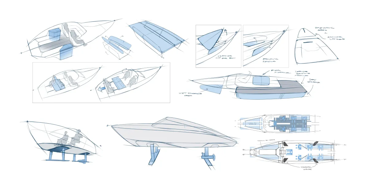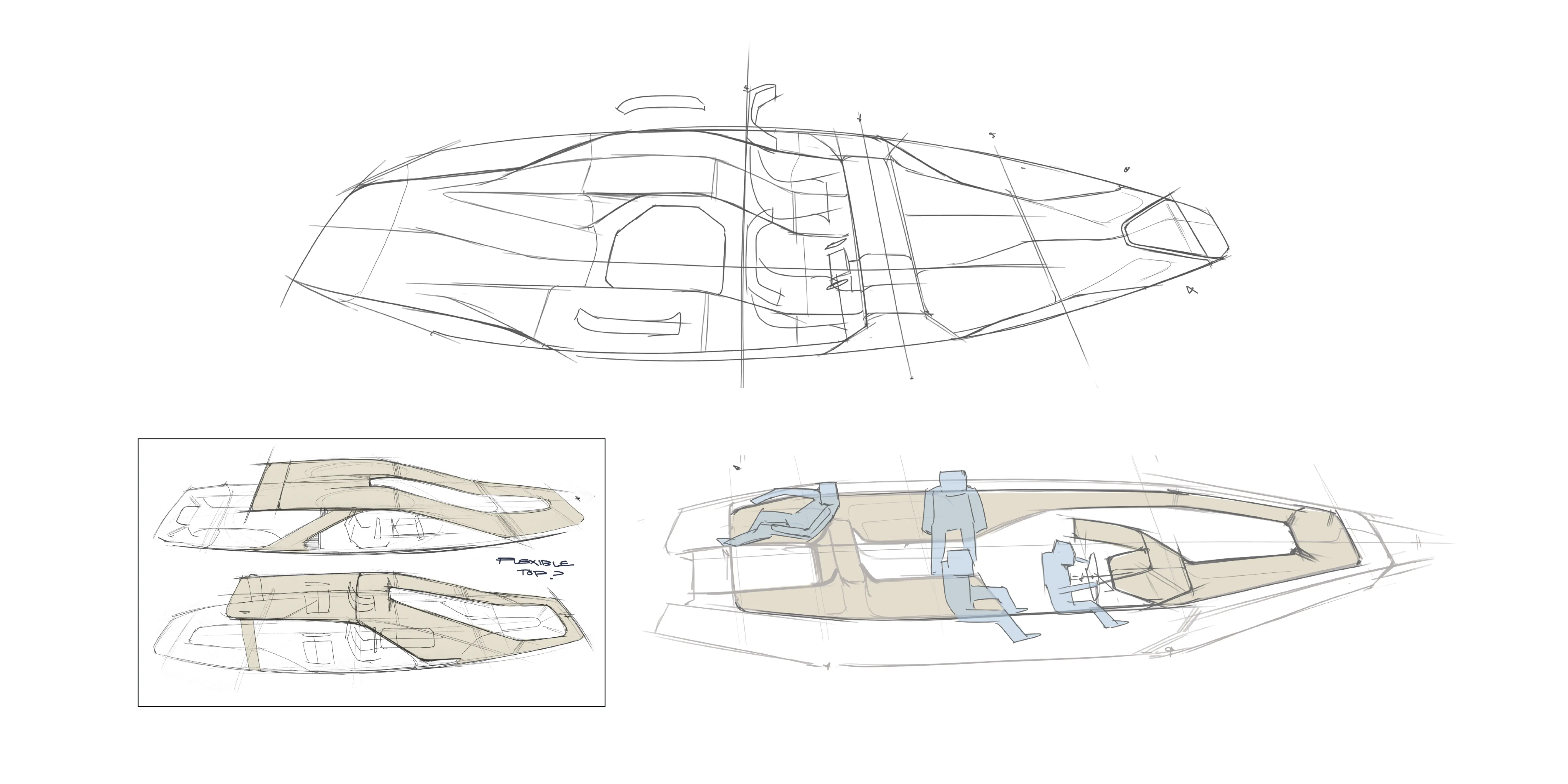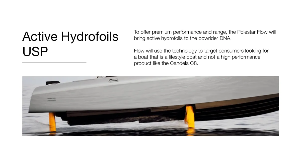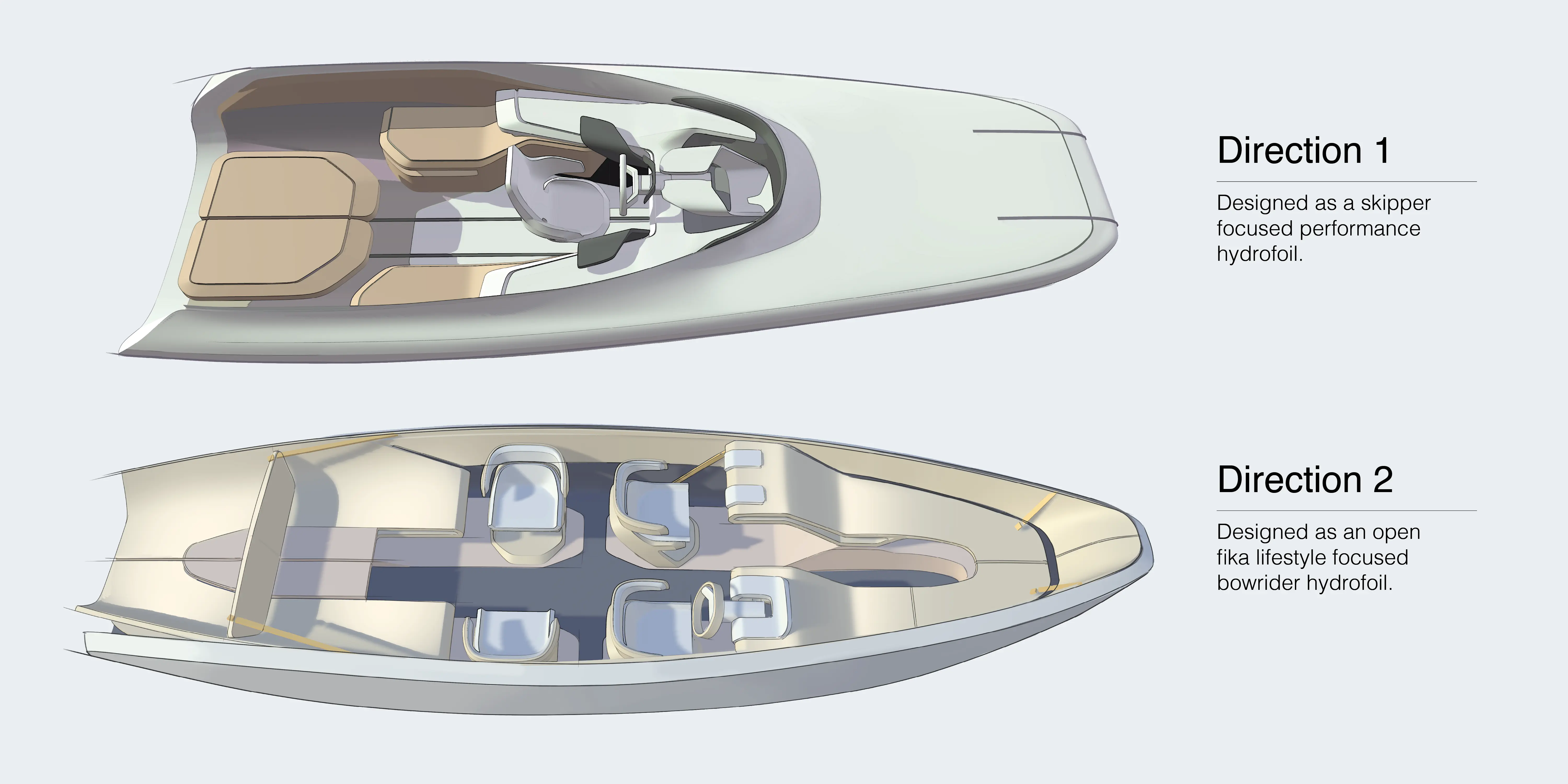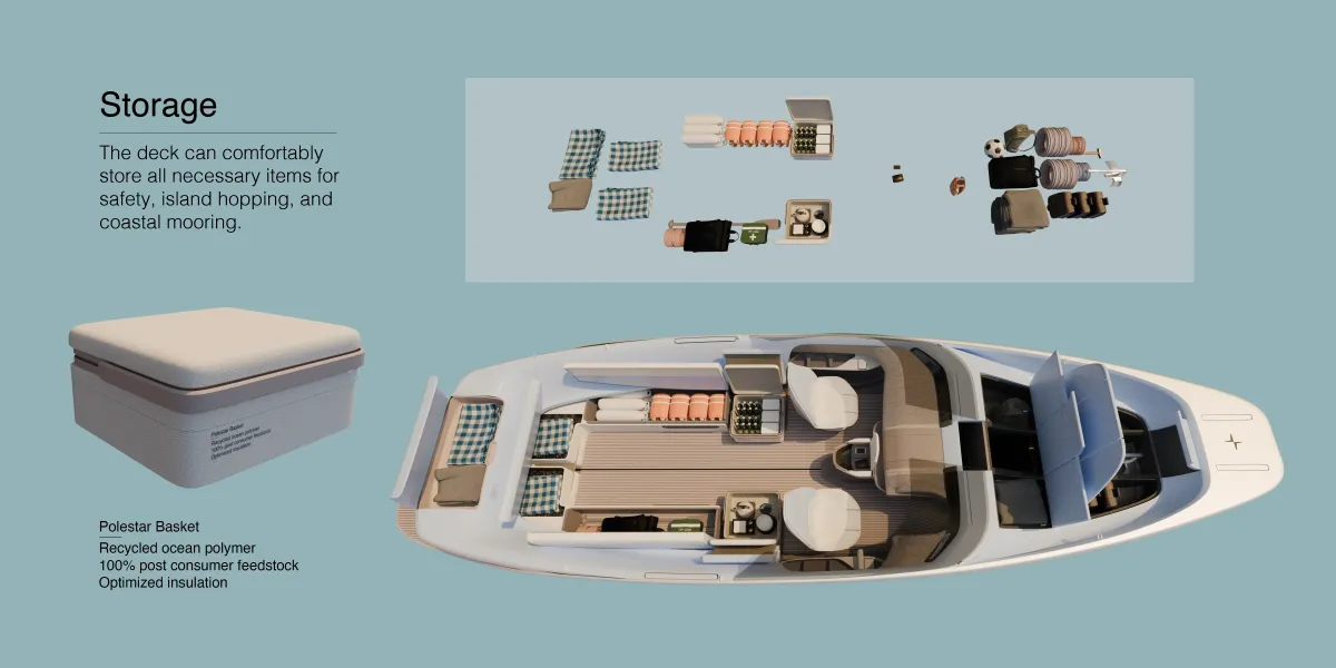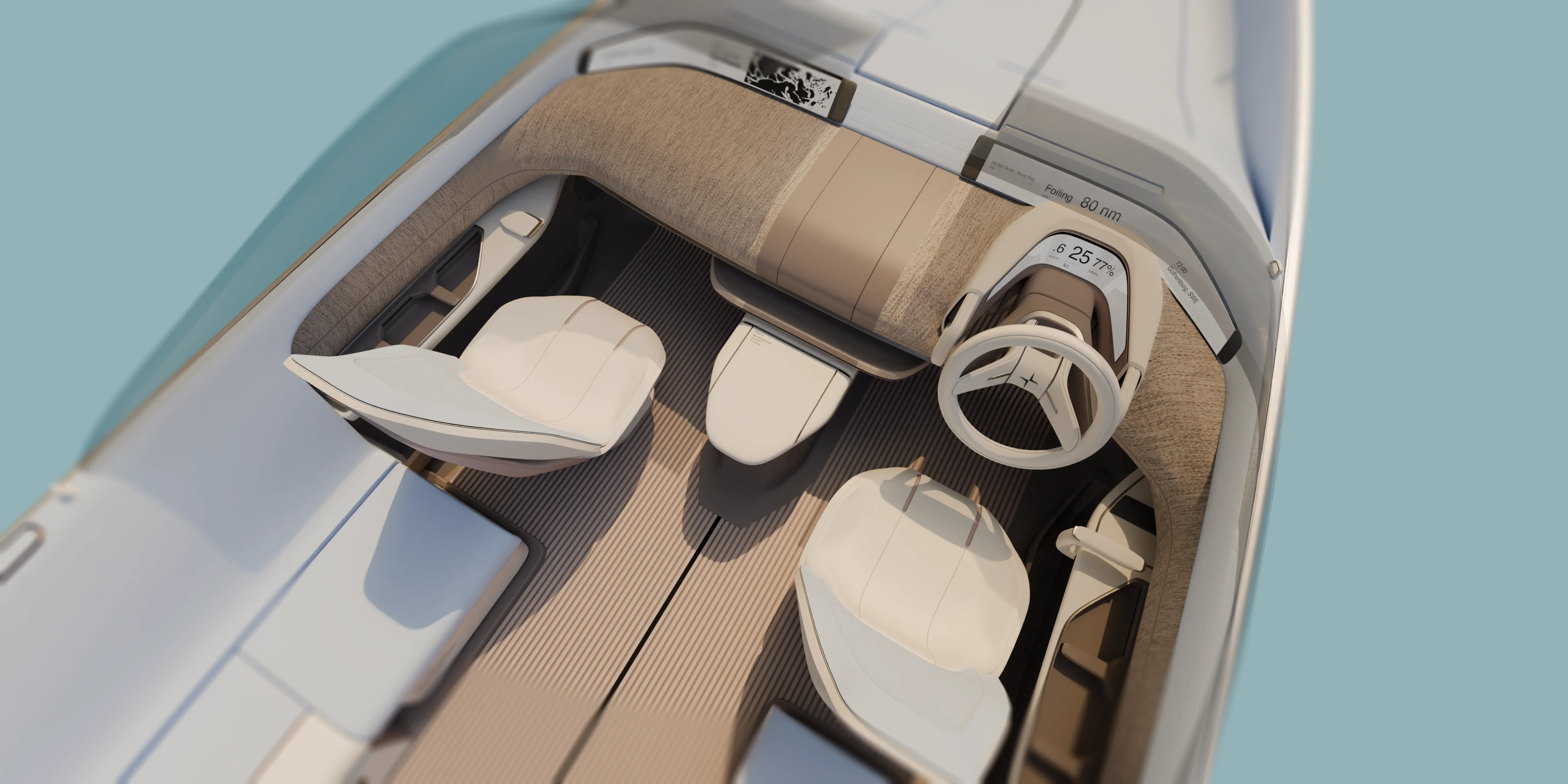 Polestar Flow is a Scandinavian lifestyle-inspired electric hydrofoil dayboat redefining modern coastal adventure. This project leverages EV vessel innovation to create new user experience opportunities. The vehicle is a hydrofoil to maximize range and reduce the size of the battery. The hydrofoil mode delivers on the Polestar performance that EV owners crave. The deck is designed to make every outing a seamless adventure.