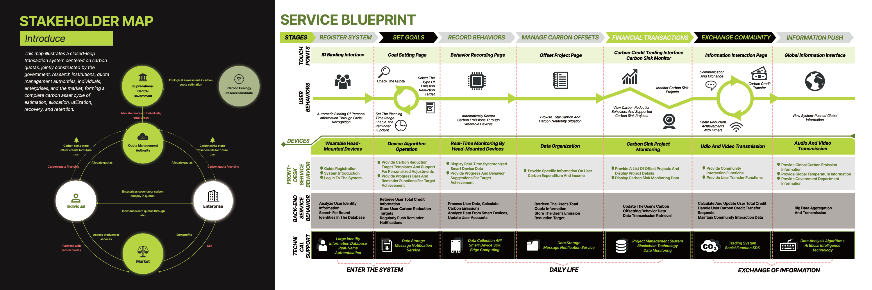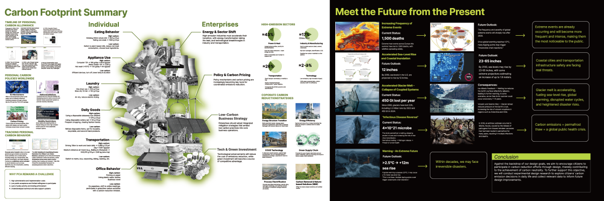 Co-developed a future-oriented carbon tracking concept under SDG13, combining system, service, and product design to guide individual low-carbon behavior by 2050.