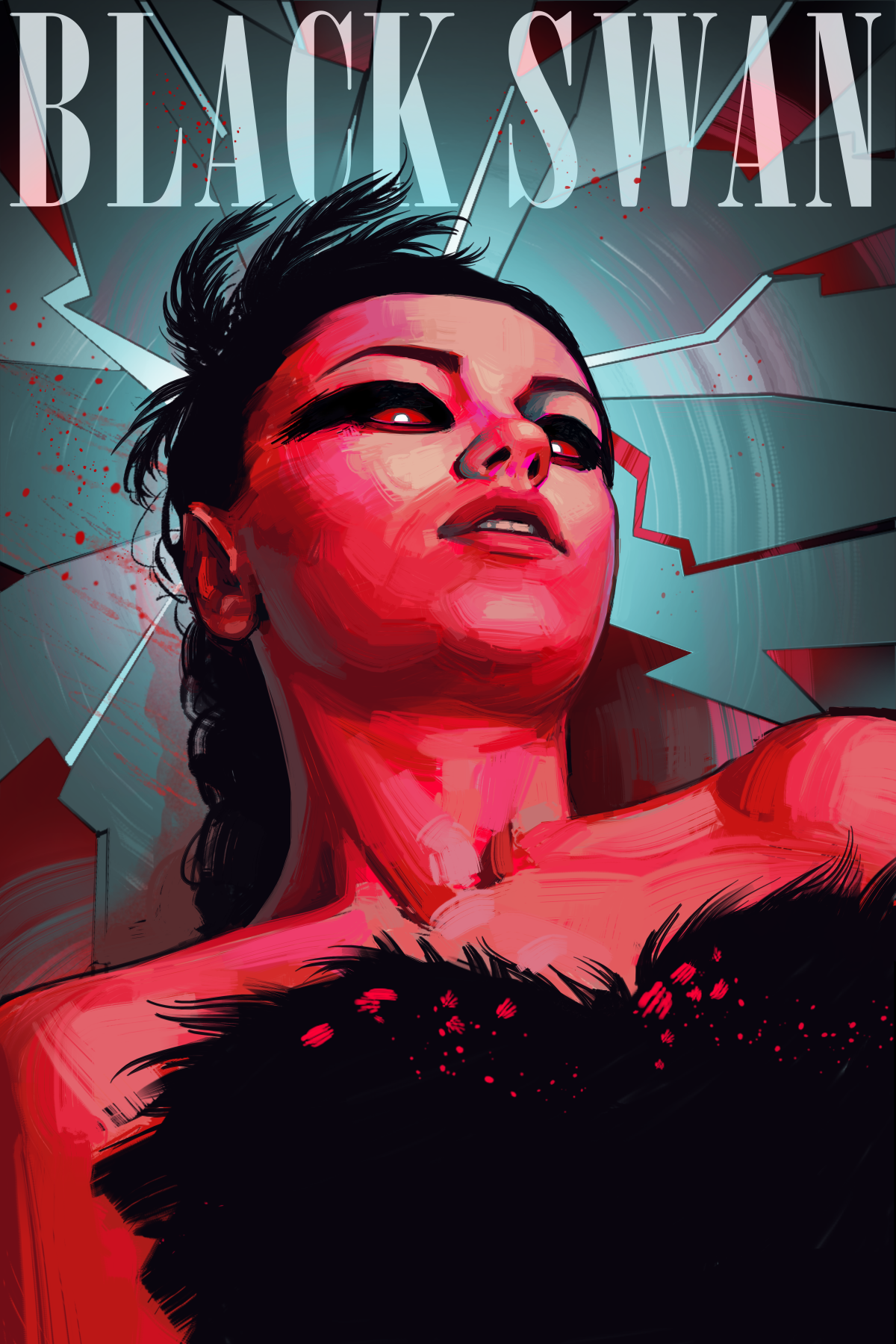 Mock poster illustration for the movie Black Swan, a psychological horror film about a ballerina who performs the roles of White Swan and Black Swan for the ballet production Swan Lake.