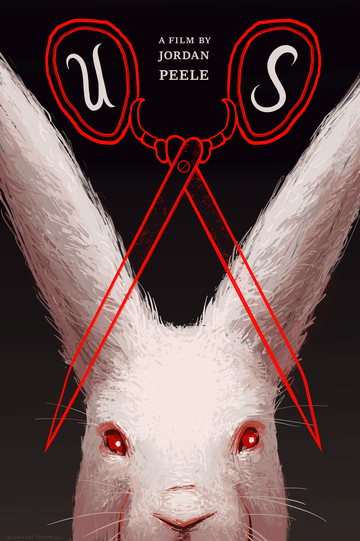 Mock poster illustration for the movie Us, a horror film about a woman and her family's attempts to escape from their doppelgängers.
