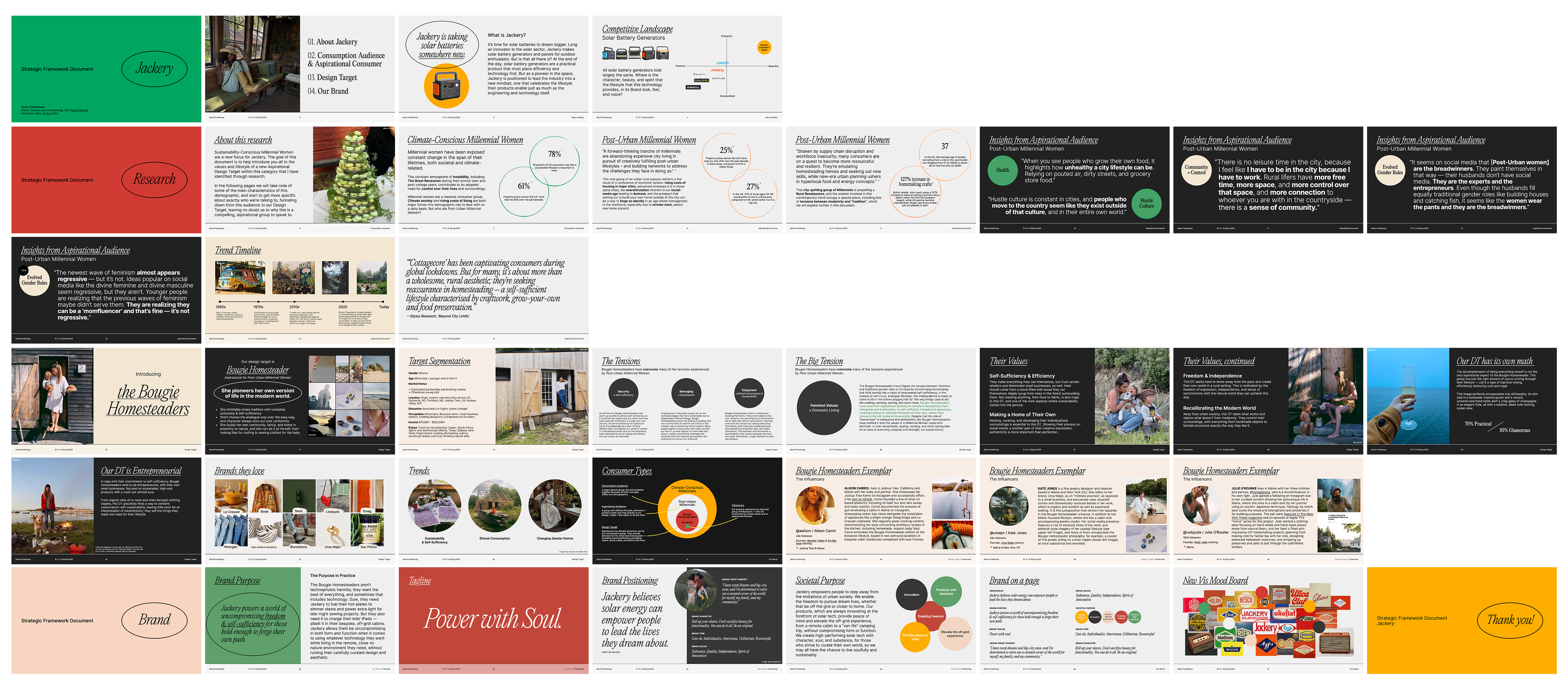 Jackery is a solar technology company that makes portable generator batteries and panels. The current state of the brand feels generic and uninspired, despite the adventurous lifestyle their products enable. The problem? They don’t quite know who they’re talking to. I identified an aspirational design target within Jackery’s consumption audience to help the brand define who they are, and who they need to speak to: the Bougie Homesteaders.