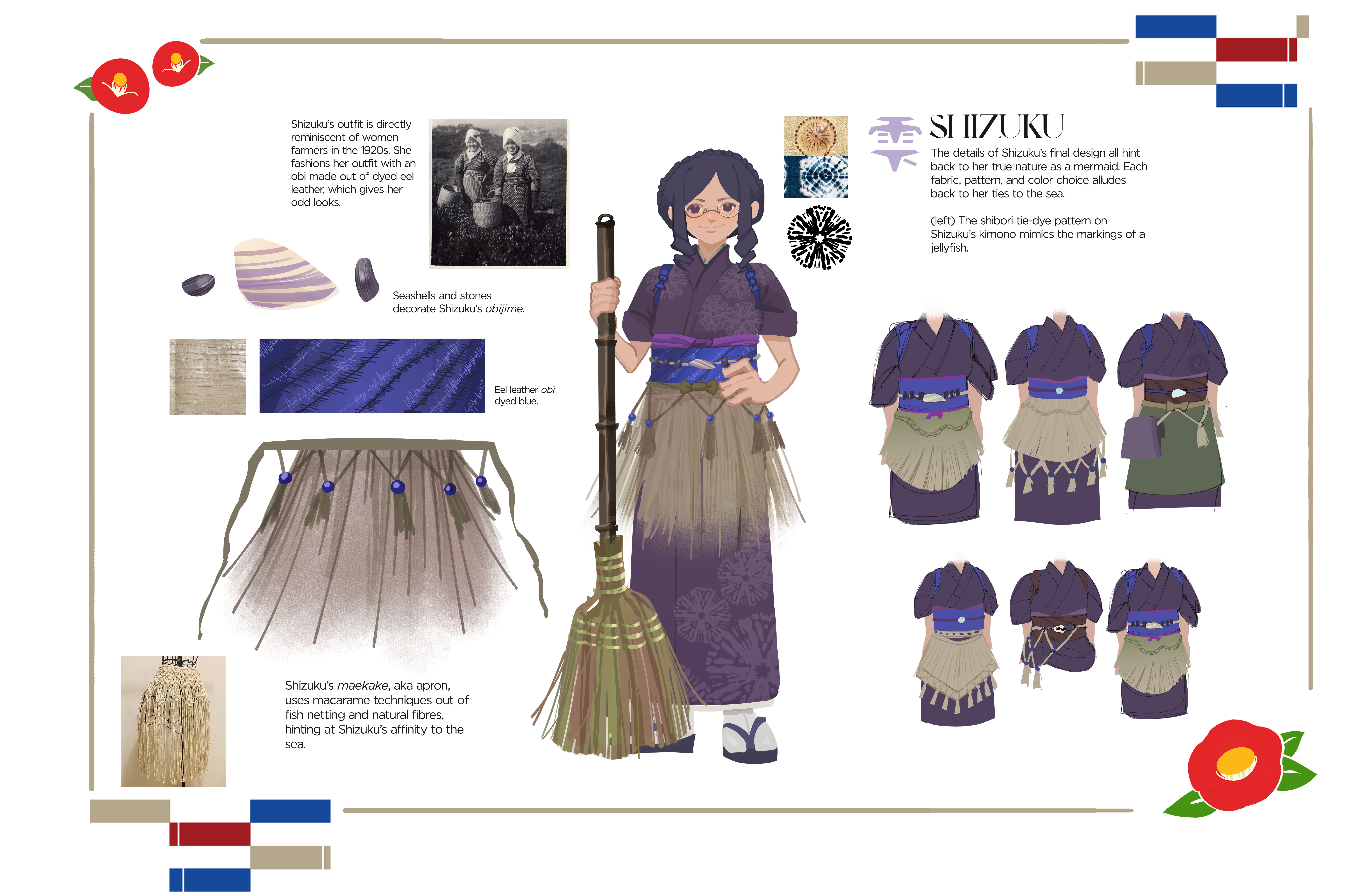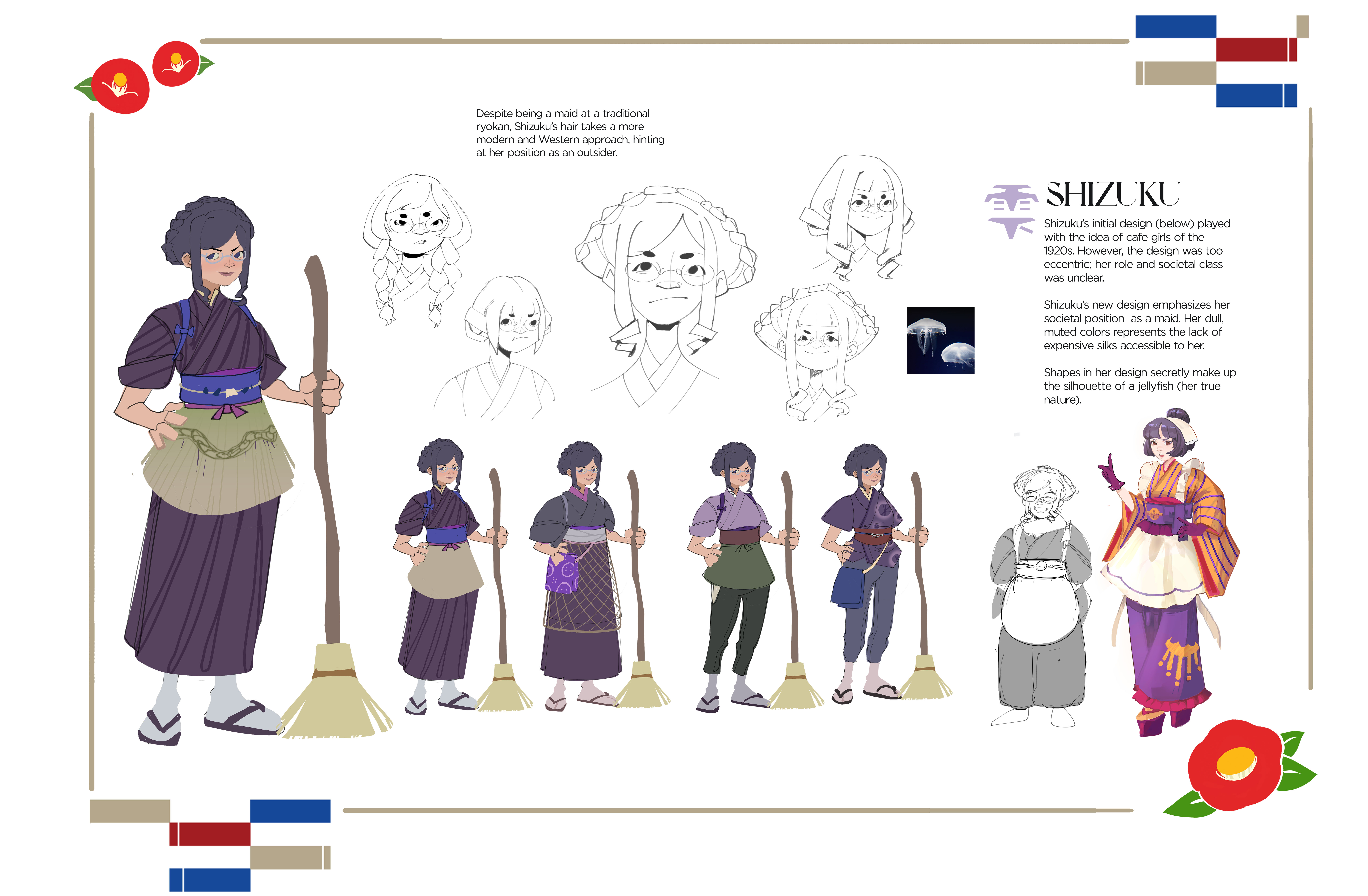 CHARACTER COSTUME DESIGN. JAPAN 1920. When a string of mysterious disappearances terrorize a quaint seaside village, an amnesiac maid named Shizuku is immediately accused of the crime. Desperate to prove her innocent, Shizuku enlists on finding the true culprit but ends up learning more about her true nature along the way.