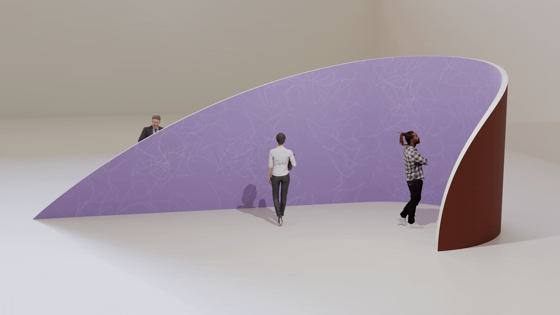 An interactive installation the conference in a shape inspired by the sail symbol. With a height of 10ft, the display creates an immersive viewing experience.