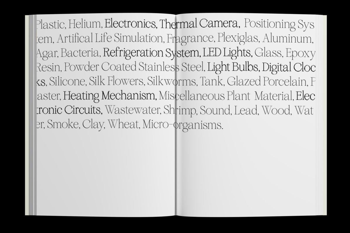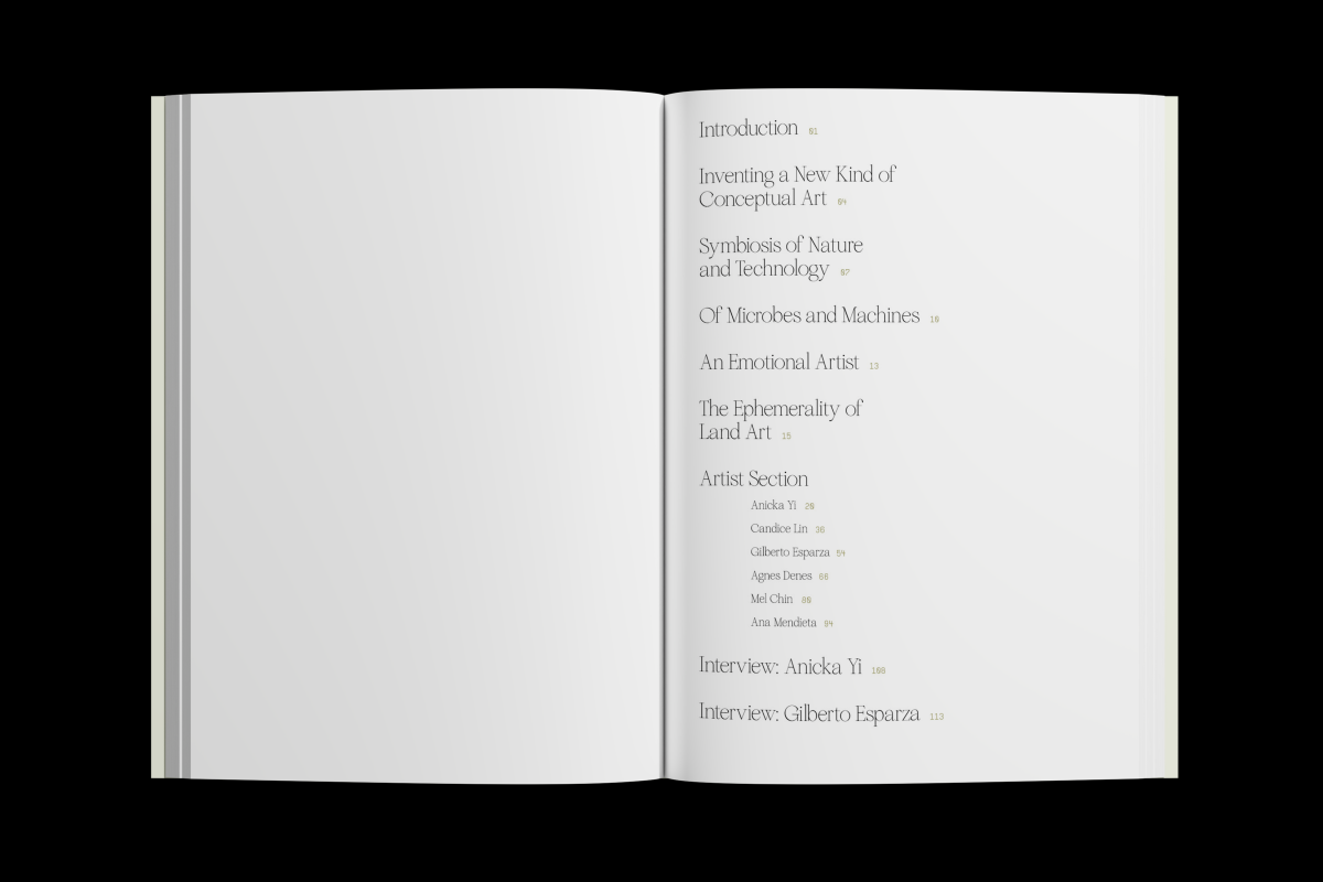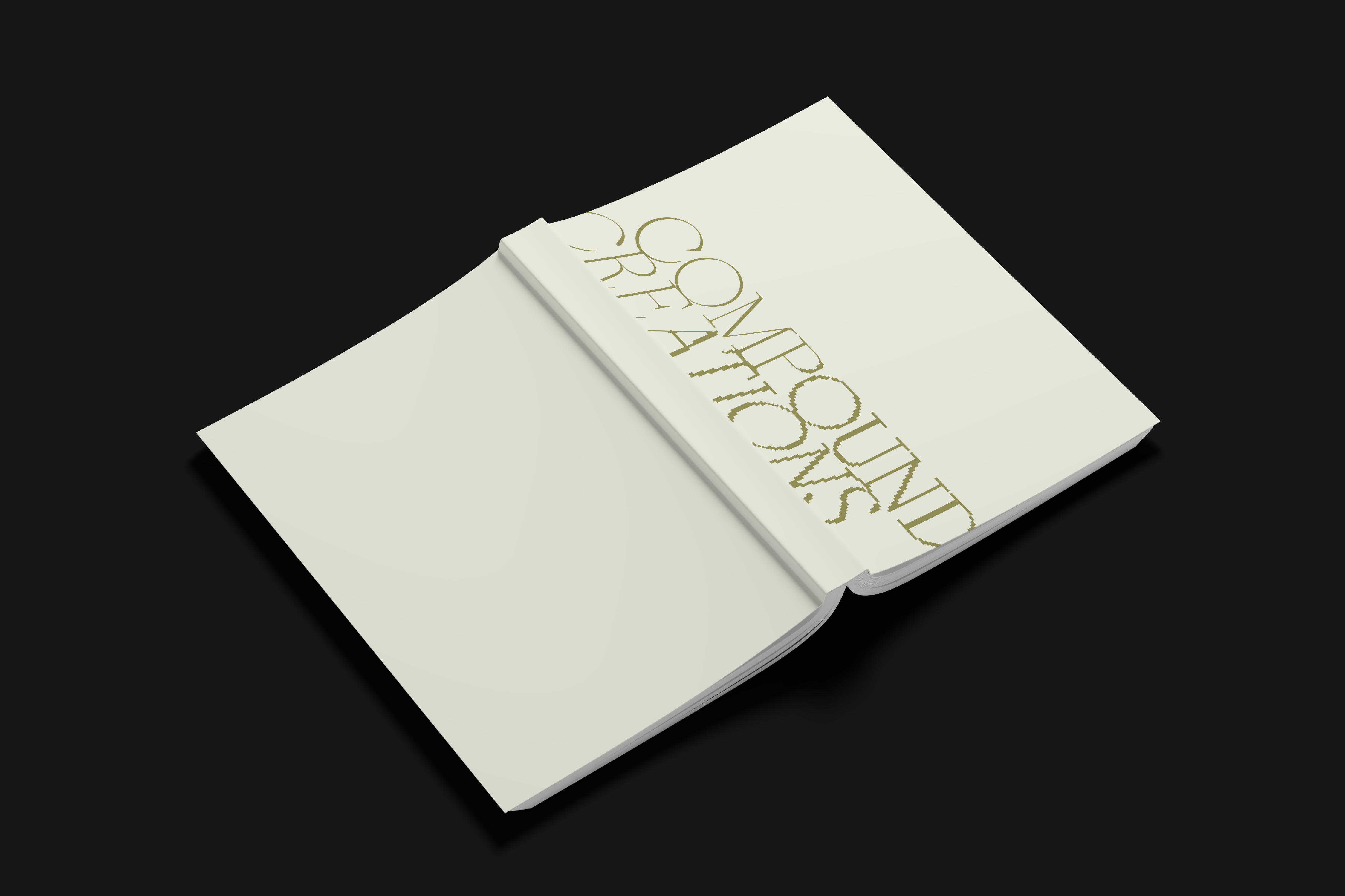Compound Creations is a catalog for an exhibition that explores the intersections of nature, technology, and material experimentation. The publication investigates how nature interacts with science and digital media through the work of artists who merge organic and engineered forms. The design system reflects this balance by combining fluid text layouts with structured grids, capturing the tension between natural movement and technological precision.