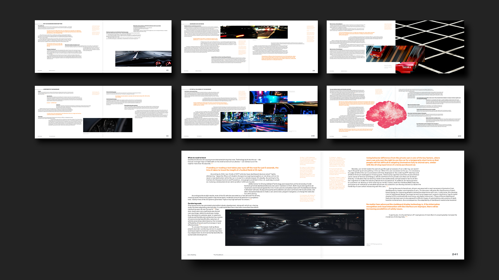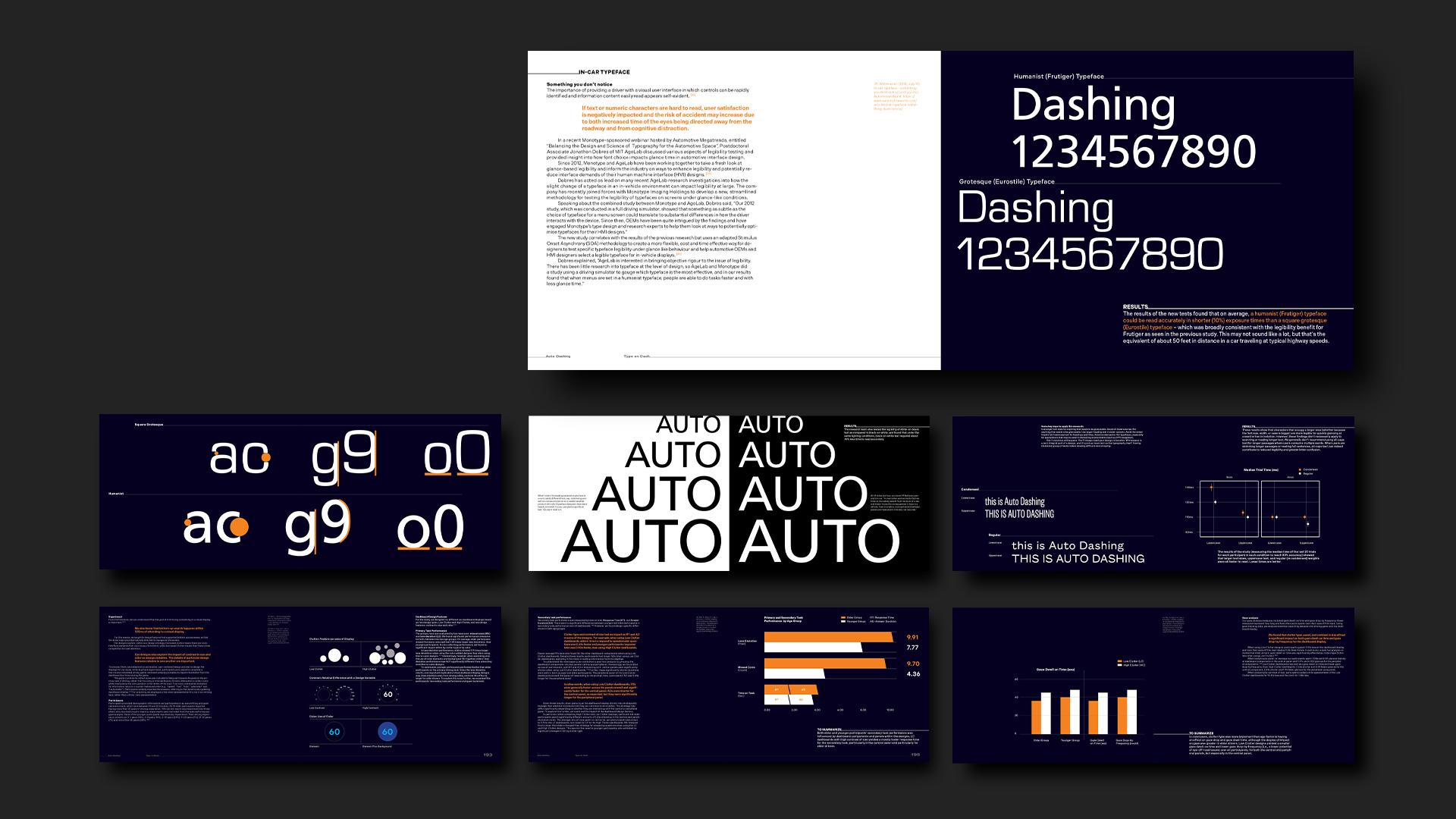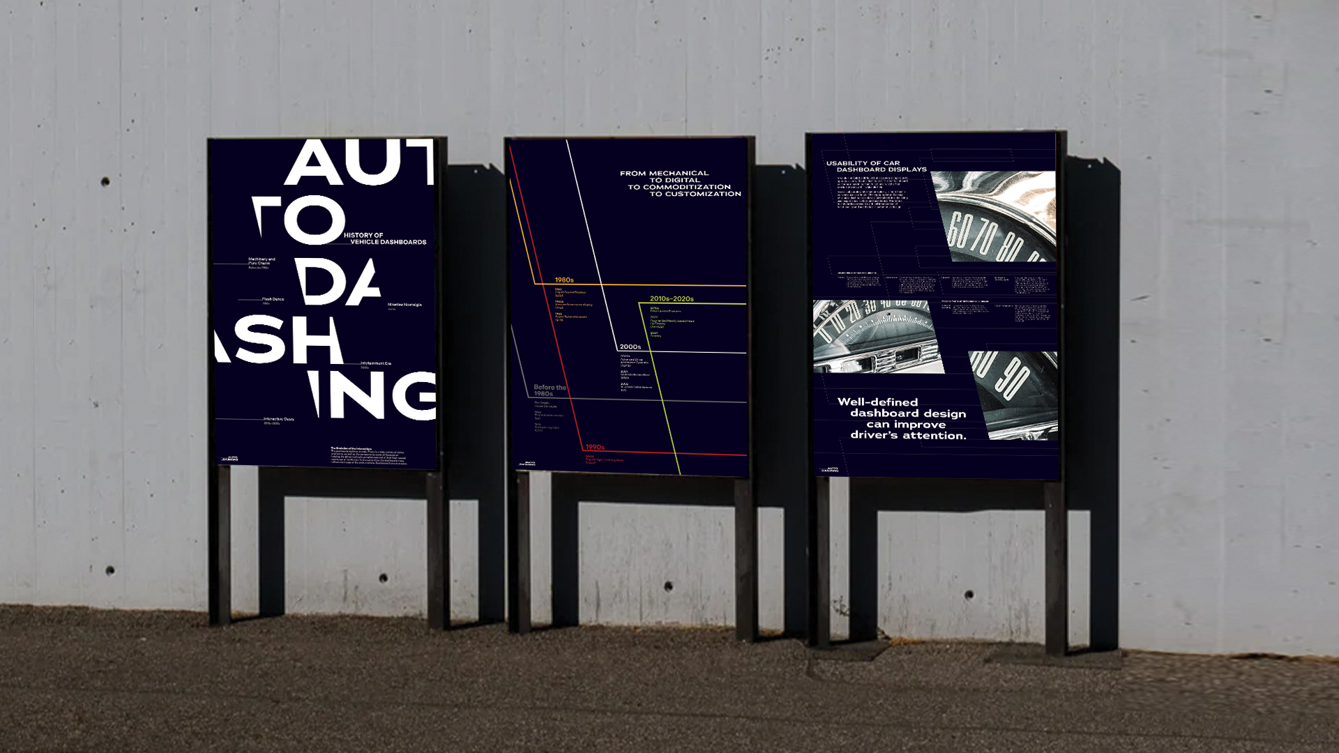 Rather than prescribing a single template for the “perfect” dashboard, Auto Dashing advocates understanding the principles of typography, hierarchy, and accessibility. Through different experimental data, we could observe how typography affects the driving experience. From the feature and form of different typefaces to the reaction time under a fast environment.