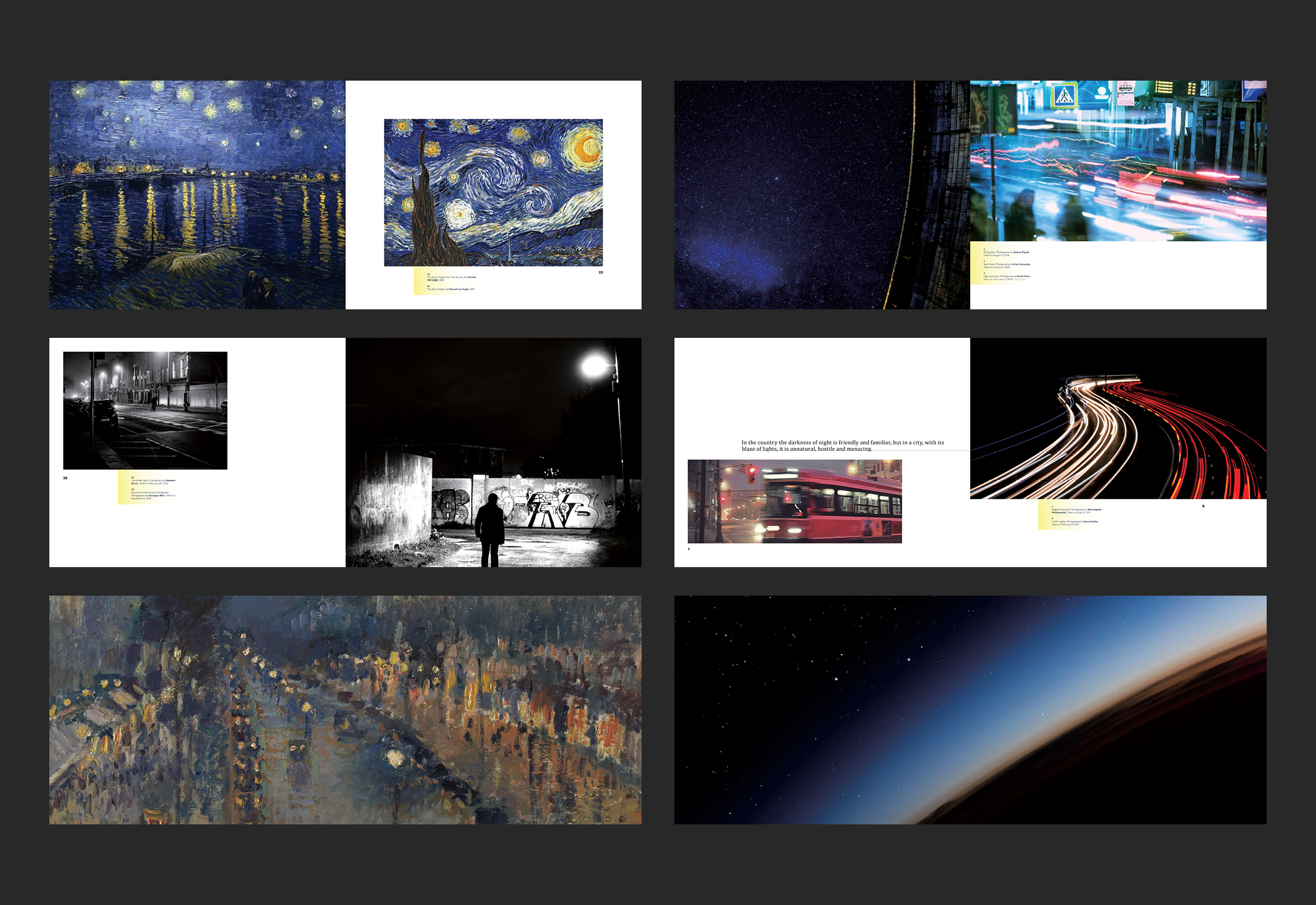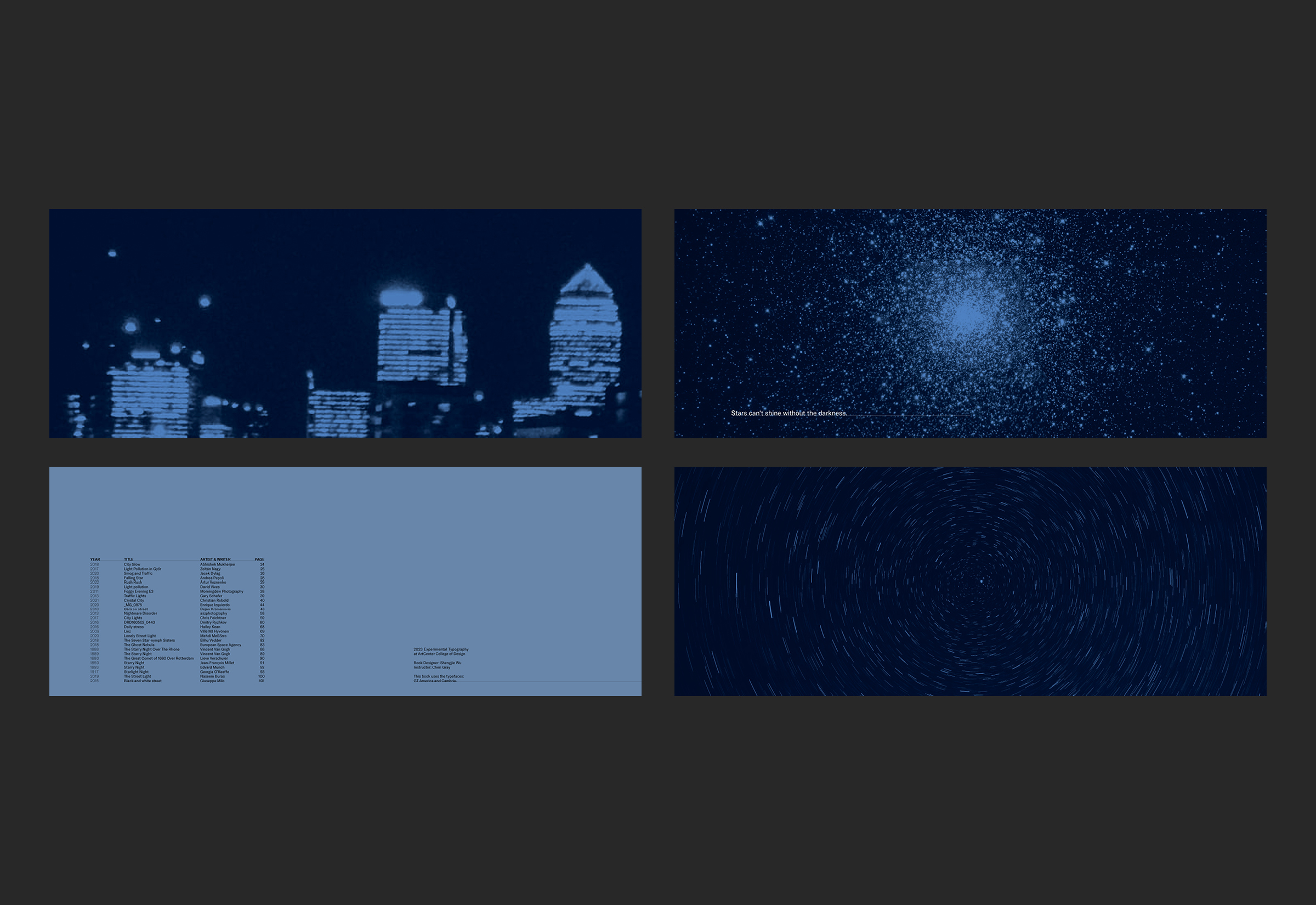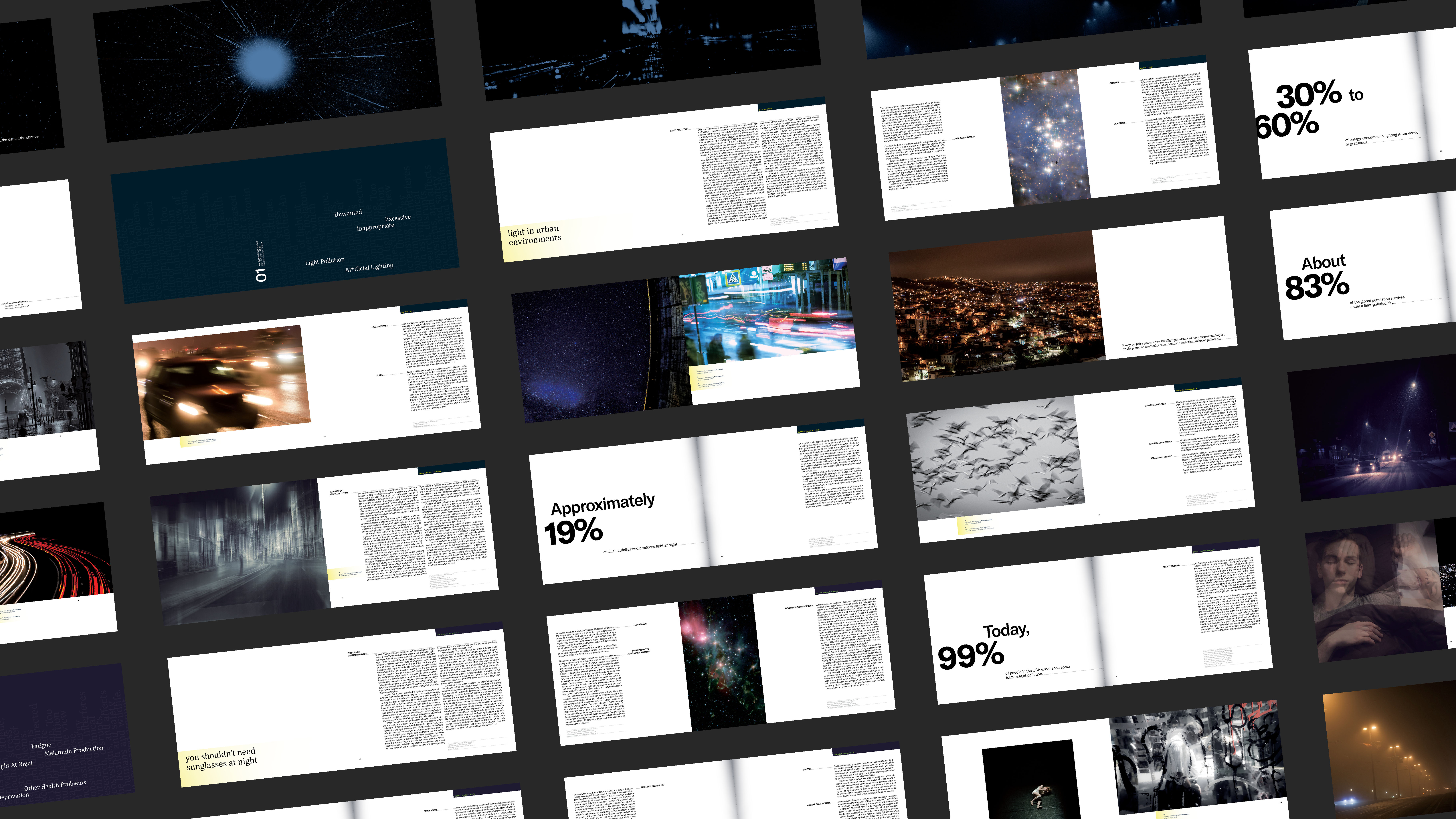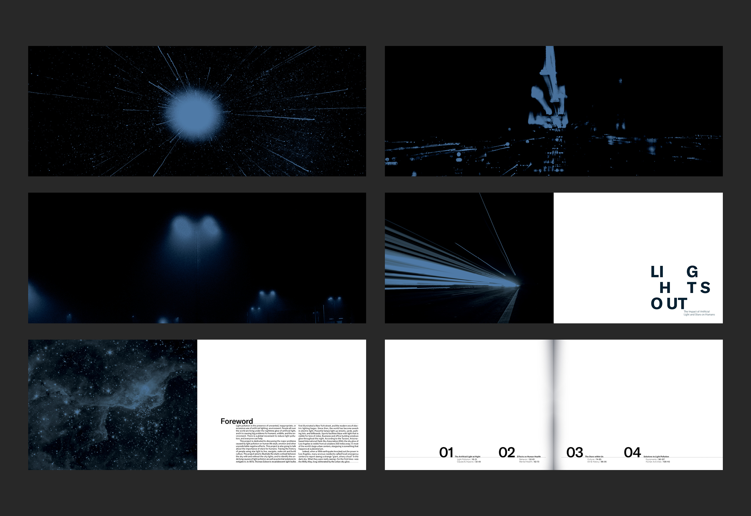 Lights Out is a book about the impact of light pollution on humans from the perspective of history, daily life, and behavior. I always feel relaxed when I see the stars in the endless night. But in the city, due to light pollution, I have no chance to see the stars. Sleep quality is also often ruined by the light that shines into a room, causing me to always feel helpless and stressed. This led me to design a book to help people become aware of the negative effects of light pollution.