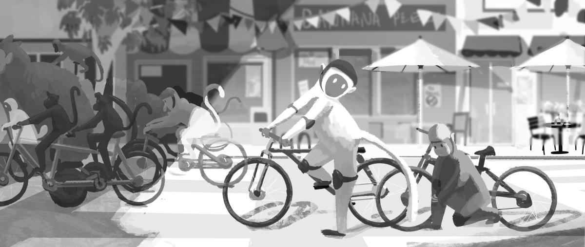 Graduates Select DepartmentBrand Design & StrategyCreative DirectionEntertainment DesignFilmFine ArtFurniture, Lighting and FixturesGraduate ArtGraduate FilmGraduate Graphic DesignGraduate Interaction DesignGraduate Spatial Experience DesignGraphic DesignIllustrationIndustrial DesignInteraction DesignMedia Design PracticesPhotography and ImagingProduct DesignSpatial Experience DesignTransportation DesignTransportation Systems and Design Back to Projects Shivansh Sharma BFA in Illustration - Entertainment Arts — Illustration monkey bicycle story Developed a story about two monkey brothers participating in a bicycle race Image Image Image Image Image Image
