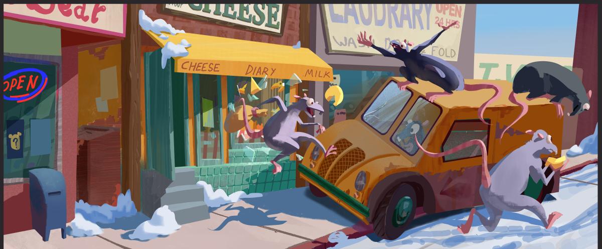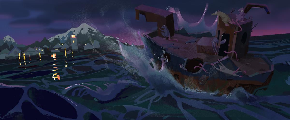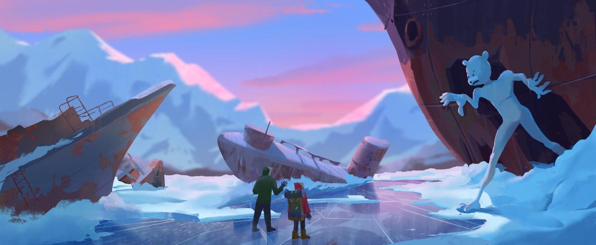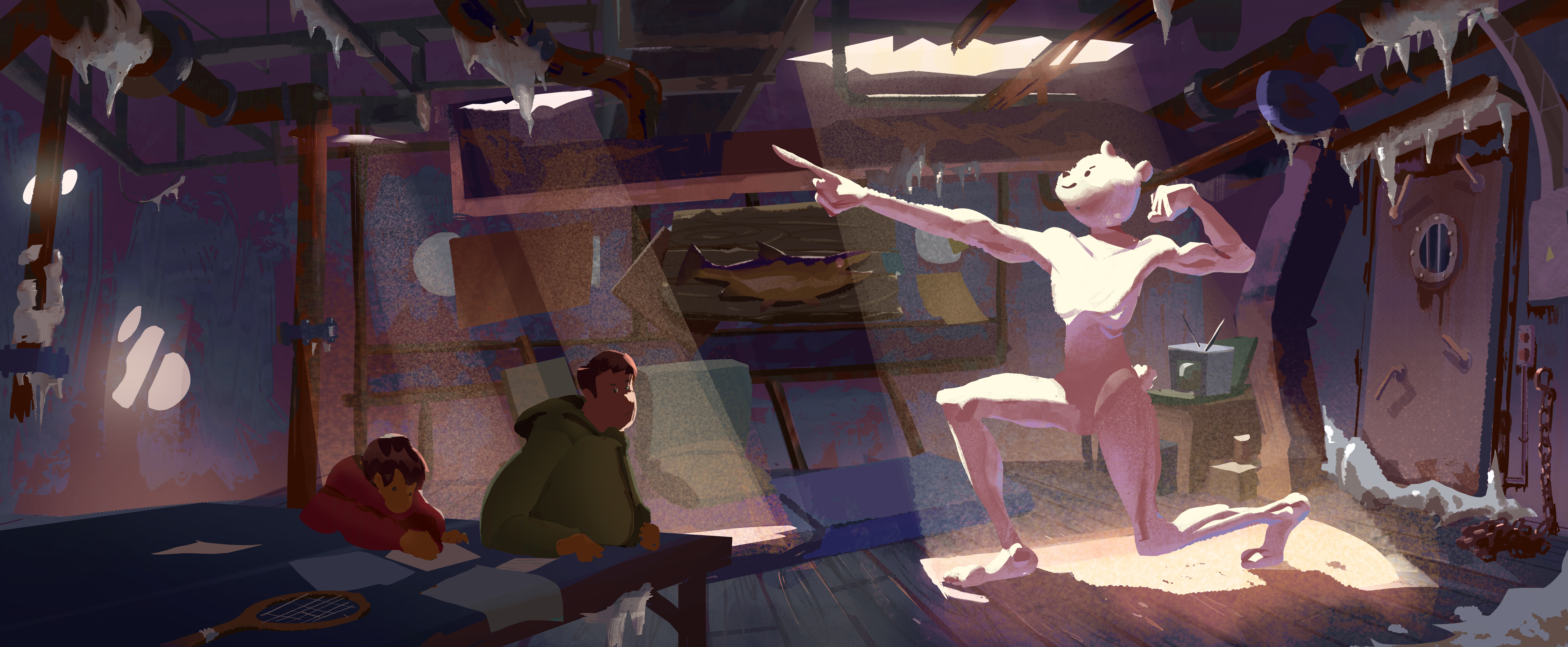 The story is about a daughter and her father who go on a quest to find the polar bear with human hands to save their town from five foot tall rats.