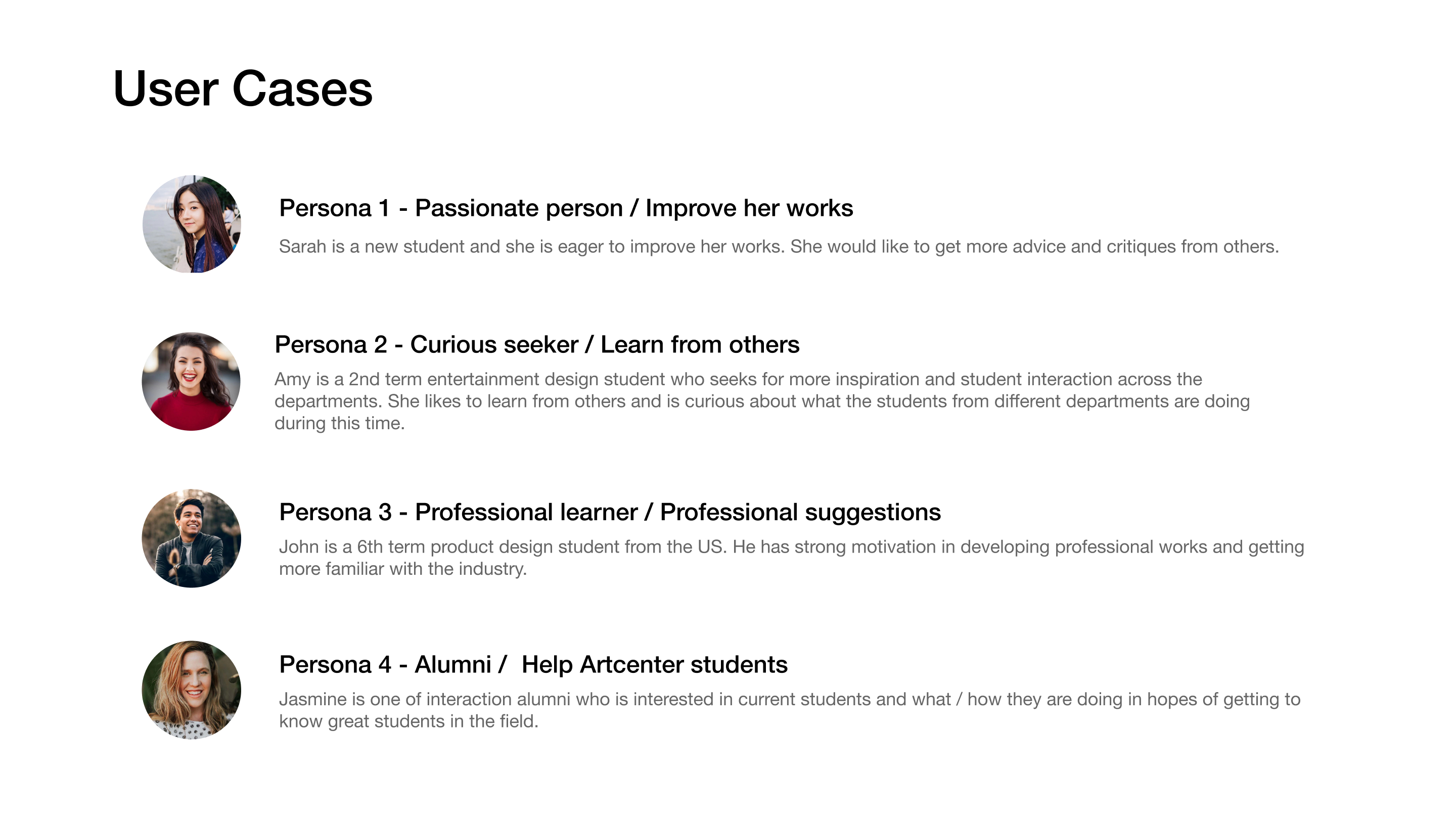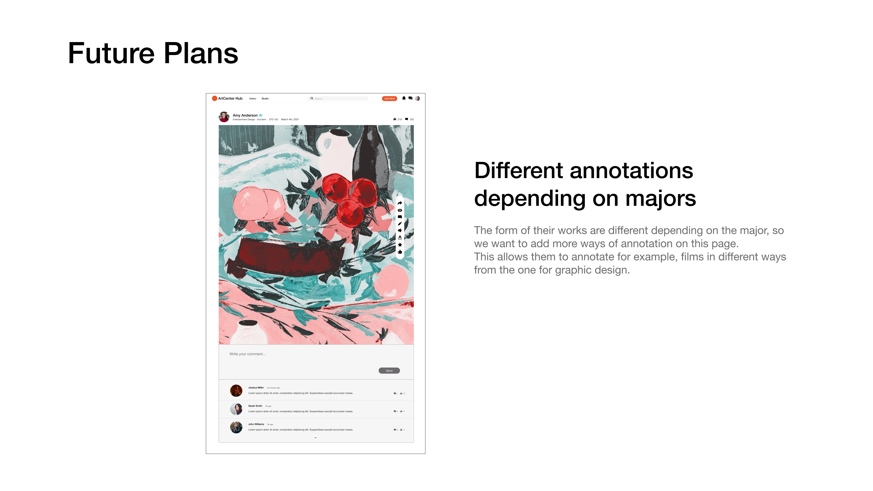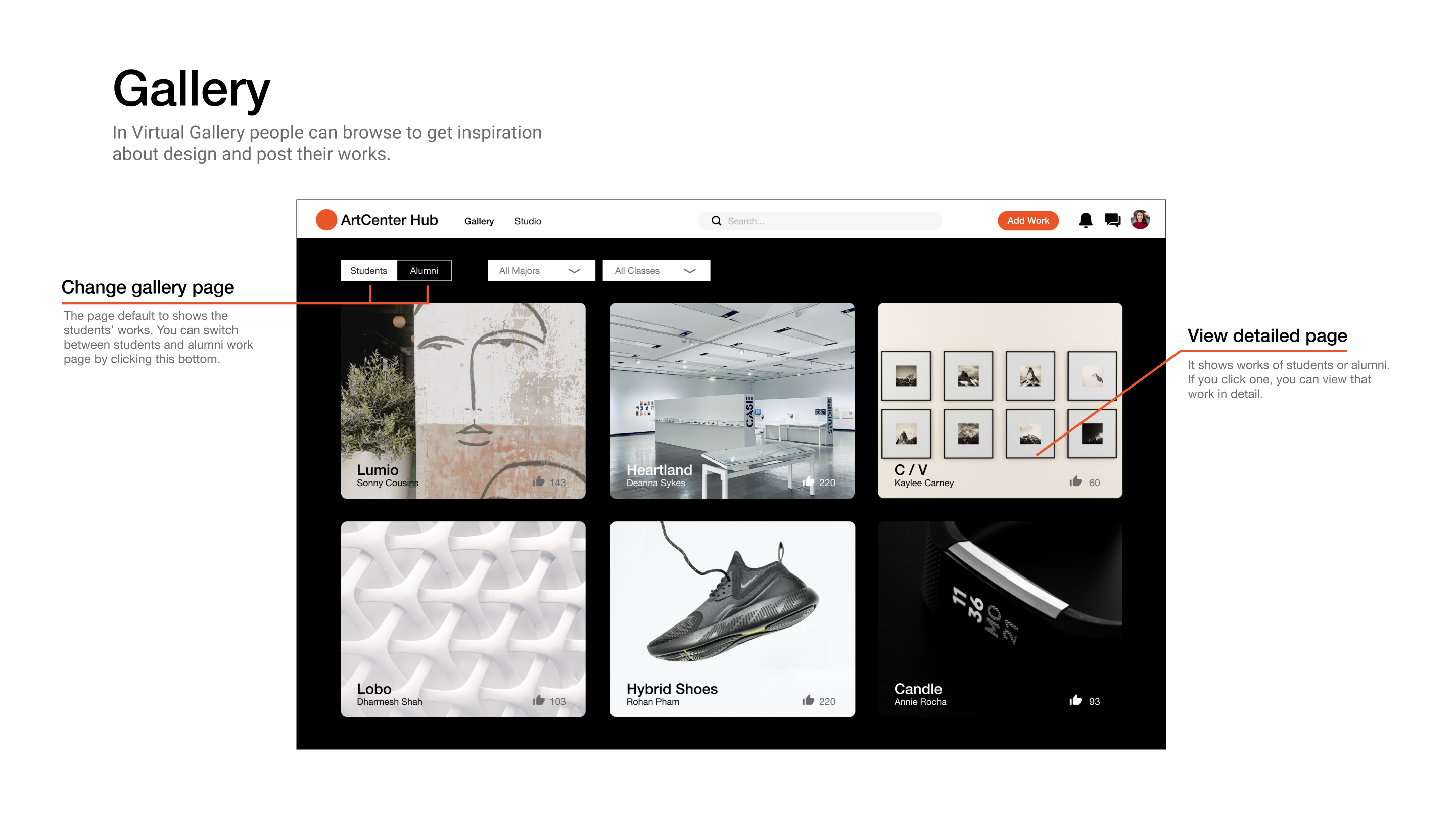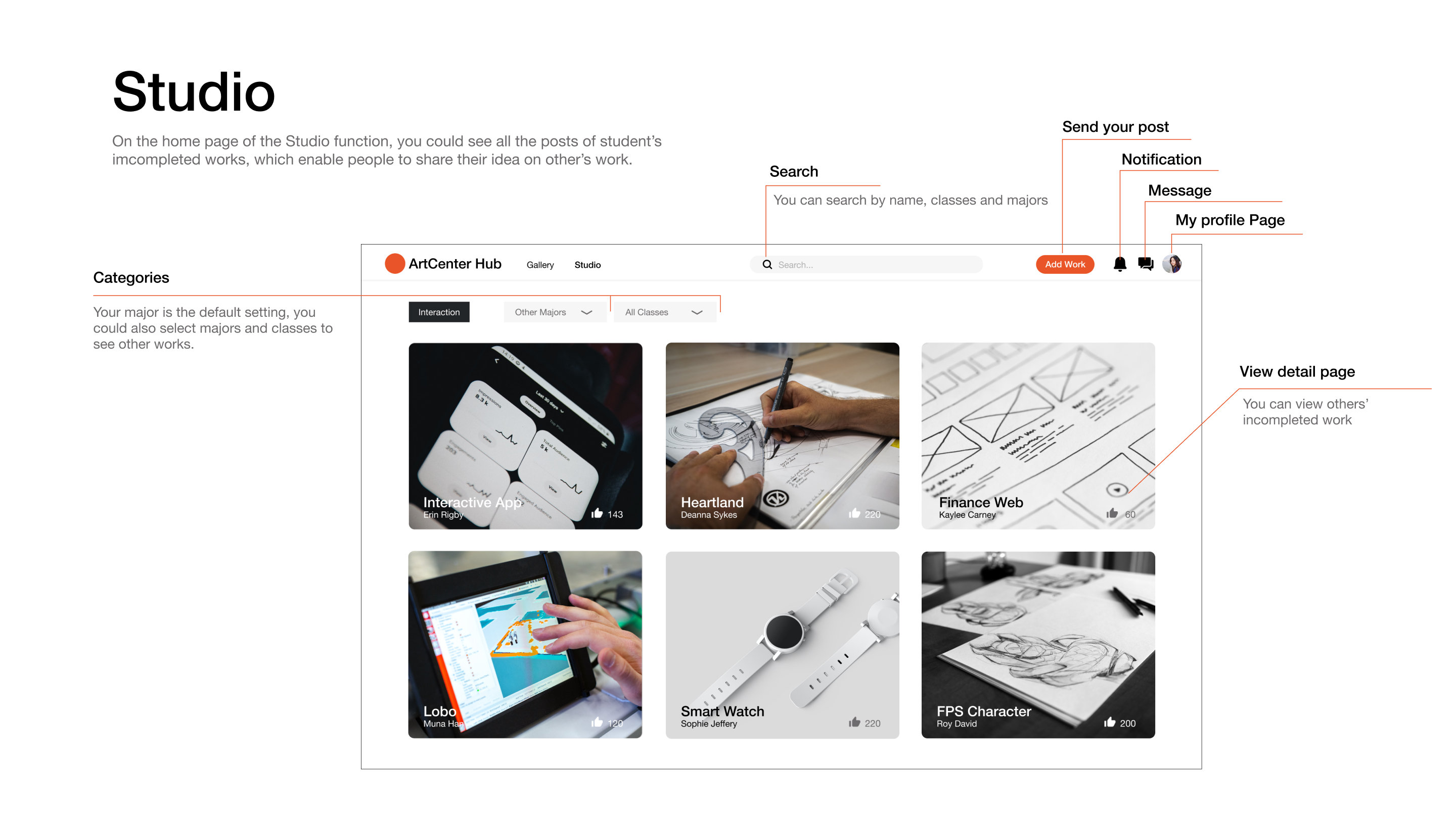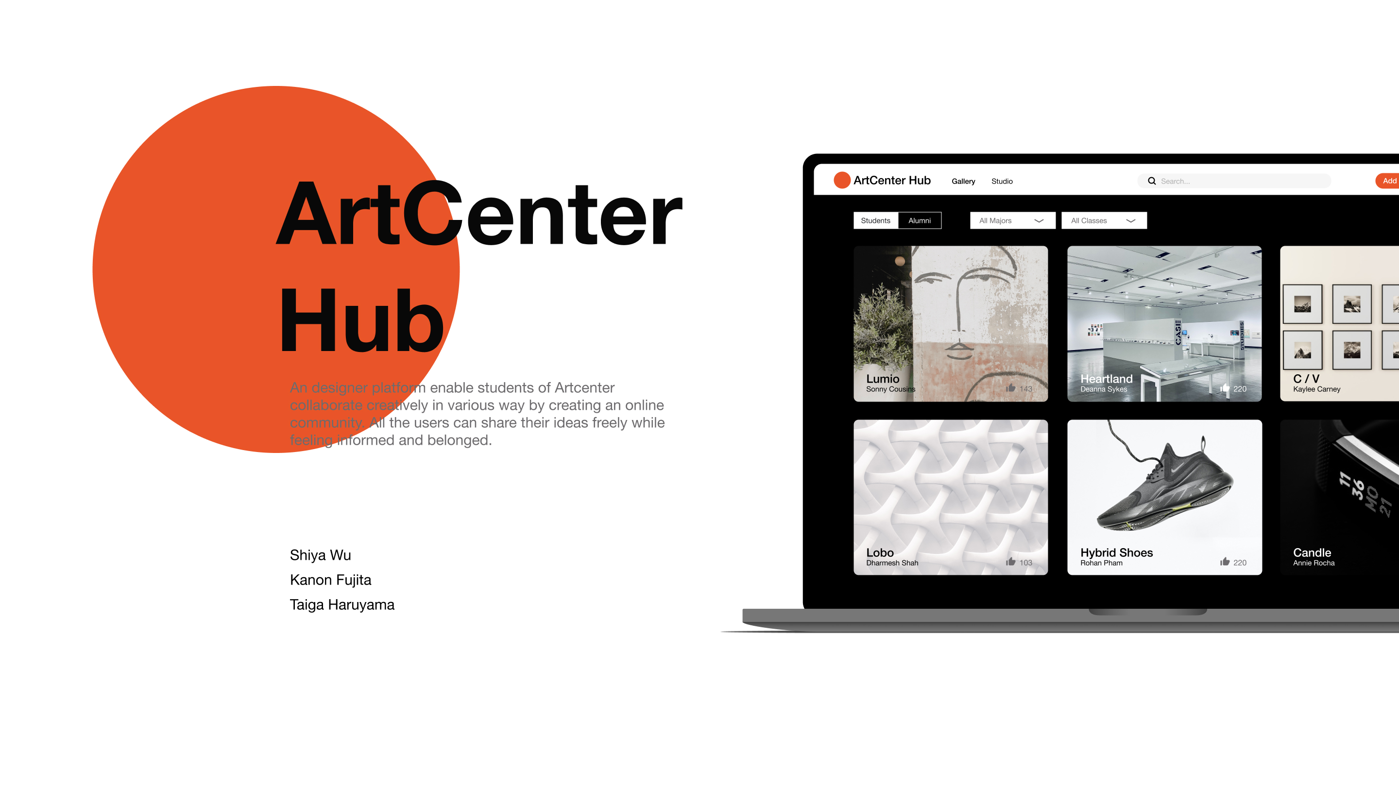 A designer platform enable students of Artcenter collaborate creatively in various way by creating an online community. All the users can share their ideas freely while feeling informed and belonged.