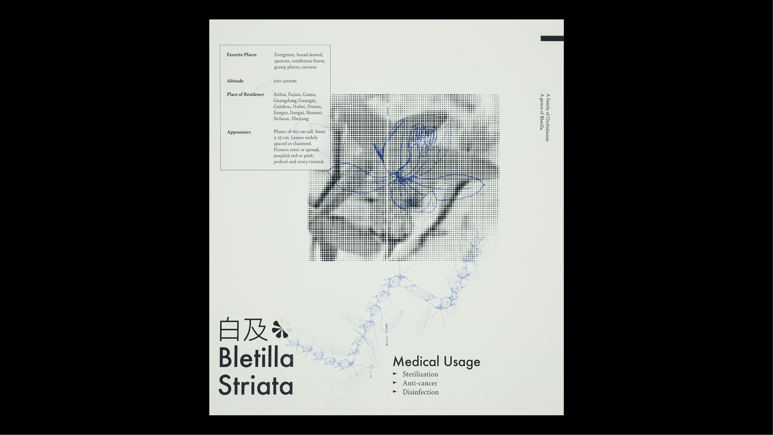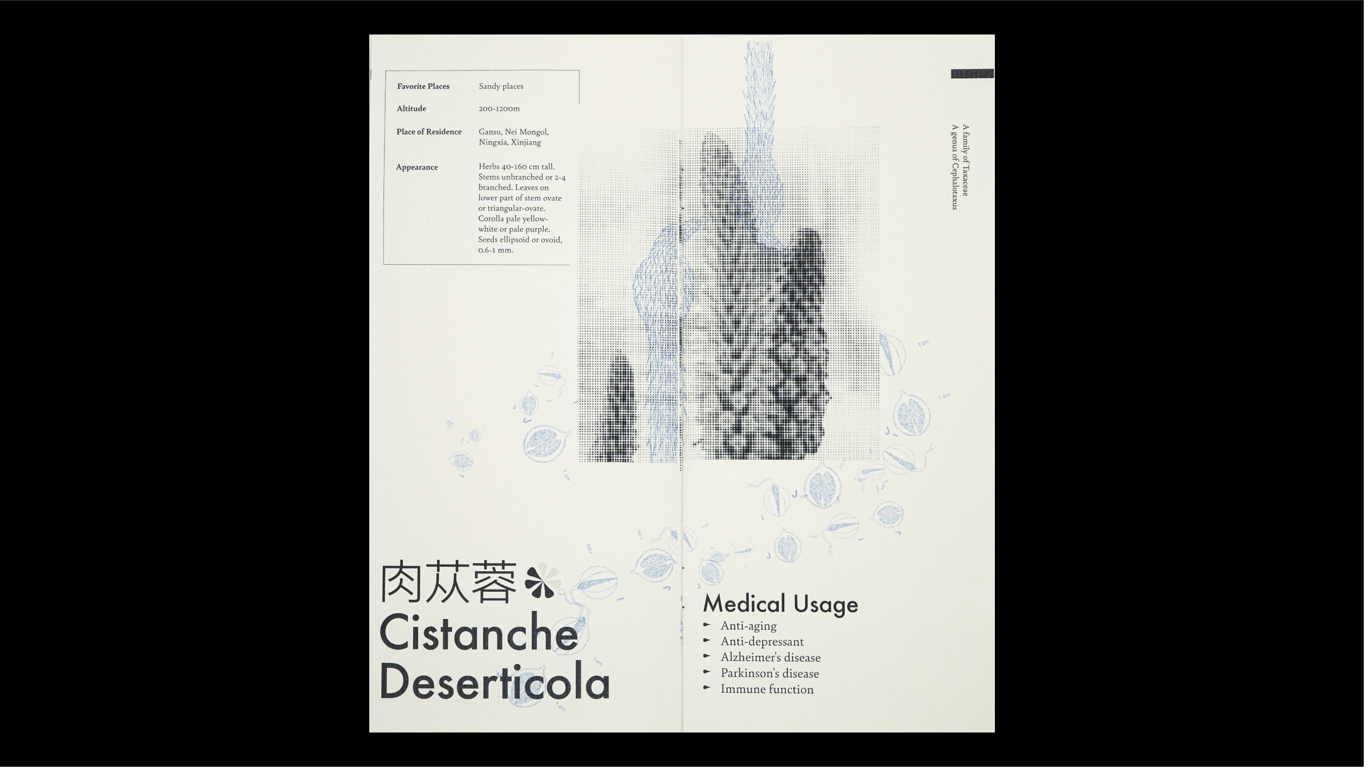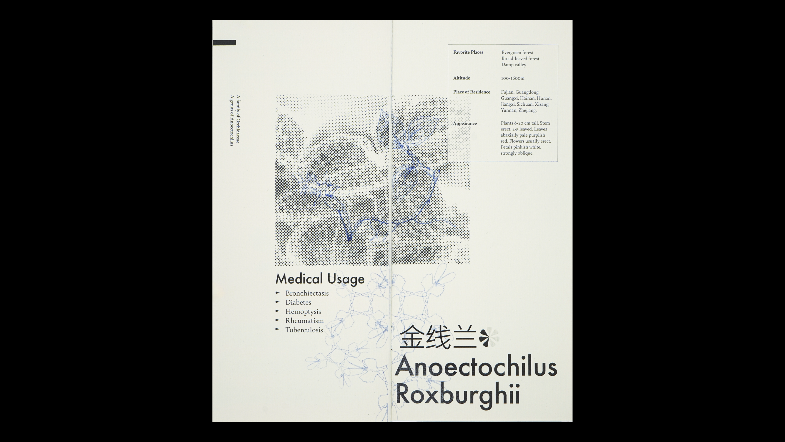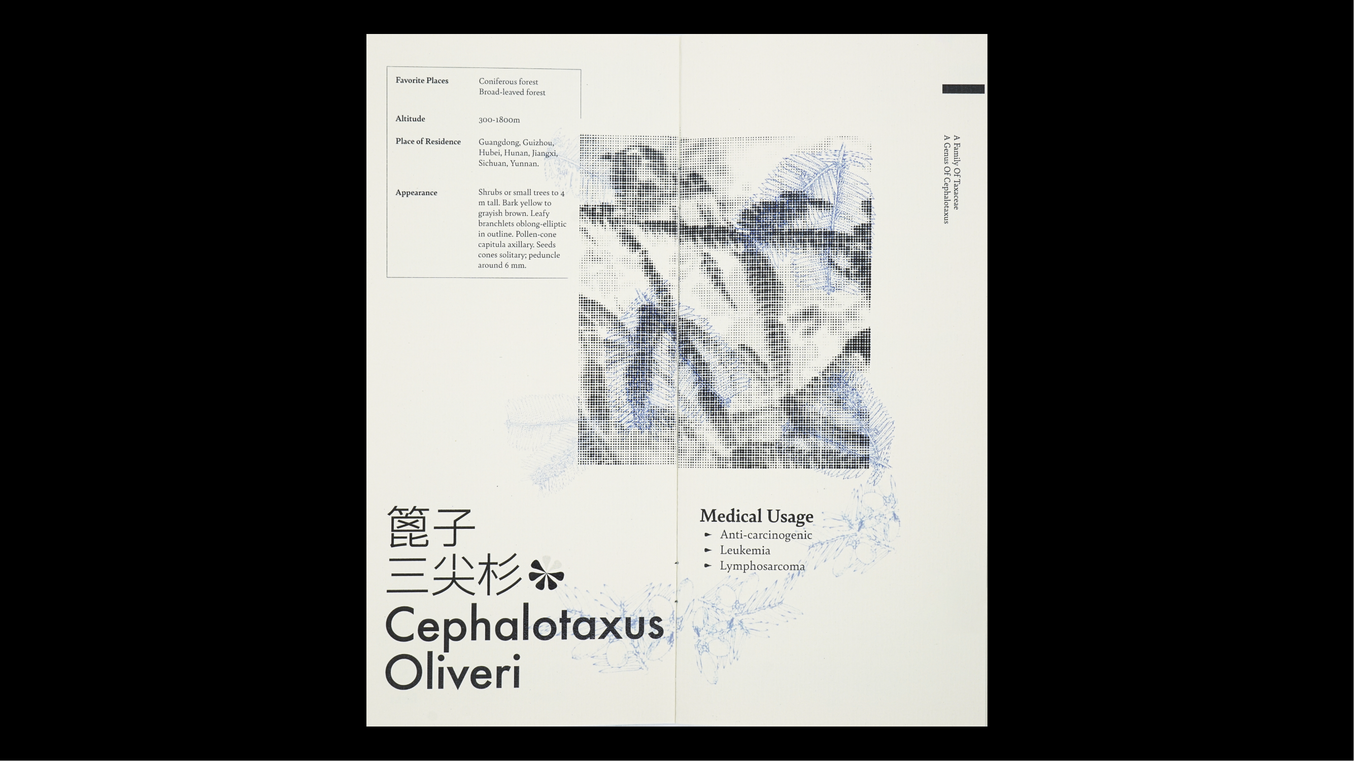 The brochure was designed as an audience brochure for one of my video projects about environmental concerns and issues in my hometown. This brochure introduces six endangered medical plants in China that are highly related to our daily lives, and attempts to build a symbiotic connection between plants and humans.