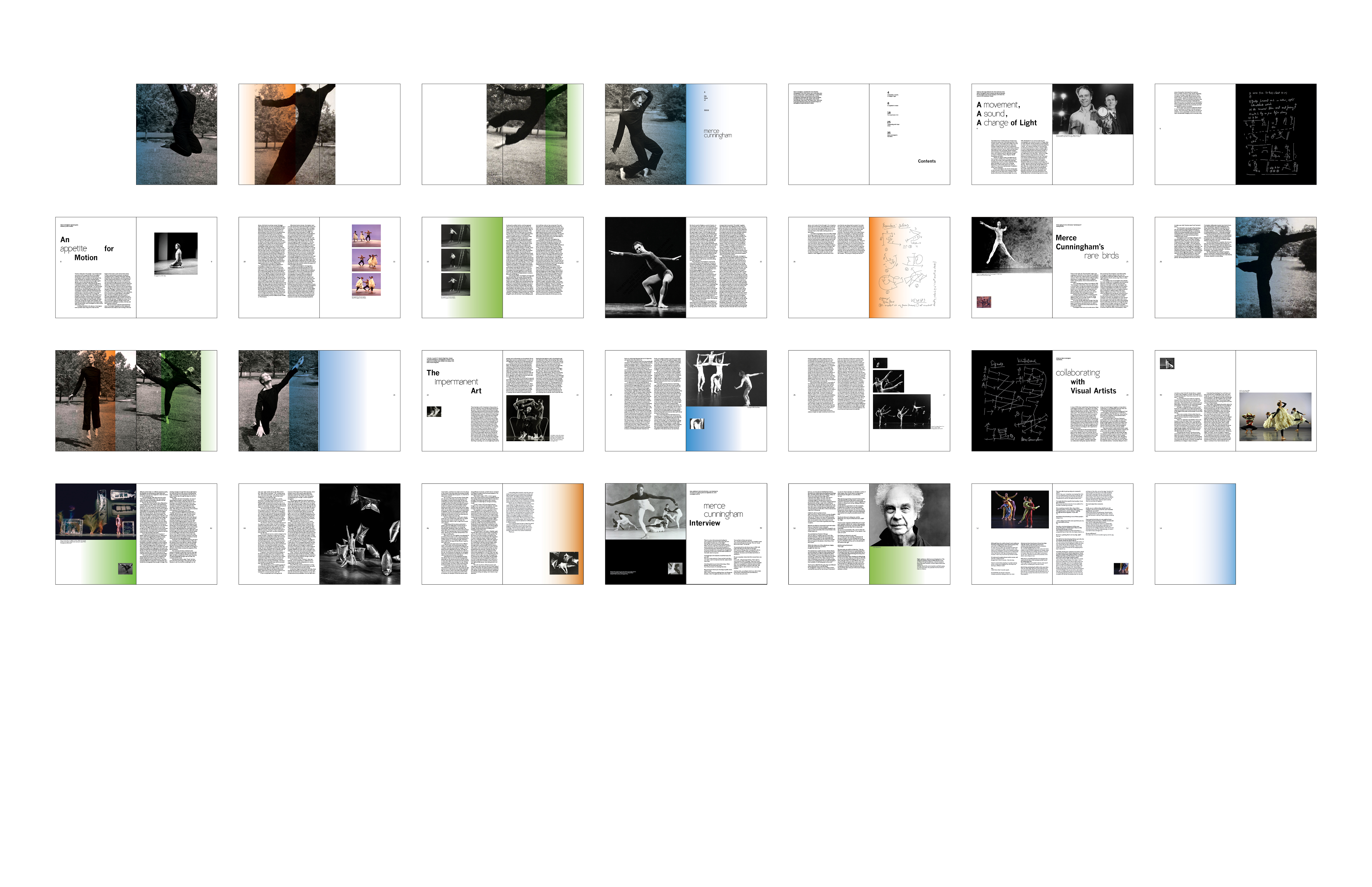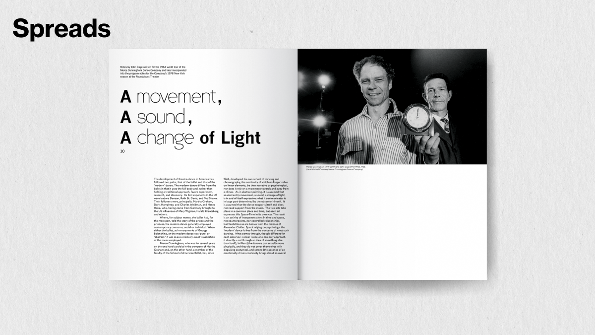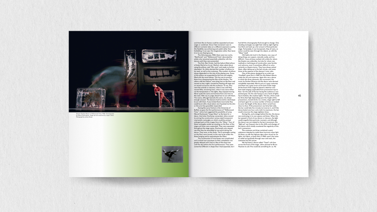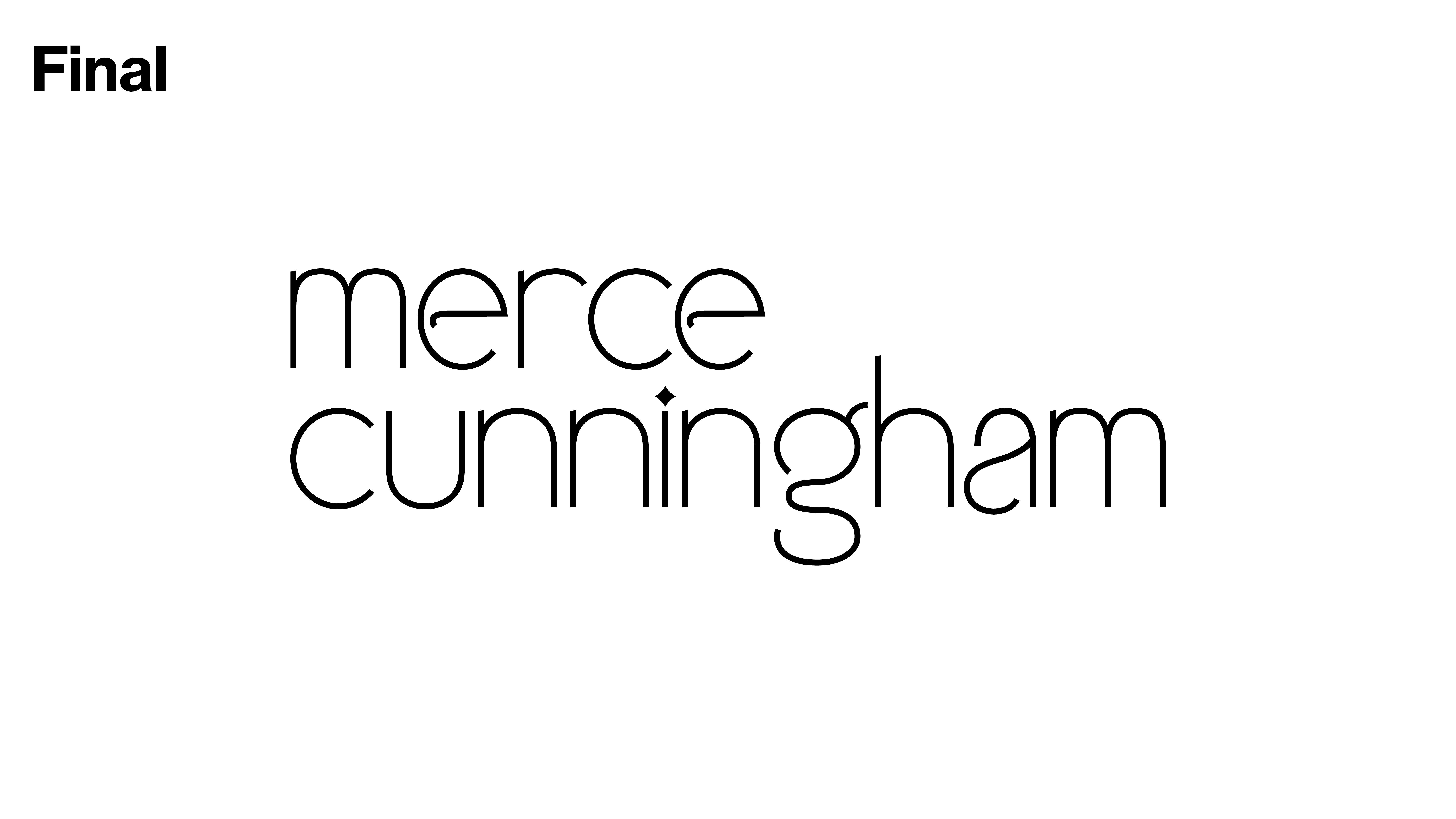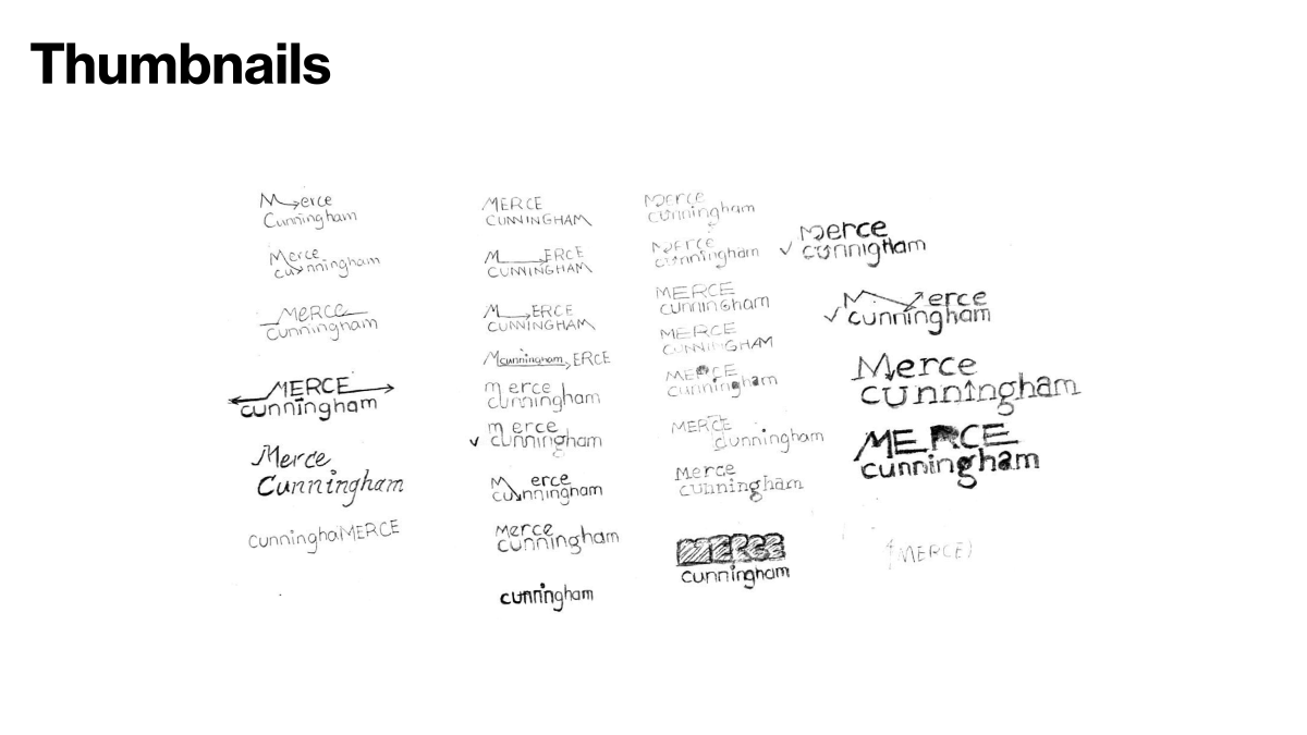 The final wordmark has an elegant double counter letter "g", and the strokes of "e", "g", and "a" are disconnected from the counter. It demonstrates both the elegance and liveliness, as well as the innovative and avant-garde nature of Merce Cunningham's dance.