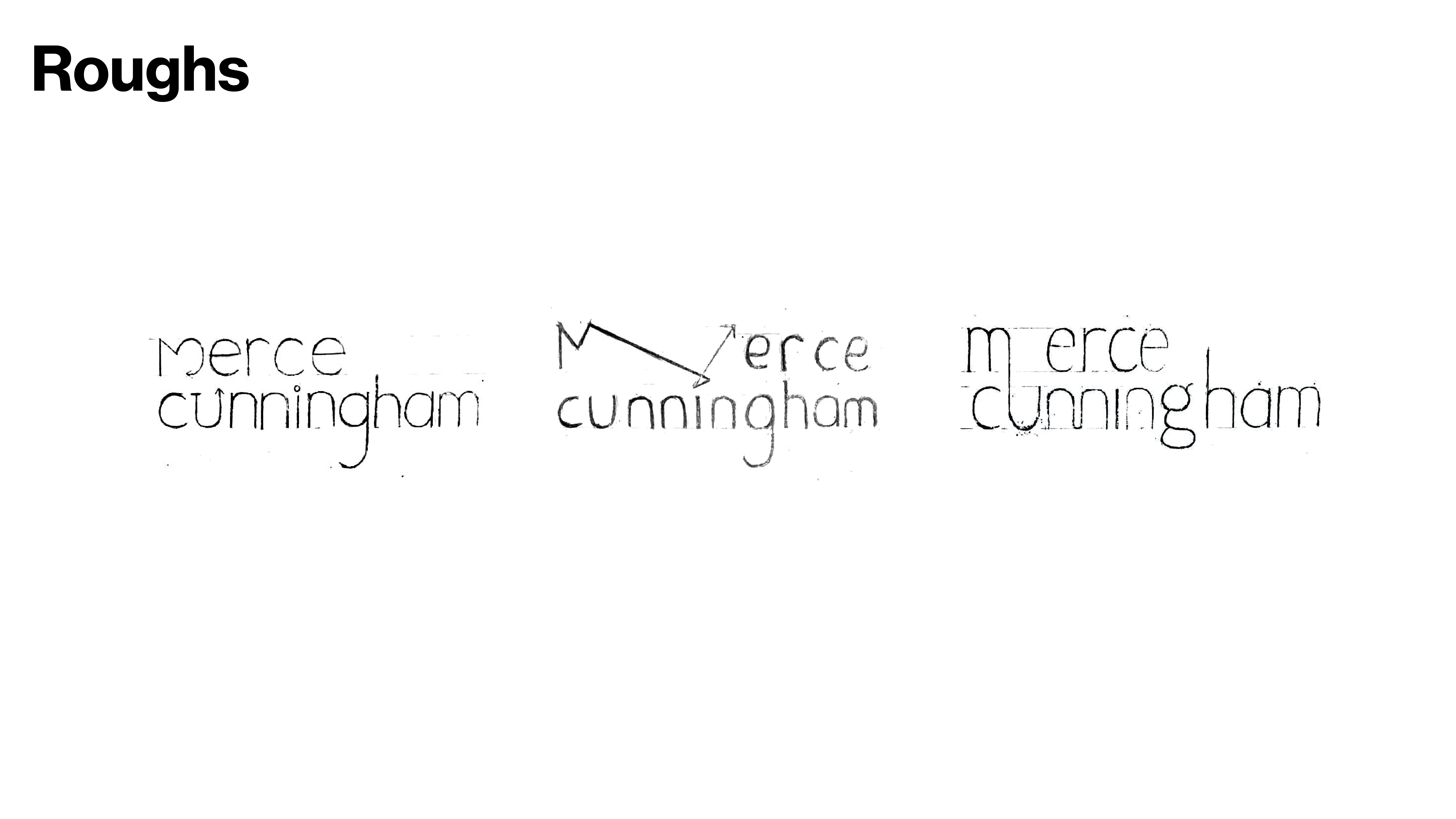 The purpose of the logo design is to showcase both avant-garde dance and traditional ballet in Merce Cunningham. The idea is to have arrows coming from Merce Cunningham's handwriting on the choreography script.