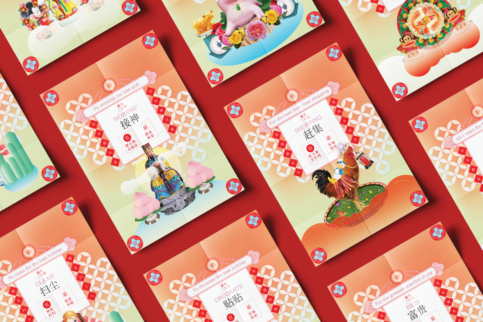 New Year Lucky Box is a self-developed project about Chinese culture, especially during the most important holiday of the year-the Chinese New Year. The elements come from old story tale characters and combine with illustrations. The design products of this project include a brand logo and materials such as red pockets, tape, cards, posters, stickers, and a calendar.