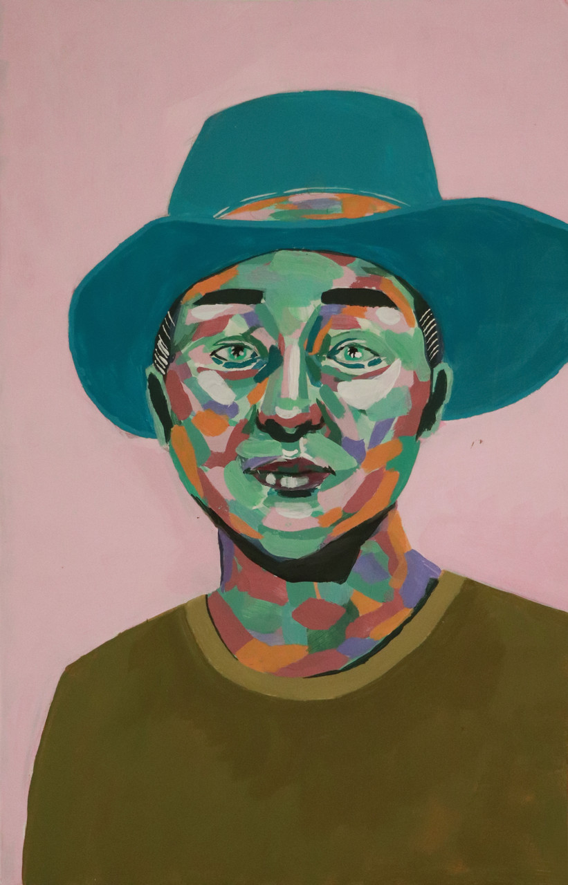 "Roots" Acrylic paint, 20x15, 2019 Portrait of my father in hues that describe him.