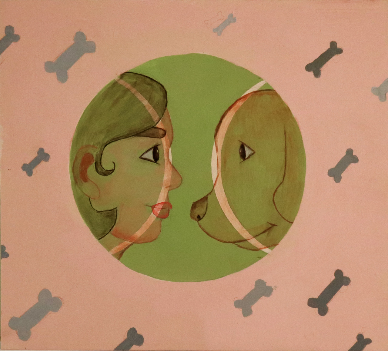 "You and Me" Acrylic paint, 15x15, 2019 I wanted to express the connection between the dog and the owner through the ball, which is usually dogs' favorite toy.