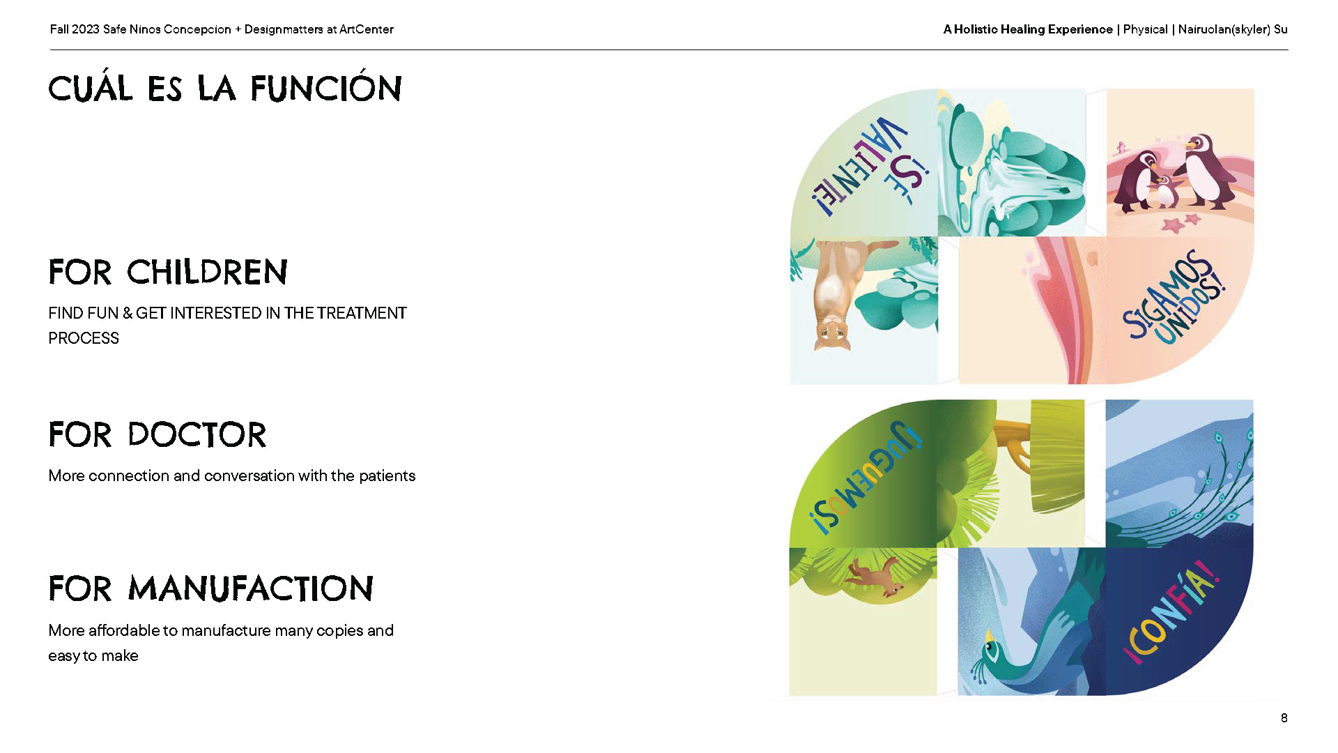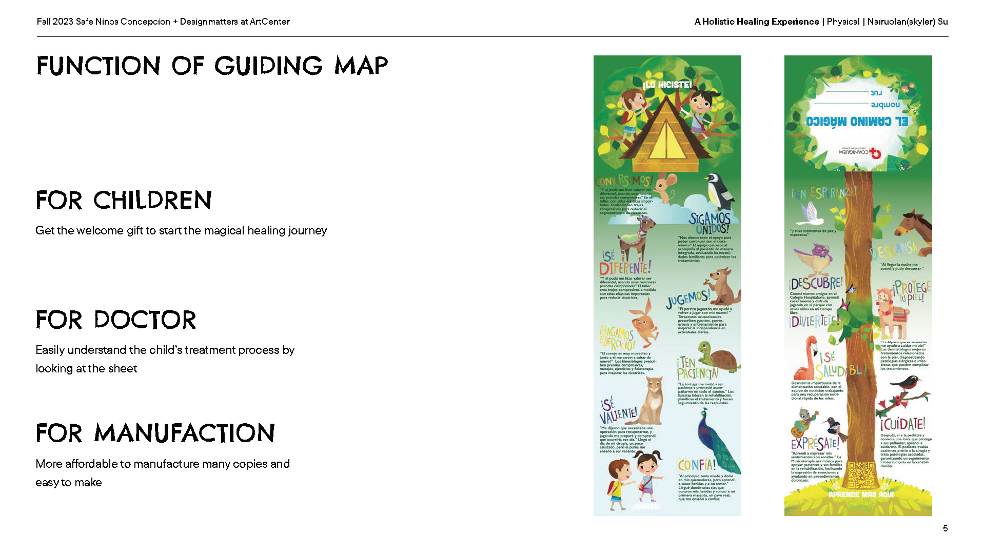 A design initiative focused on enhancing the treatment experience for pediatric burn patients at Coaniquem by incorporating culturally relevant storytelling, interactive graphics, and therapeutic tools to connect patients and families, reducing stress and providing emotional support.