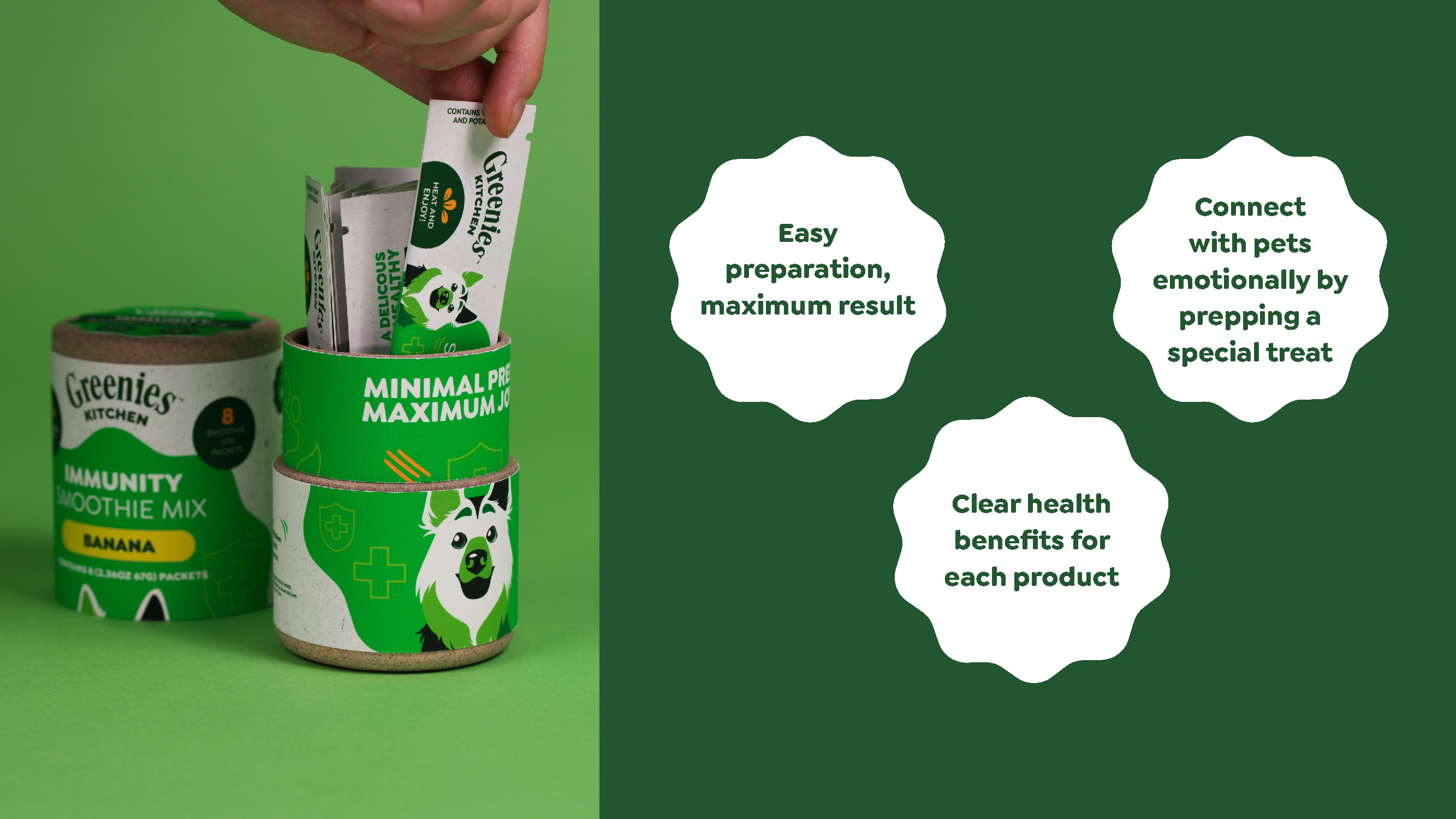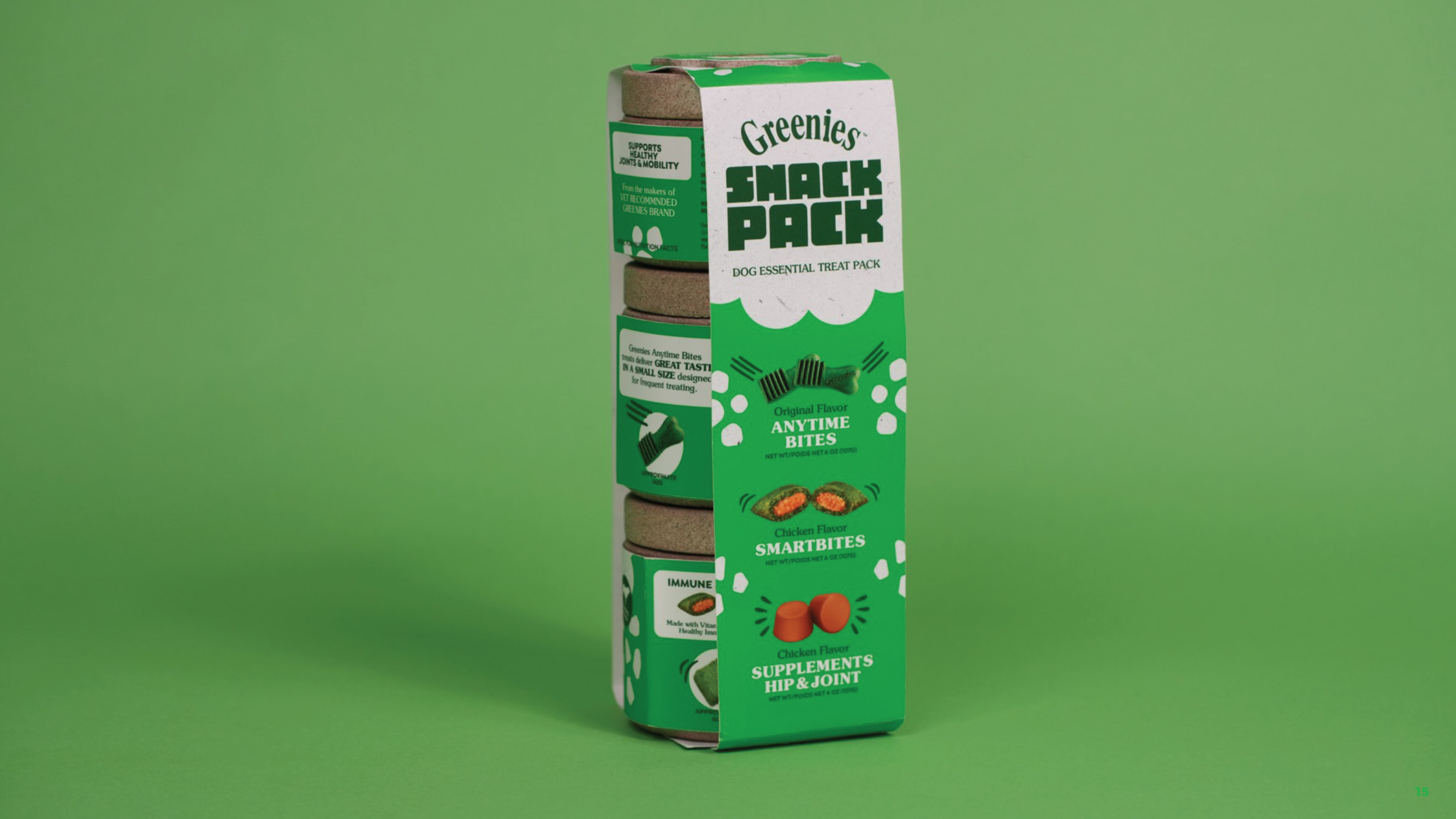 A set of innovative product and packaging solutions that helps Greenies to create convenient and engaging snacking experiences for dogs, both at home and on the go.