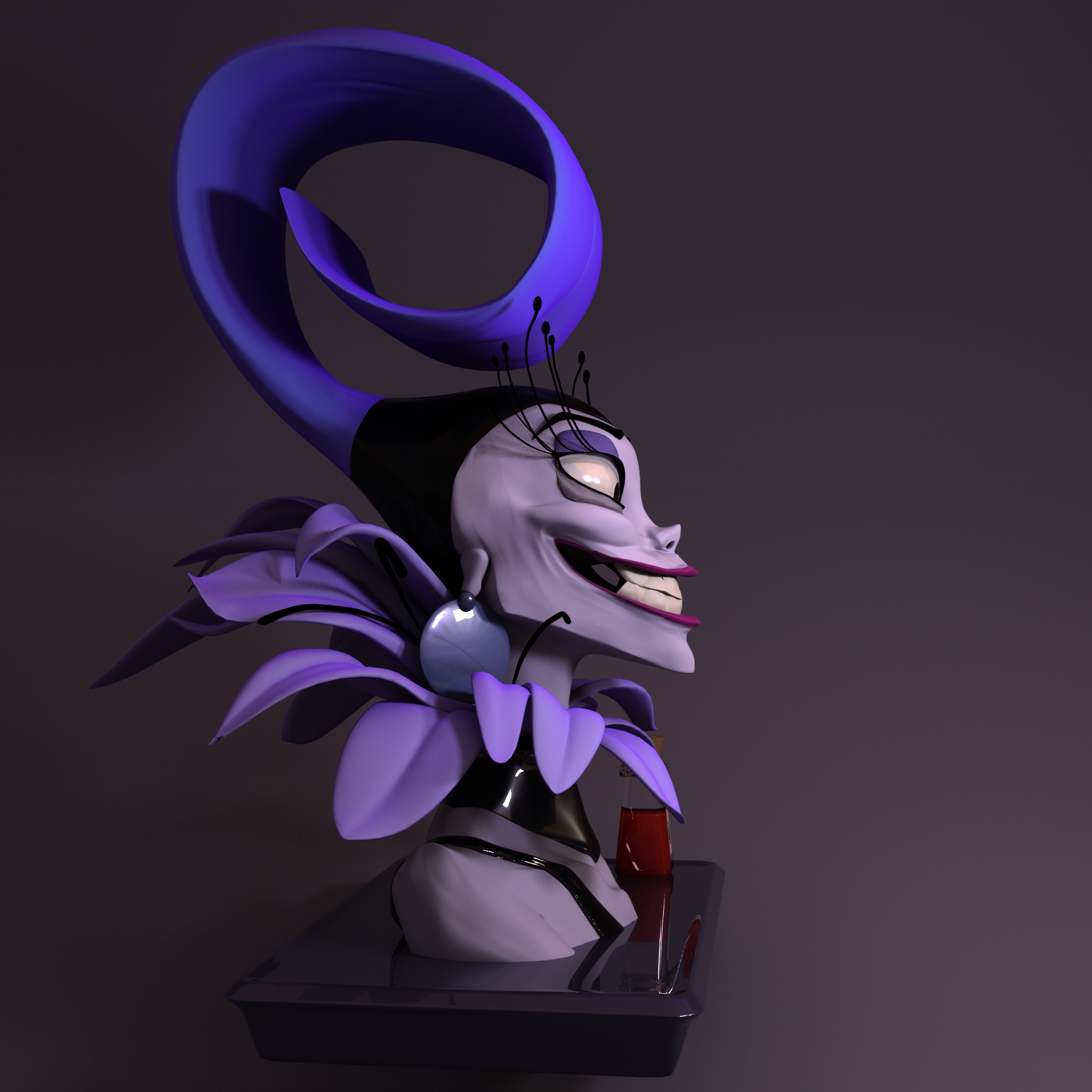My first ever character face model, this is a bust to recreate the iconic character Yzma in 3D form, modeled from one single cube in Maya.