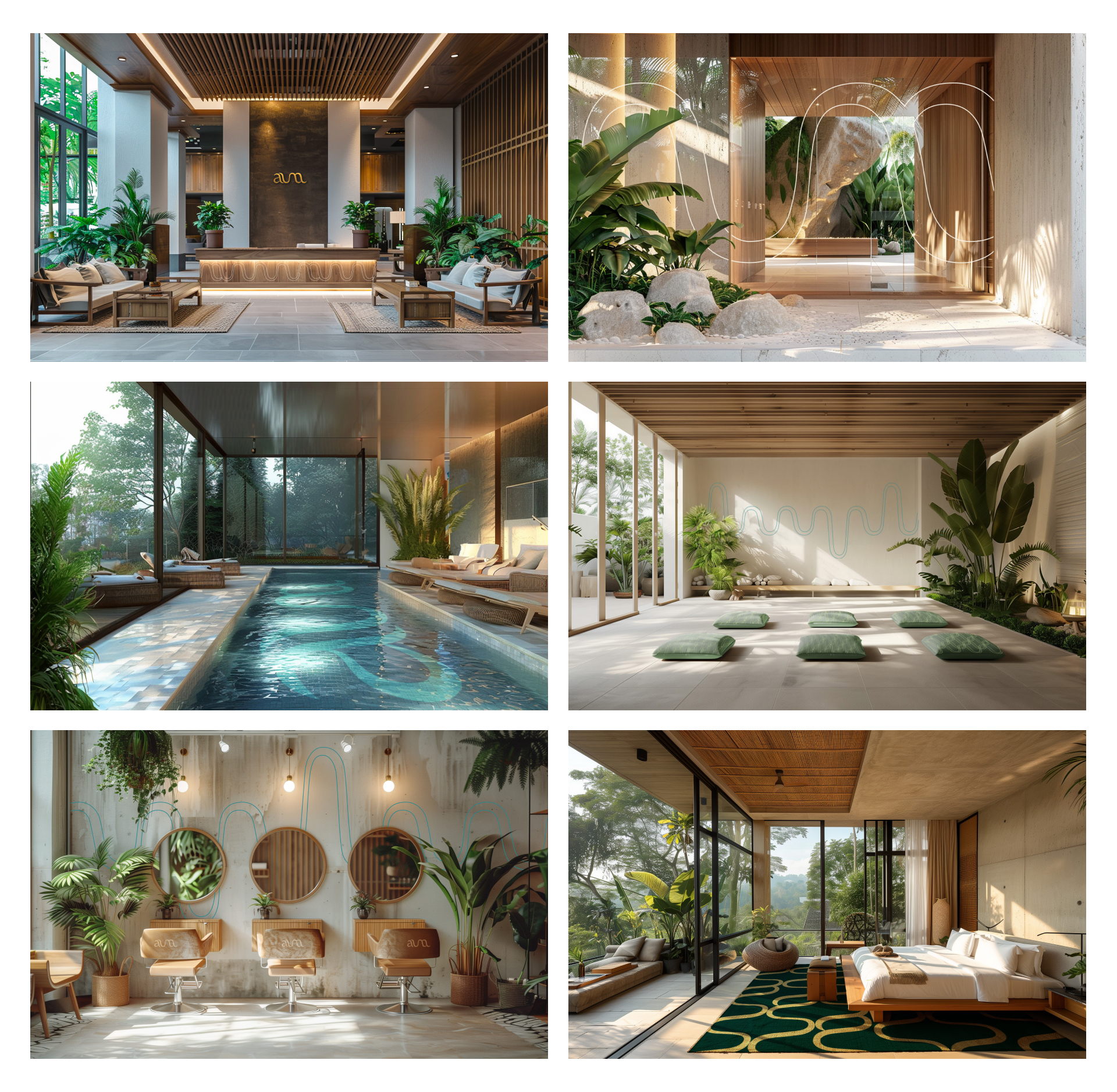 Aum is a hypothetical hospitality brand for Aveda. In harmony with Aveda's commitment to a holistic wellness philosophy, Aum presents an immersive urban sanctuary where guests can revitalize themselves through sensorial self-care experiences. Aum empowers individuals to embark on a transformative cycle of self-discovery and pause from busy city life. The brand name "Aum" is derived from the sacred syllables of "Om," representing the meditative original vibration and the unity of existence.