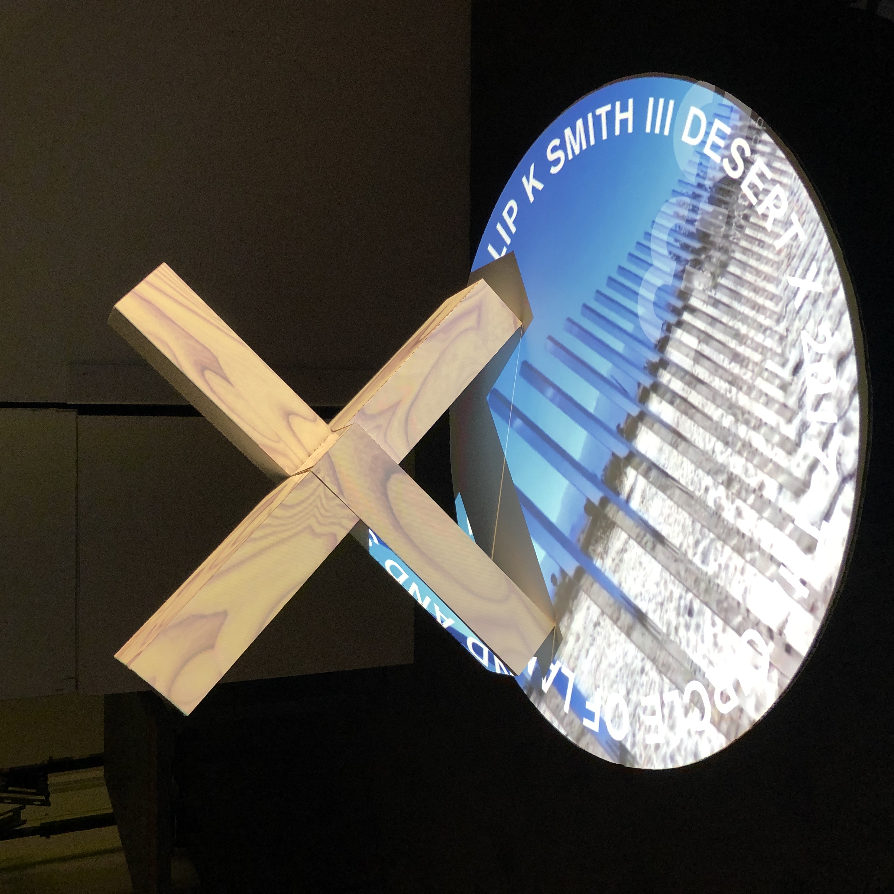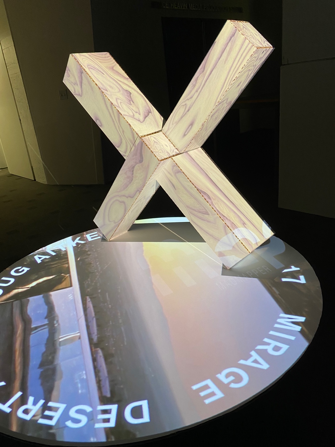 Expand my Comm3 project into installation art. I tried introducing 7 different art installation works in the Desert X Exhibition held in Coachella valley on the circular surface and placing an X-shaped form on top of it.