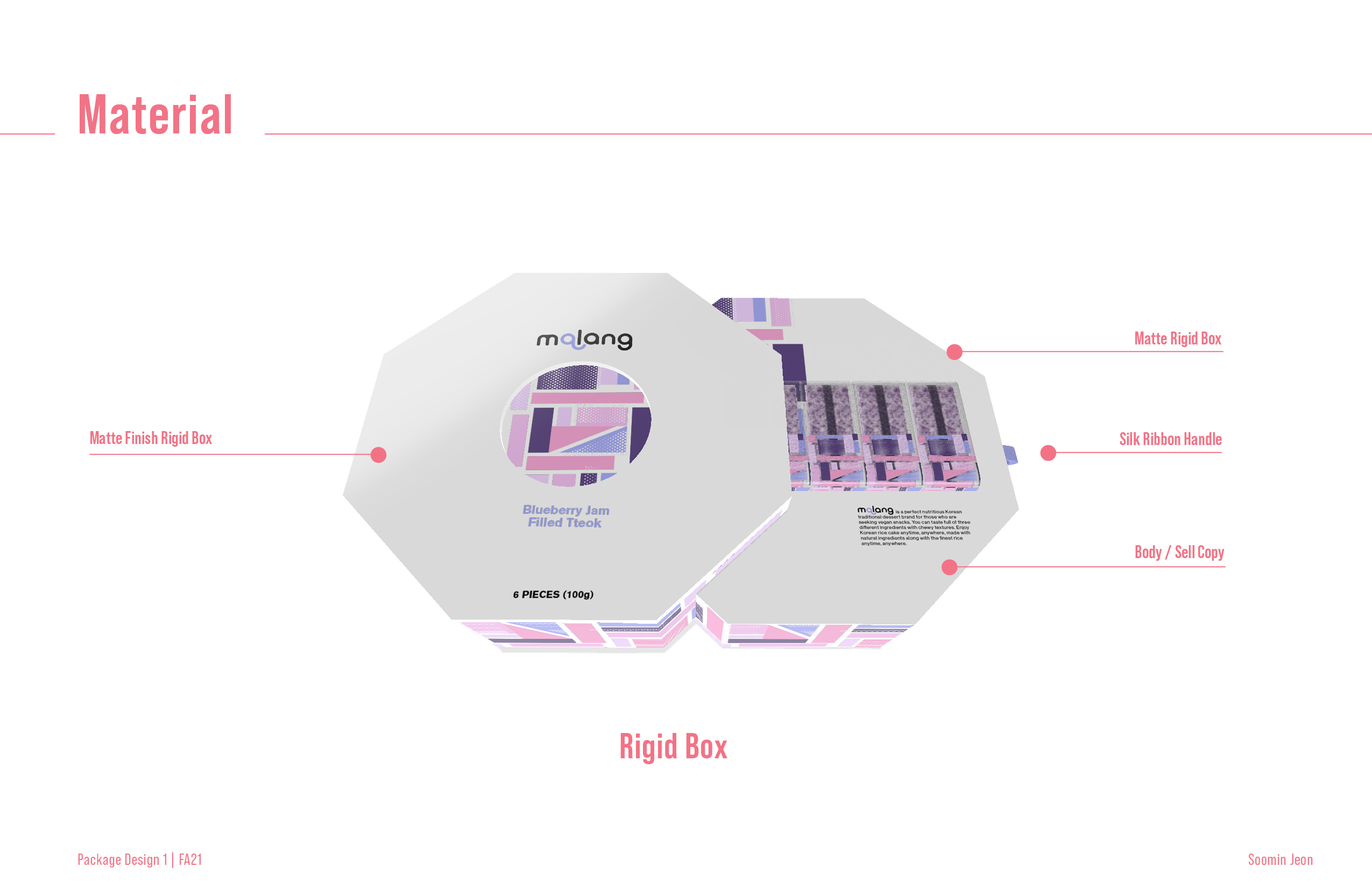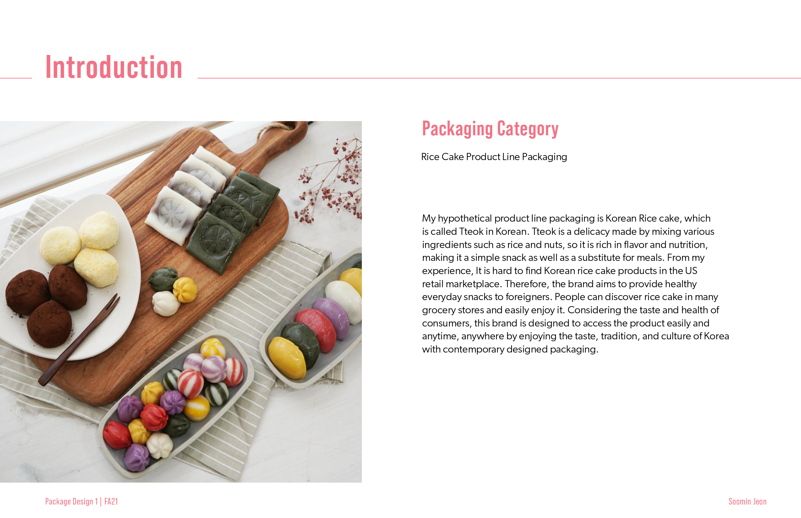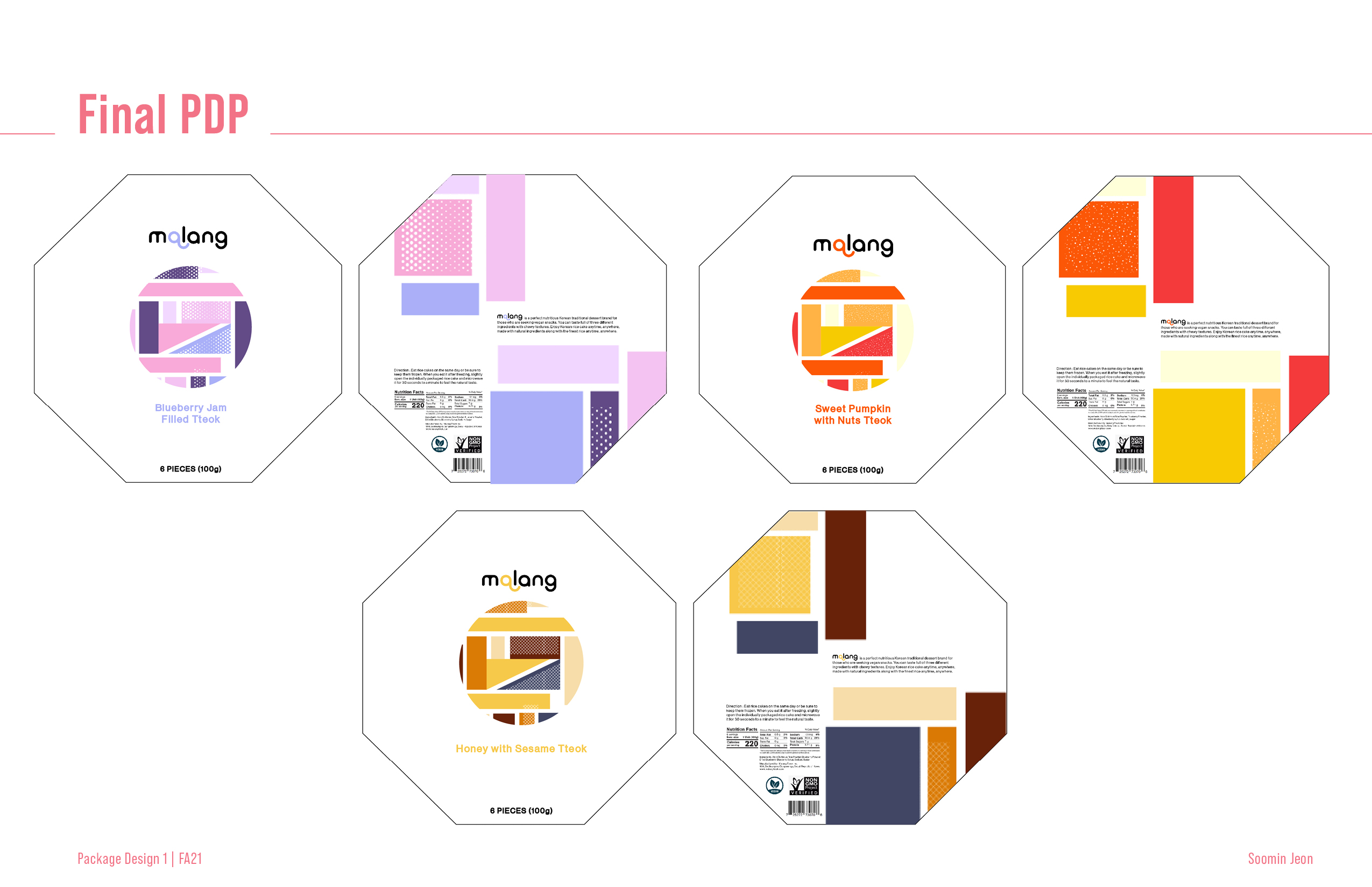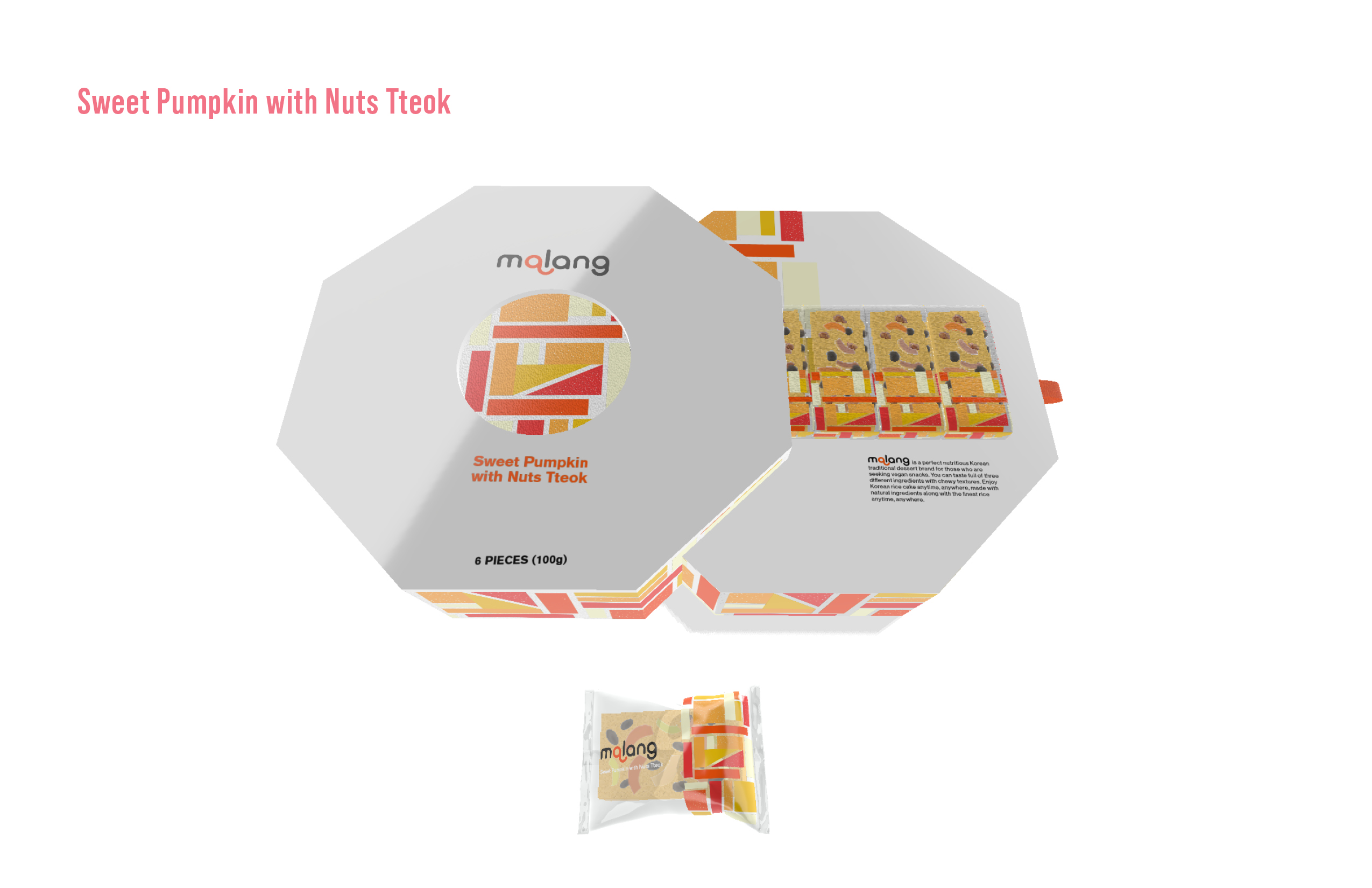 Malang is a hypothetical Korean rice cake brand, which can be the best snack for vegans. Malang means "soft" in Korean which can represent the texture of rice cake very well. People can approach healthy snacks in regular grocery markets in the US, and rice cake has a great nutritious value. The primary design feature of the brand will be a contemporary interpretation by combining traditional Korean elements and graphic designs.