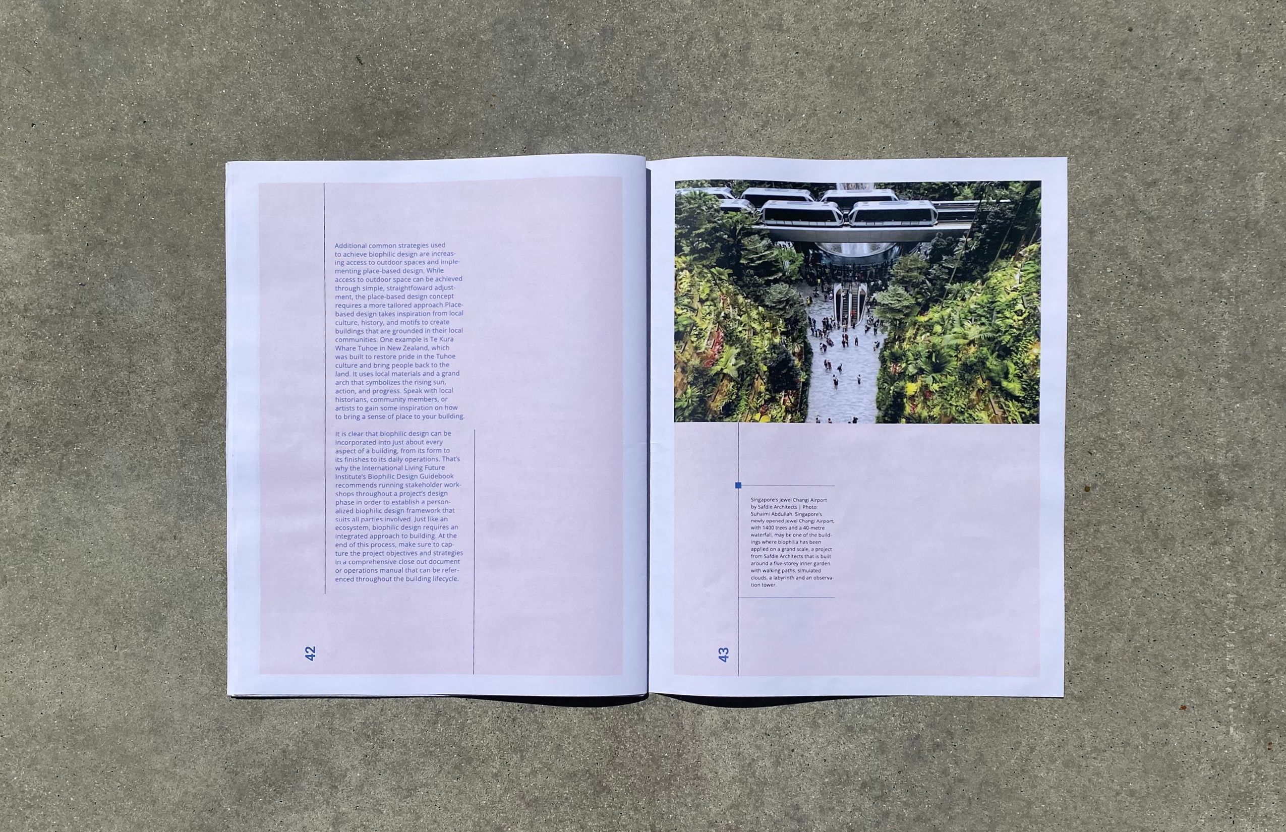 Promote International Living Future Institute, a nonprofit institute that builds an ecologically-minded, restorative world for all people. I tried to explore the beauty of biophilic architecture, and I designed the Zine, poster series, and promotional swag. The Zine magazine reflects architectural layouts and tells our social reasons for green building. The hypothetical International Living Future Institute Exhibition shows sustainable materials and provides a giveaway.